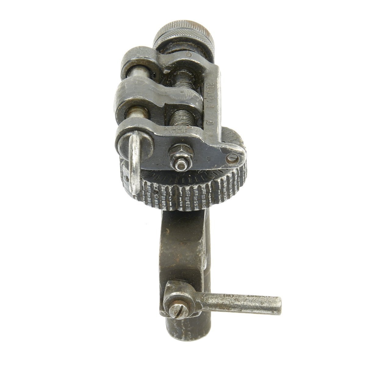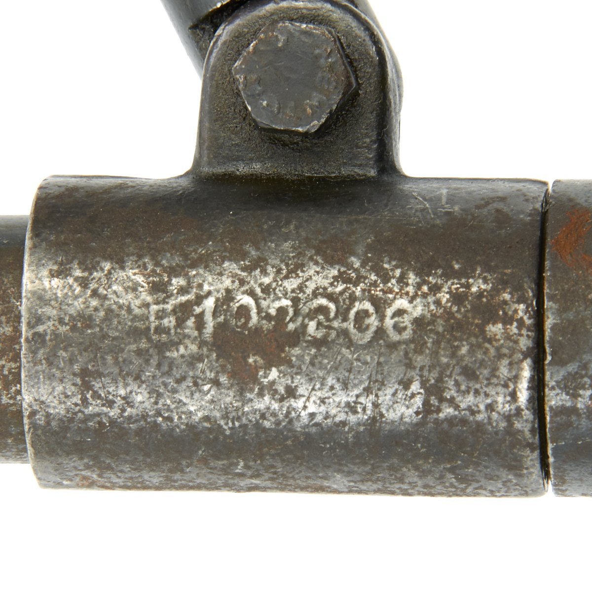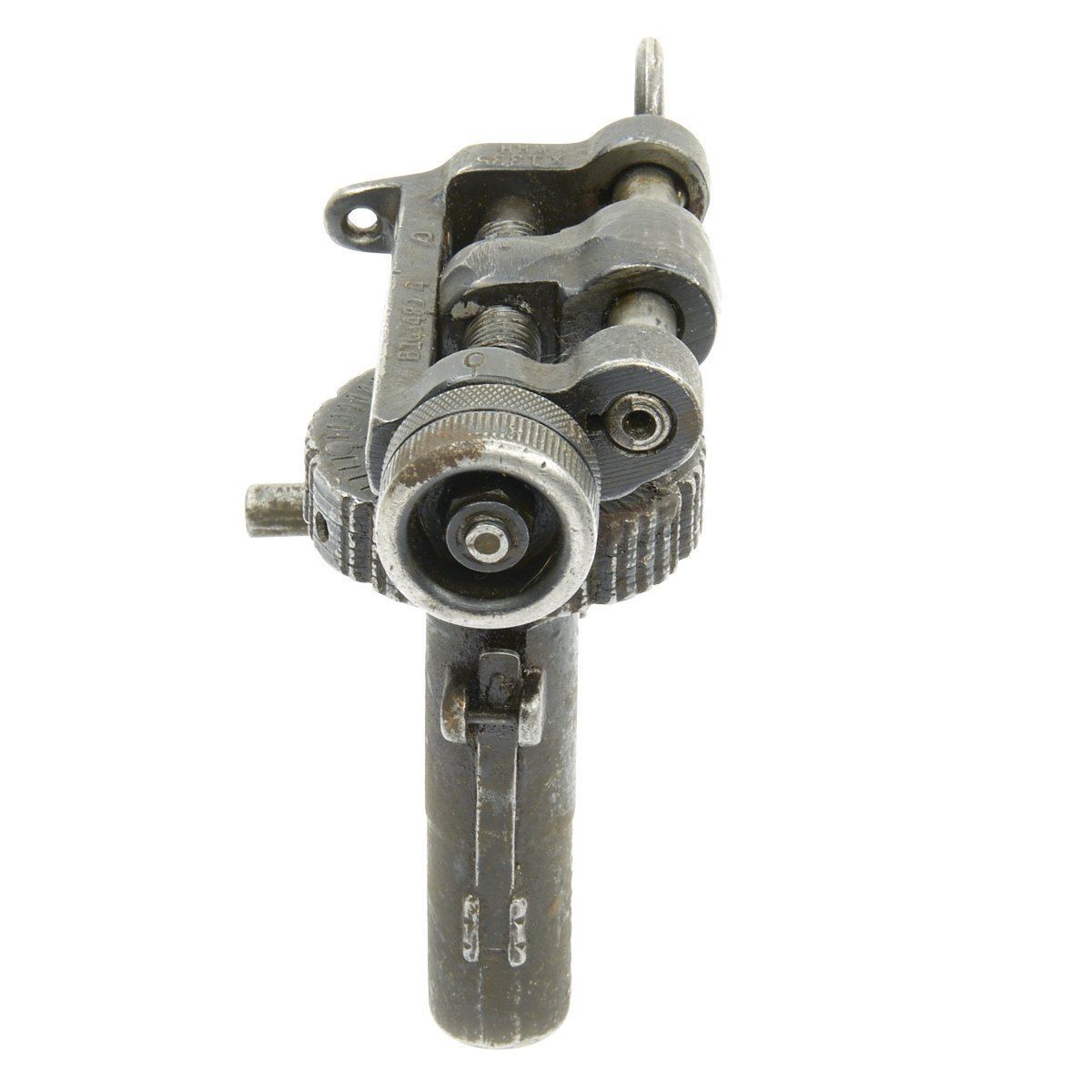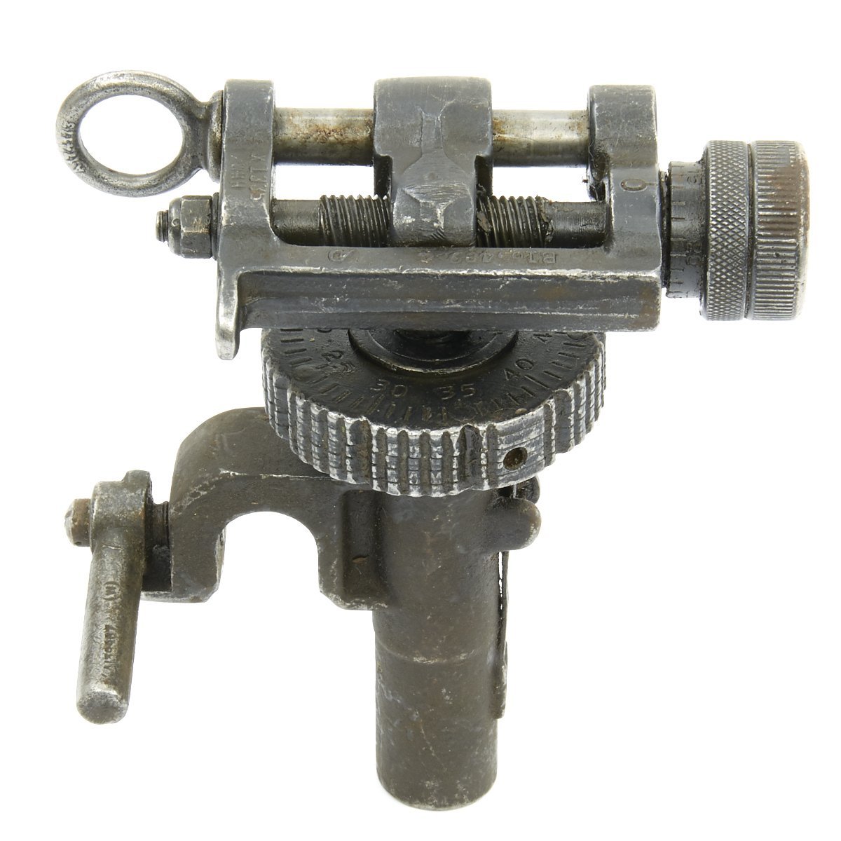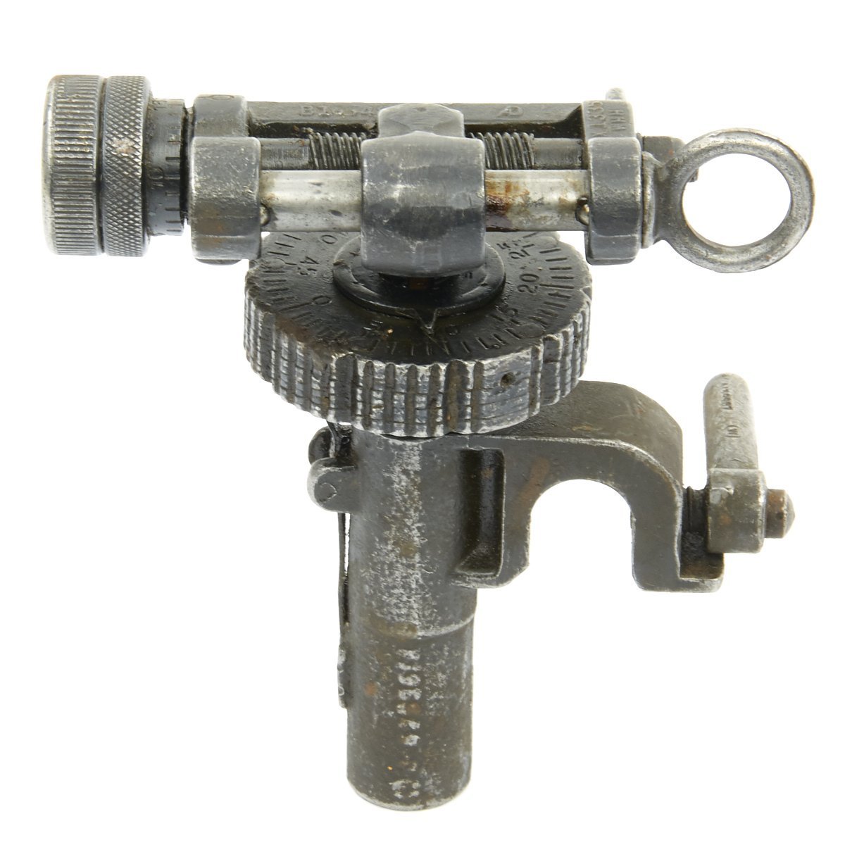 The T&E is functional and marked in numerous locations. It still retains its cross pin for securing to the rear trunion of the Browning MG.