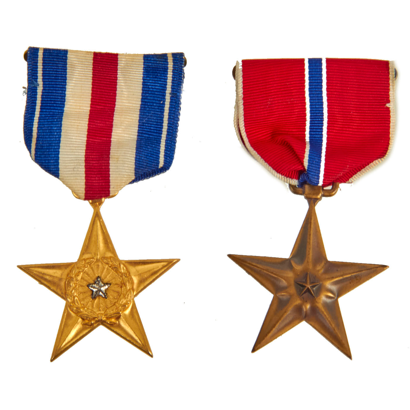 - Silver Star Medal: The medal is WWII production but is unnamed and unnumbered. There is minor age toning to the ribbon, but this is still a lovely example.
