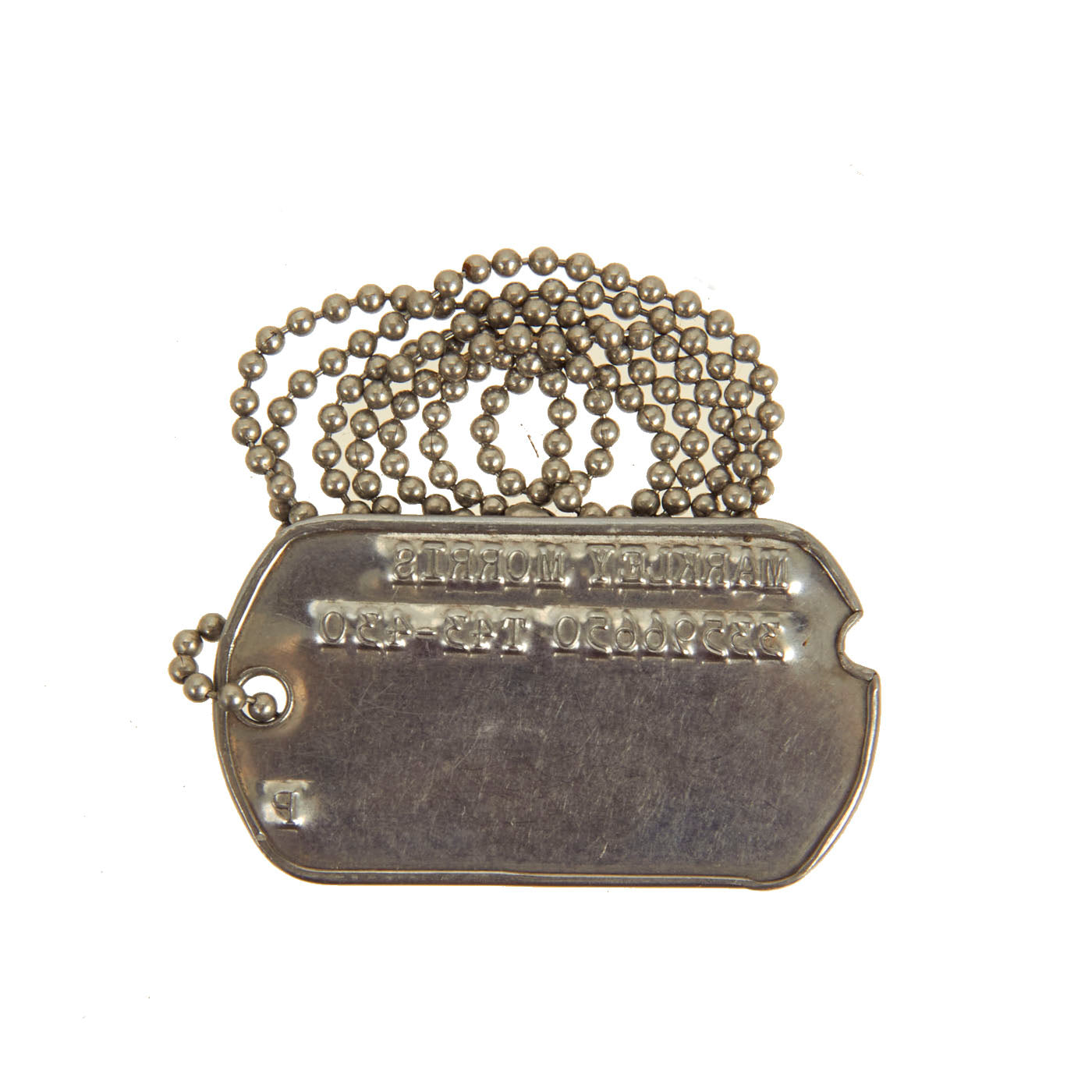 - Dog Tag: This is a single dog tag on a chain and has the following information; MARKLEY MORRIS / 33596650 T43-430 / P