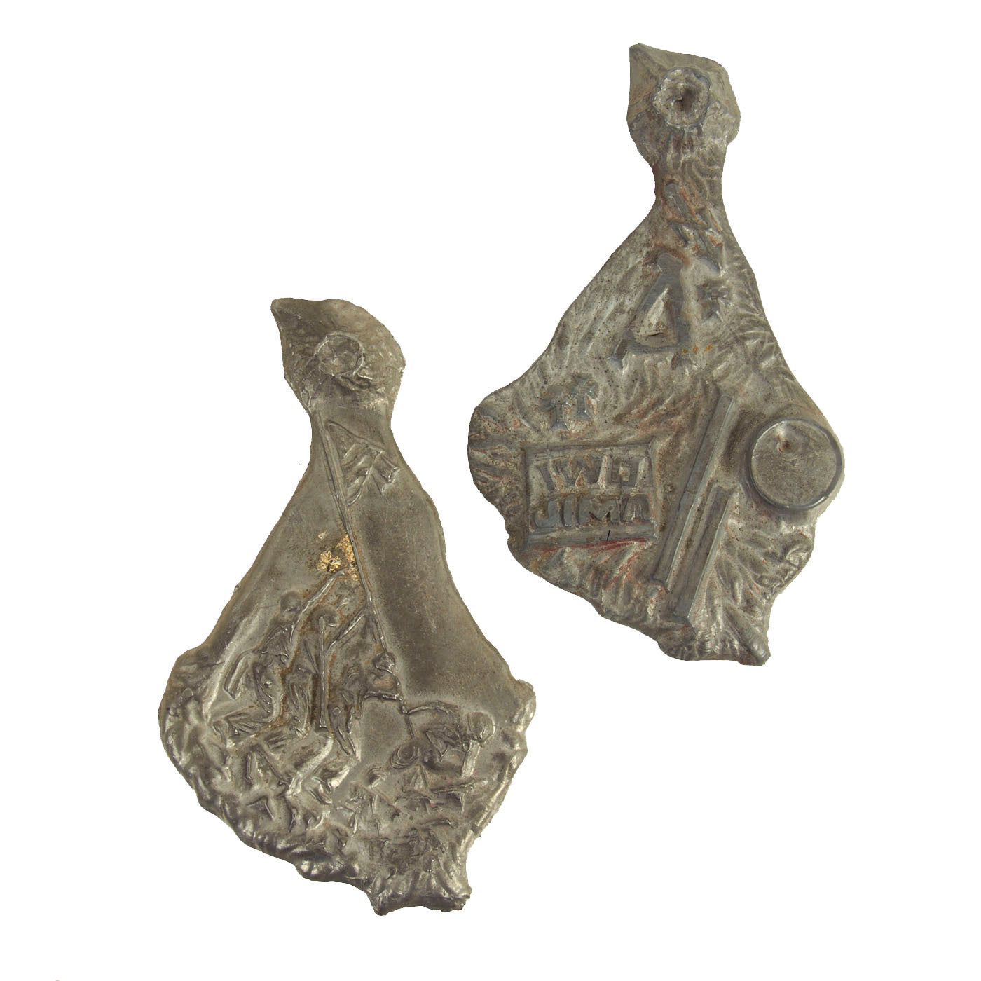- x2 Cast Pewter Iwo Jima Mementos: These are a pair of lovely Iwo Jima related tabletop display pieces. One features an image of what appears to be a map of the island while the other appears the same but shows the famous image of the Marine flag raising.