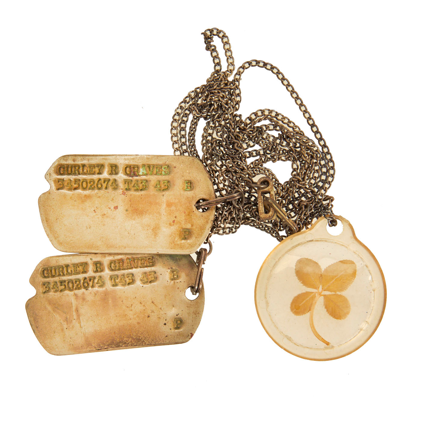 - Dog Tags With REAL 4-Leaf Clover: A lovely pair of tags belonging to Graves with a “goodluck charm” which is a small plastic disc containing a four leaf clover.