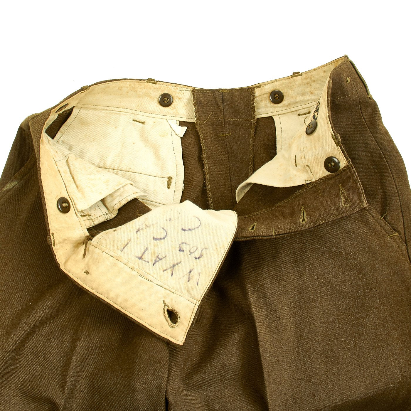 Note: The jacket was first owned by Lieutenant Gus Sanders, C Company, 505th Parachute Infantry Regiment, 82nd Airborne and the impression of his lieutenant rank bars can still be seen on the shoulder epaulets. Later it was owned by Wyatt of the 503rd Parachute Infantry Regiment. Both regiments served at Ft. Benning, Georgia.
