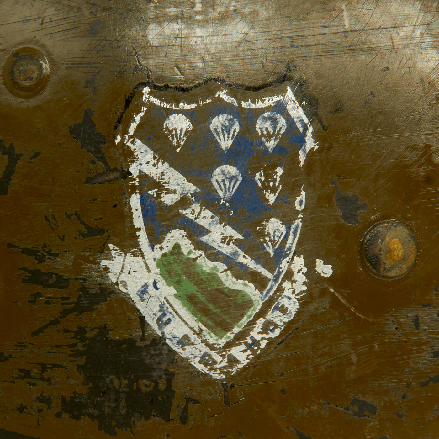 The left side features the ghosting of the famous Screaming “Old Abe” Eagle, the 101st Airborne insignia. There is very little color left to this decal but there are raised edges showing an outline of Old Abe. The decal could very well be painted over and we have not attempted to remove any paint to check. If you’re up to the task and believe there is a decal under the paint, be careful!