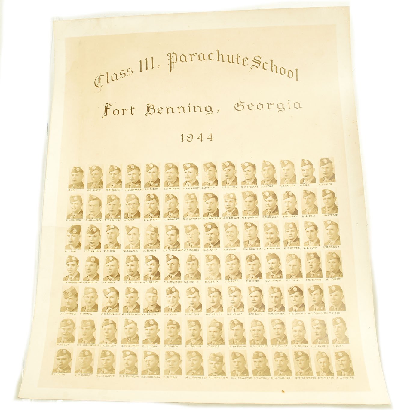 - Original Class II Parachute School class photo with an identified photo of Sgt. Gilbert.