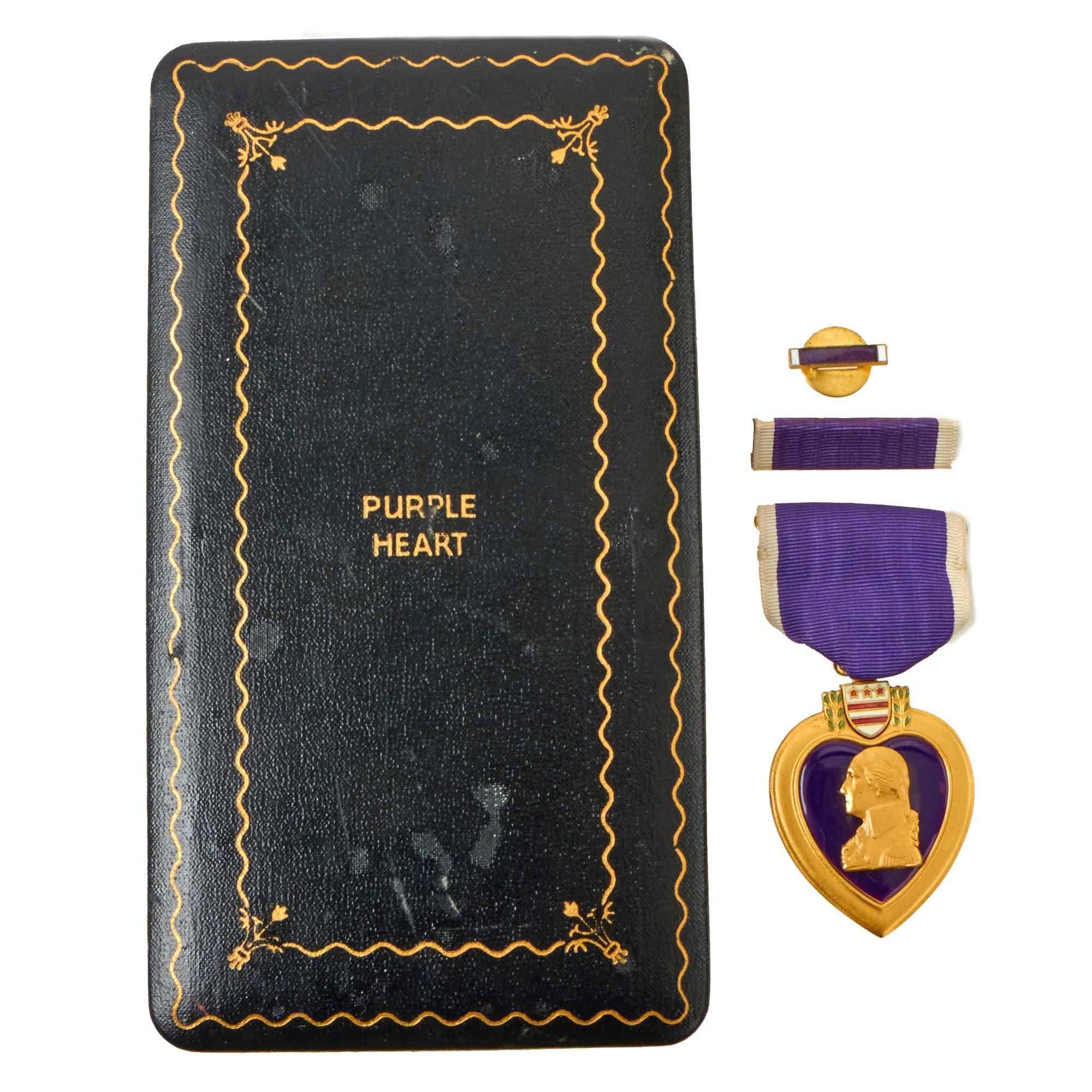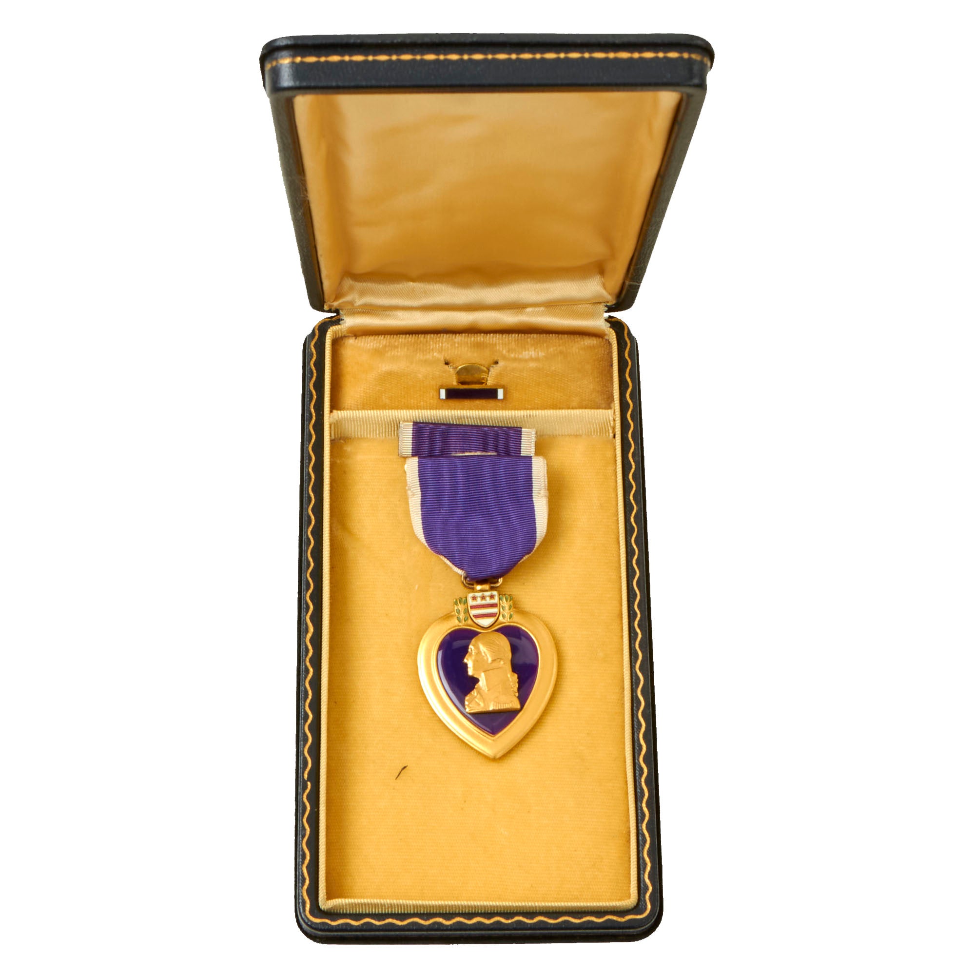 -Sutter’s Purple Heart Medal, in the original case, with ribbon and pin. Medal is not -engraved or numbered.