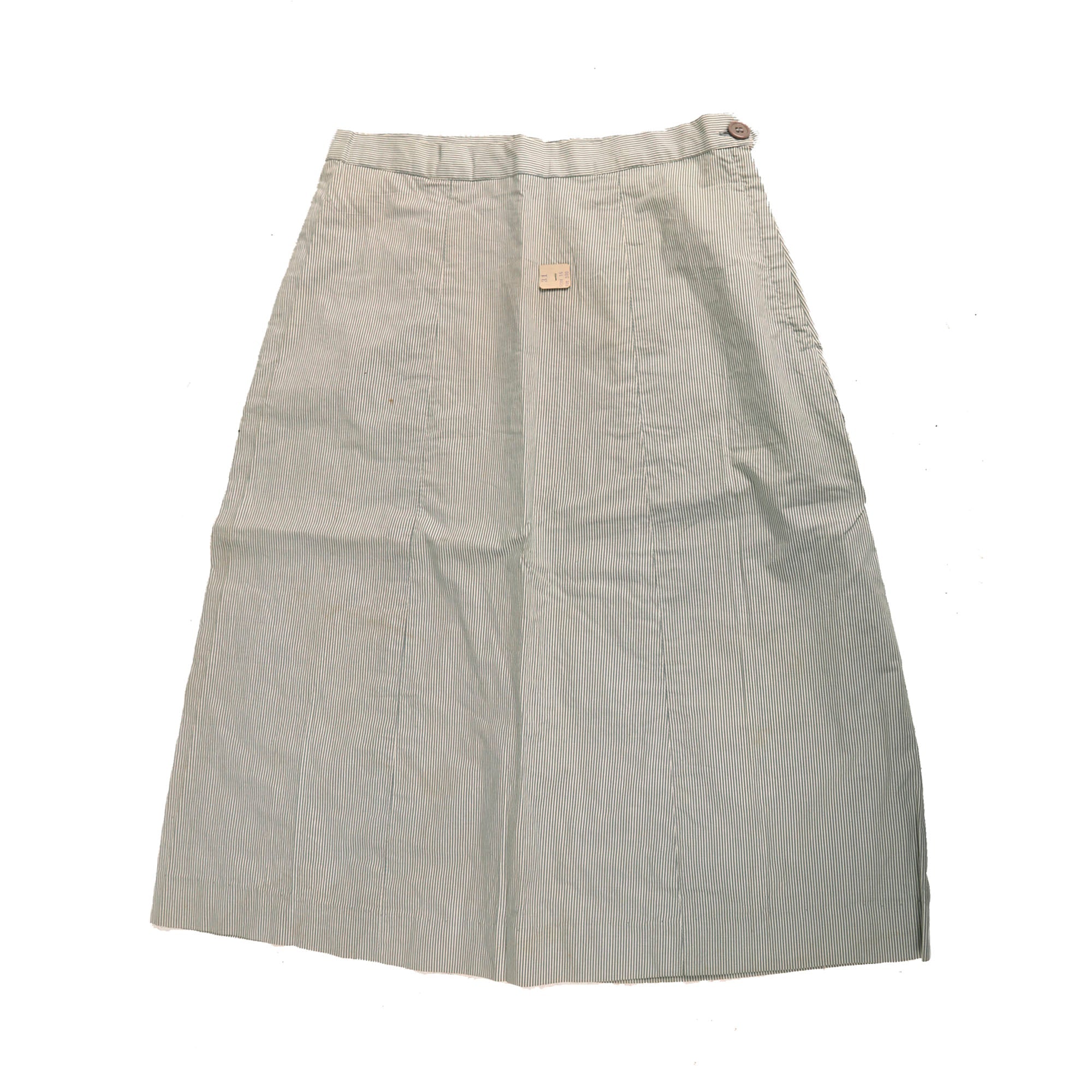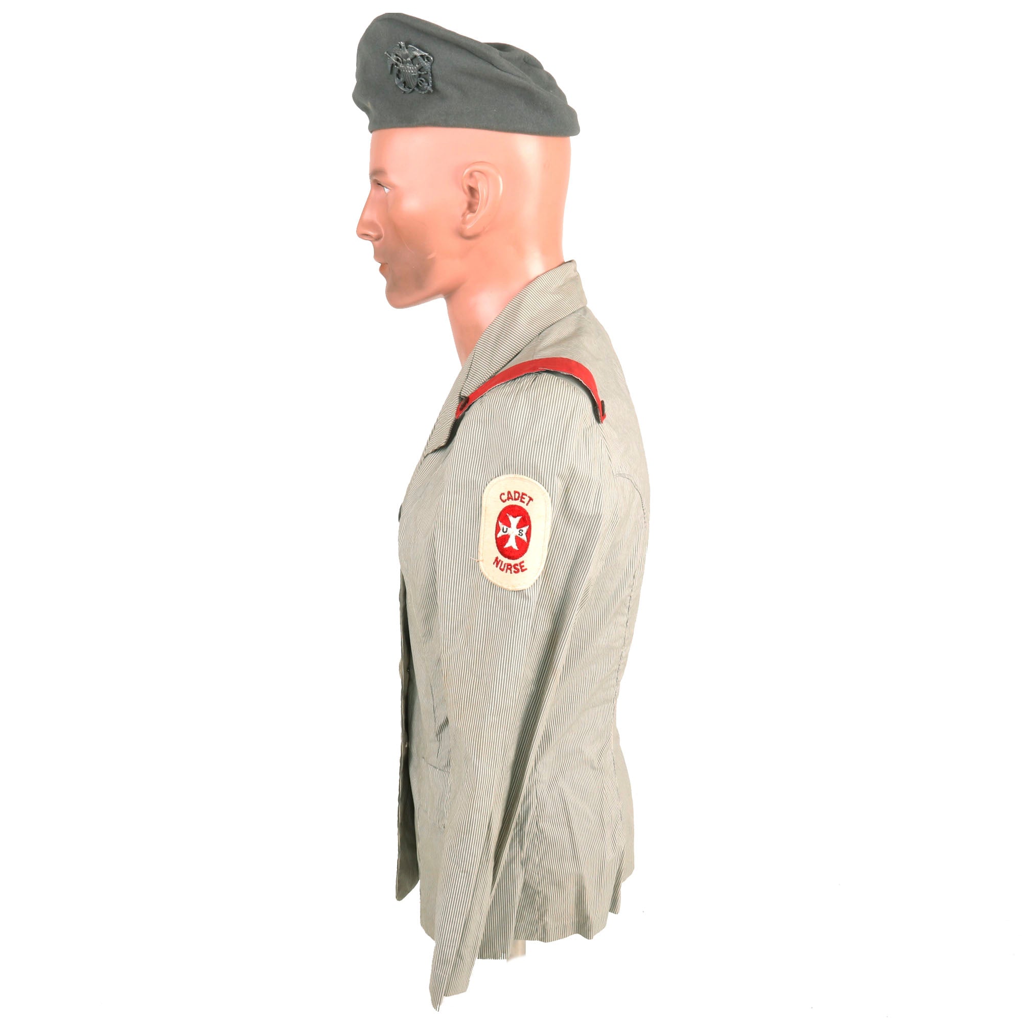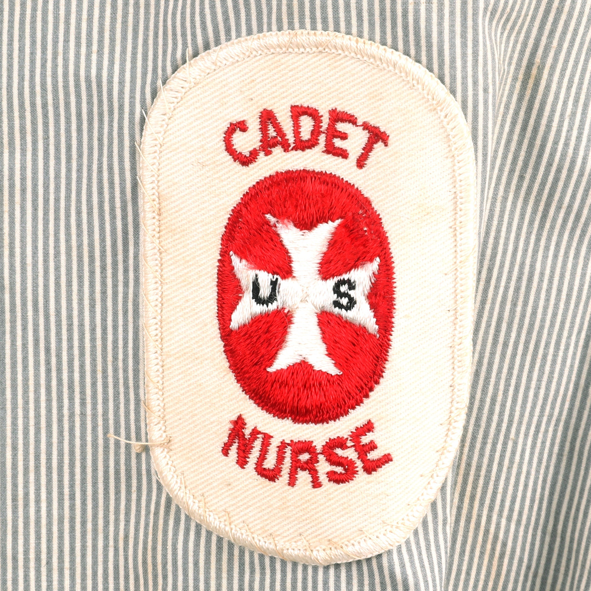 Original Item. One-of-a-Kind. We are delighted to offer the “Seersucker” Cadet Nurse Corps uniform of Dorothy Fry, Class of 1944. The severe wartime shortage of nurses resulted in a uniformed Cadet Nurse Corps as part of the Public Health Service under the Nurse Training Act of 1943. Participants received scholarships and monthly payments to attend nursing schools by agreeing to work in essential nurse positions after graduation for the duration of the war. The entire program graduated 124,000 nurses, of which over 3,000 were Black and other minorities who became valuable health professionals.