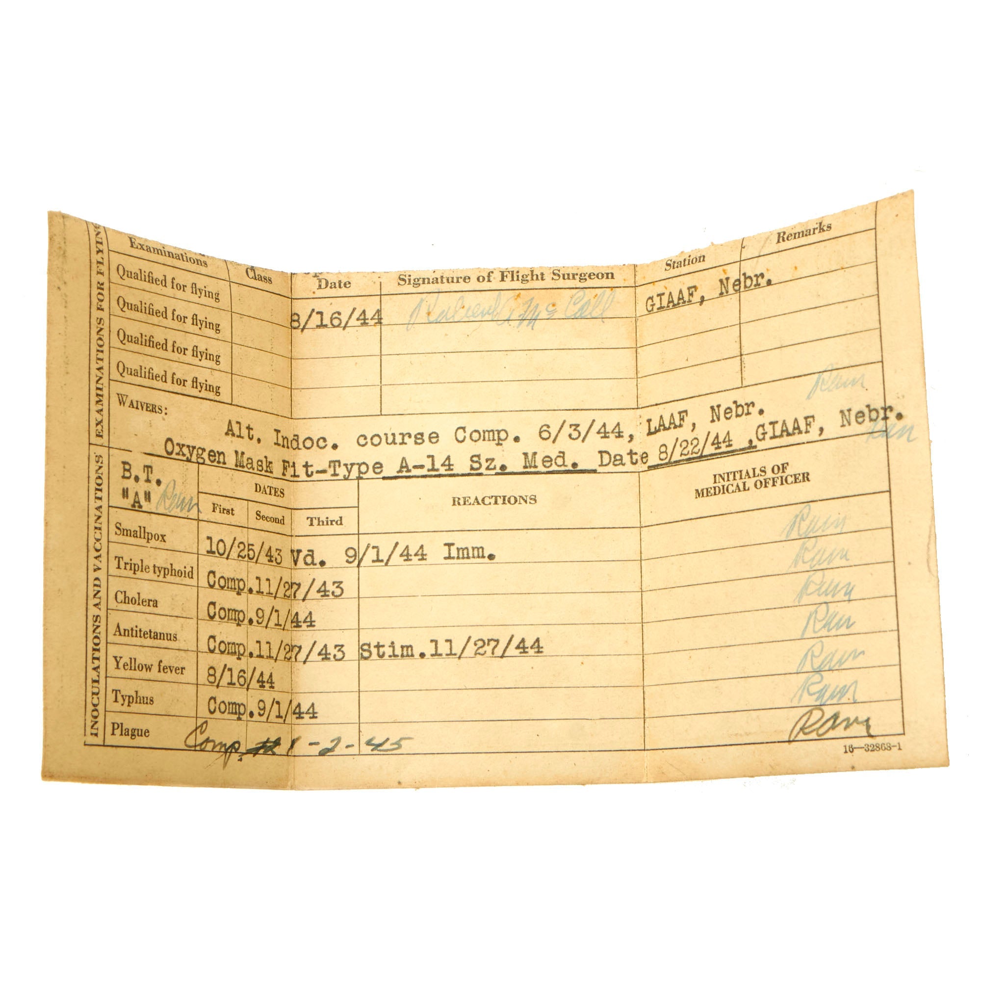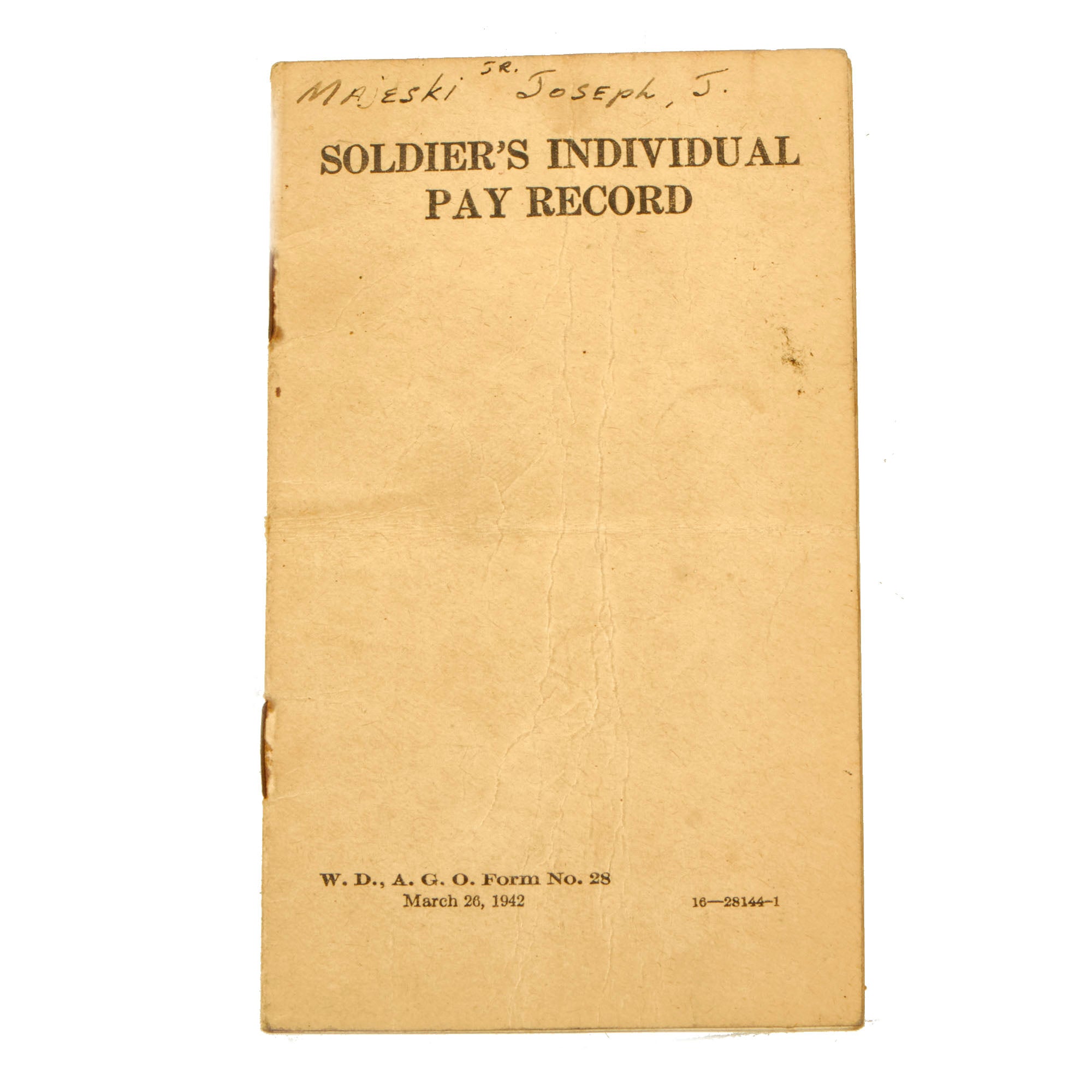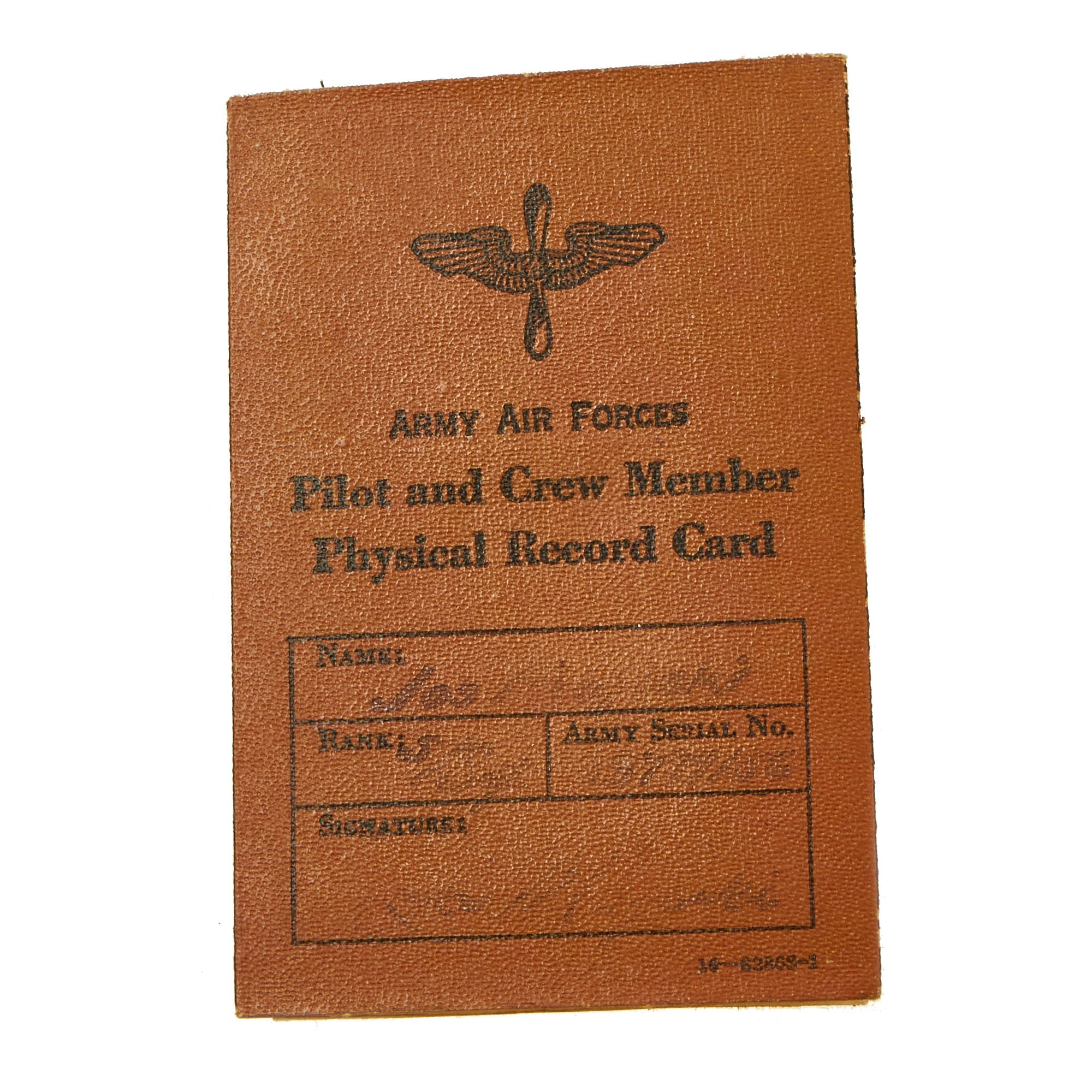 Other items include S/Sgt Majeski’s chevrons (2), Pilot and Crew Member Physical Record Card, Soldier’s Individual Pay Record and a U.S. Army Air Forces shoulder sleeve insignia. All items are in solid condition. We also found a period photo online of Majeski with members of the crew he was in beneath the front of a bomber (not included).