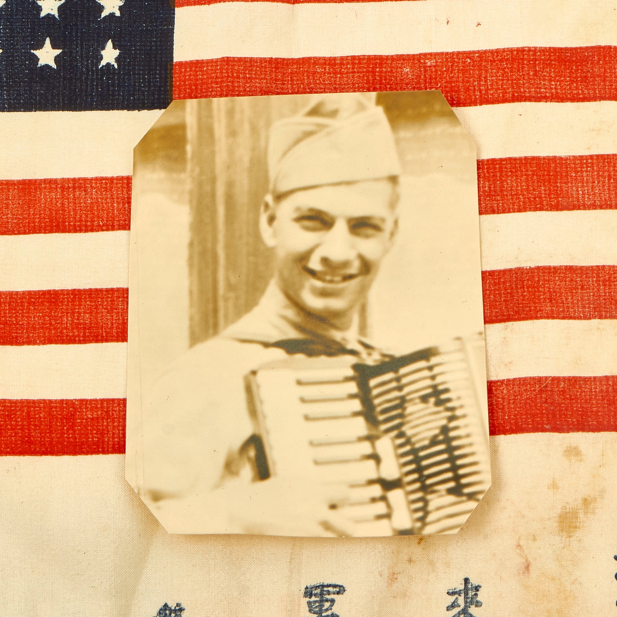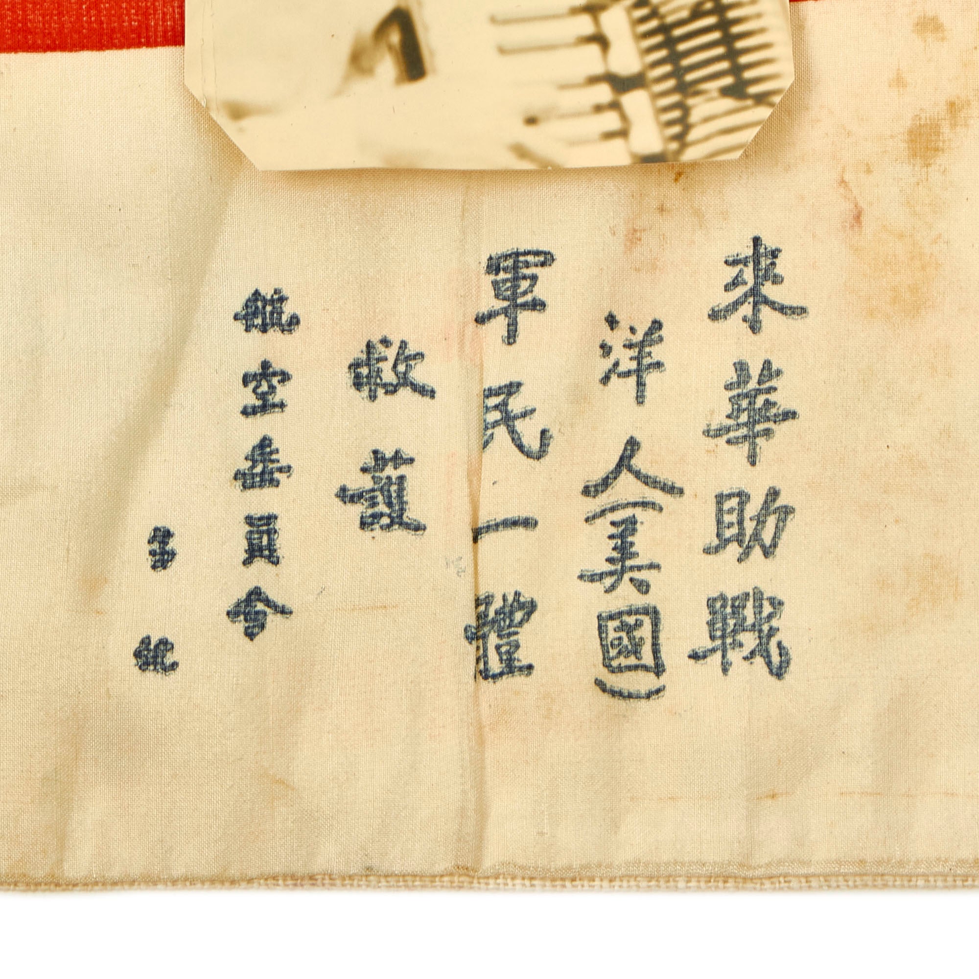 Original Items: Only One Grouping of 6 Available. This is an excellent condition silk blood chit from World War Two. It is a printed 48 Star American Flag and a message printed in 5 languages, which include BURMESE, CHINESE, KAREN, W.SHAN, and E.SHAN & N THAI. The last three are less well known languages, from smaller groups on the SouthEast Asian Peninsula, and are found in several different countries farther inland. In the center of the flag is a photo of S/Sgt Majeski, which was applied via double sided tape. If you would wish to remove the photo, it can be done so carefully by using a regular household hair dryer on low heat to help mitigate the risk of color loss or damage.