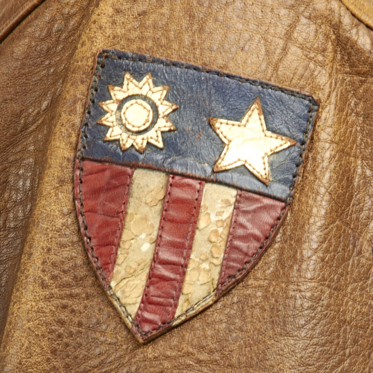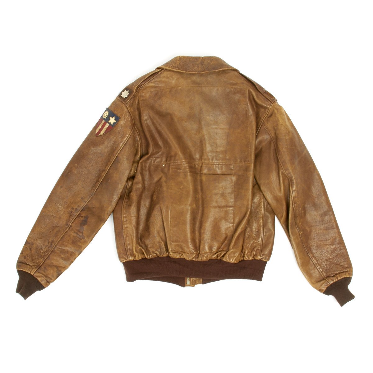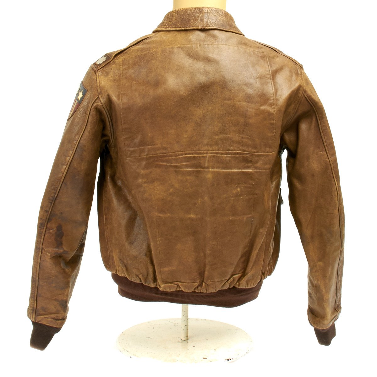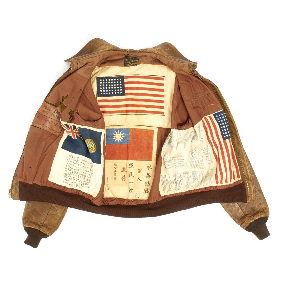 Original Item: One-of-a-kind. This is a jaw-dropping A2 leather flight jacket issued to a pilot who served in the Pacific Theatre during WW2. It is in wonderful condition in a large size. All aspects of this jacket are genuine WW2 (yes even the reddish hue waist and cuff bands) including some of the most detailed silk Blood Chits we have ever seen!