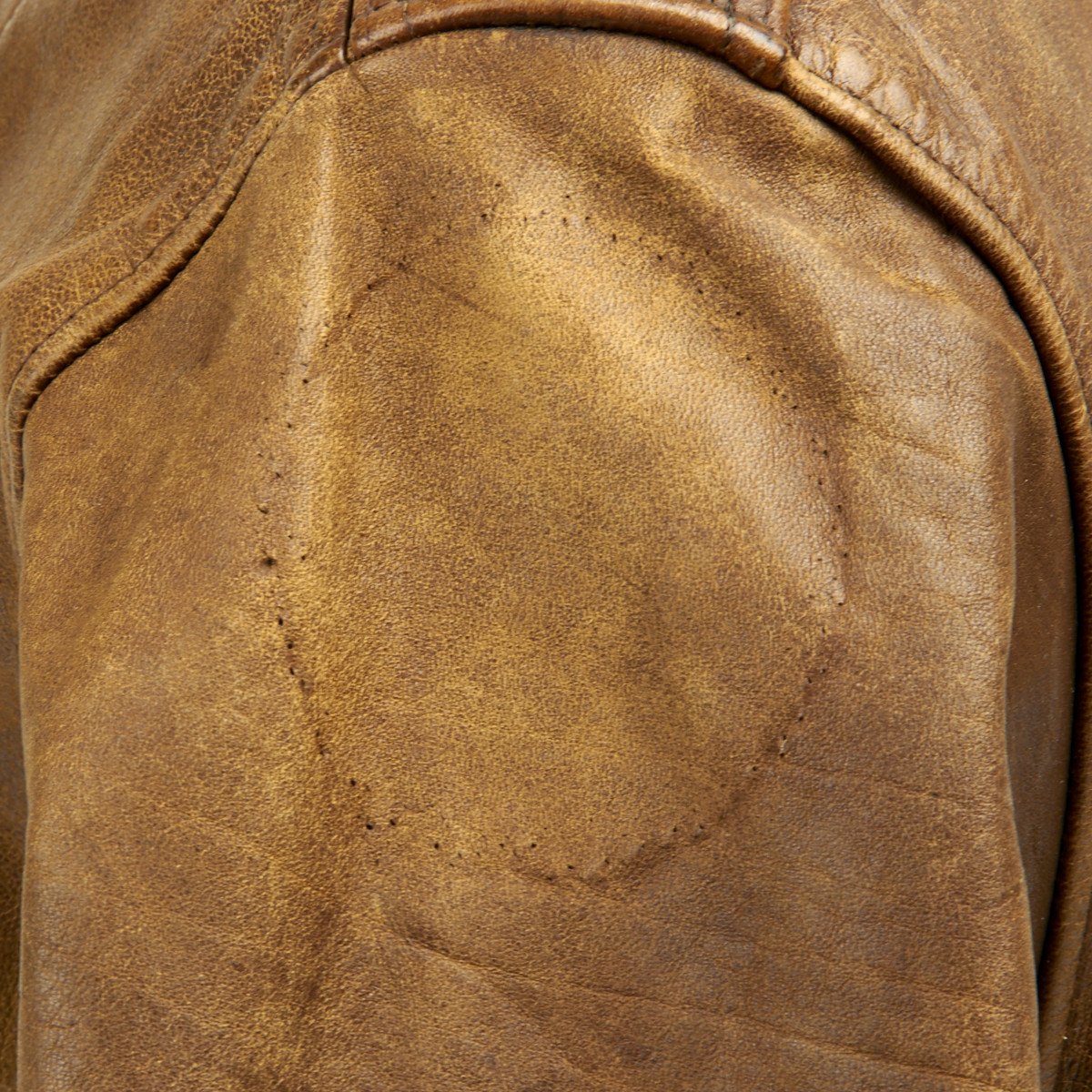 The Type A-2 leather flight jacket is a military flight jacket closely associated with World War II U.S. Army Air Forces pilots, navigators and bombardiers, who often decorated their jackets with squadron patches and elaborate artwork painted on the back. Sometimes casually referred to as a bomber jacket, its original designation was "Jacket, Pilot's (summer)", and its wartime usage was limited neither to pilots nor to bomber crews. The A-2 jacket was awarded to an Army Air Forces officer upon completion of basic flight training, and always before graduating to advanced training. No standard system of distribution was used, though generally airmen lined up in front of boxes containing jackets of various sizes and given the appropriate size jacket by the base quartermaster. A-2s were exclusive to commissioned officers until early in World War II, when also issued to enlisted aircrews. The A-2 was a treasured item to the airman and was worn with as much pride as his wings. As airmen progressed through various duty stations they often added and removed squadron patches, rank marks, and occasionally elaborate artwork depicting the type of aircraft they flew or a copy of the artwork painted on their airplane. Bomber crews often added small bombs to the right front of their jackets indicating the number of missions they had flown. As a result, many jackets ended up with numerous stitch marks as patches of various sizes were removed and replaced when the owner changed units. Unlike Navy aviators, who often wore the patches of every squadron they had ever flown with, AAF personnel could only display the patch of their current assignment. The emblem of the Army Air Forces was often sewn, painted, or applied by decal on the left shoulder, while the shield of the specific Air Force (5th, 8th, etc.) was often displayed on the right. Despite the A-2's becoming a symbol of the American pilot, in 1943 General H. H. "Hap" Arnold canceled any further leather jacket contracts in favor of newer cloth-shell jackets like the B-10 and B-15. Needless to say, Arnold's popularity with his airmen was not improved by his decision. Even after the transition to cloth, existing units could still order replacement A-2s, keeping production going well into 1944. And it was impossible to prevent airmen from continuing to obtain and wear the style as demonstrated by the large number of photos clearly showing Korean War pilots of F-82's and F-86's still wearing the original A-2 issued to them a decade earlier, or newer jackets made to fit their current sizes. Fighter pilots, who often had heated cockpits, could wear the A-2 into combat more easily. Some jackets had a map of the mission area sewn into the lining, which could be used (in theory) for navigation if shot down. Some jackets (famously, those from the China Burma India Theater, and of the Flying Tigers) had a "Blood chit" sewn on the lining or outer back, printed on cloth, which promised certain rewards to civilians who aided a downed airman. In certain ETO units and possibly elsewhere a prerogative of the fighter ace was a red satin lining which was added on confirmation of his fifth aerial kill. Early wartime pictures show entire bomber crews outfitted with A-2s, although at altitude in a bomber they probably weren't too useful. The pilot and copilot had primitive cabin heat on some aircraft and would wear the A-2, while the rest of the bomber crew usually wore heavier fleece-lined Type B-3 or ANJ-4 (and later B-9 and B-11 parkas) which were warmer and better suited to long hours in the severe cold. However, period photos do show A-2s worn by crew underneath heavy outer garments, and candid on-base photos often show crewmen of all ranks in A-2s. A warm and comfortable mouton collar was an addition authorized in mountainous C-B-I commands.