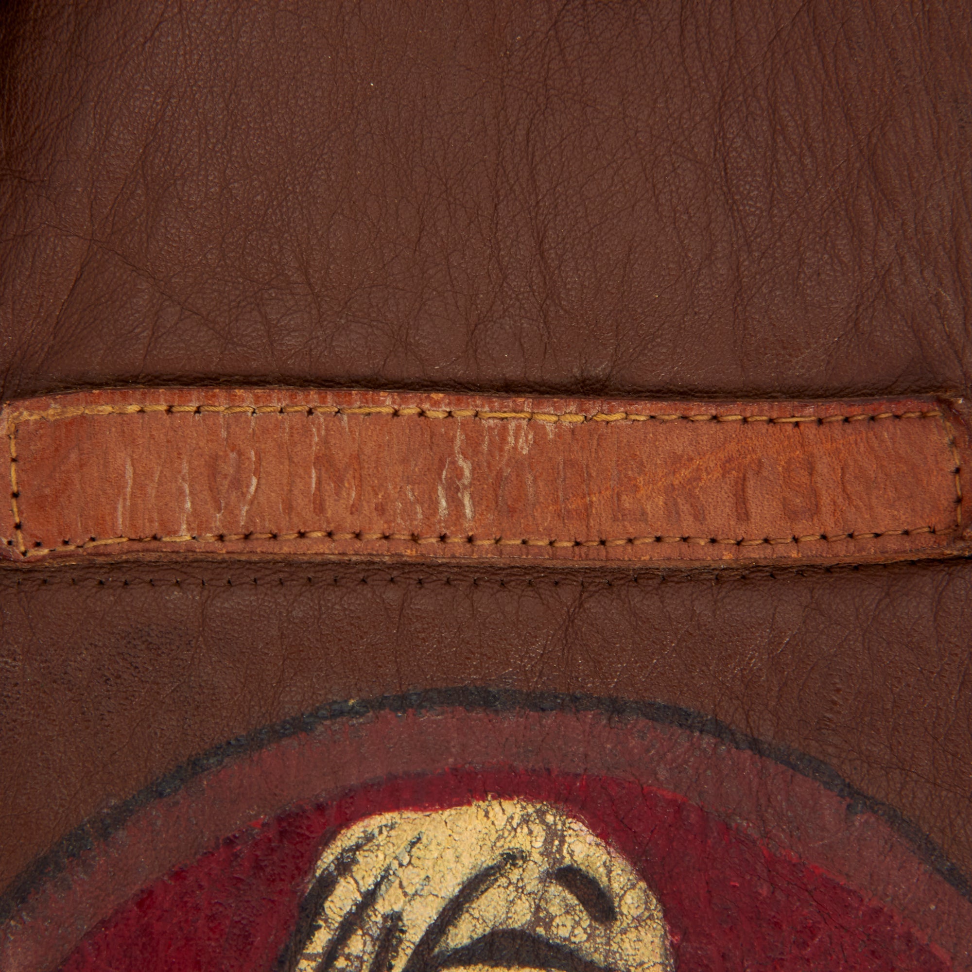 The interior lining does have tearing and stitching loss present, so do handle it with care. The top rear back portion of the liner still retains the original tag which reads as: