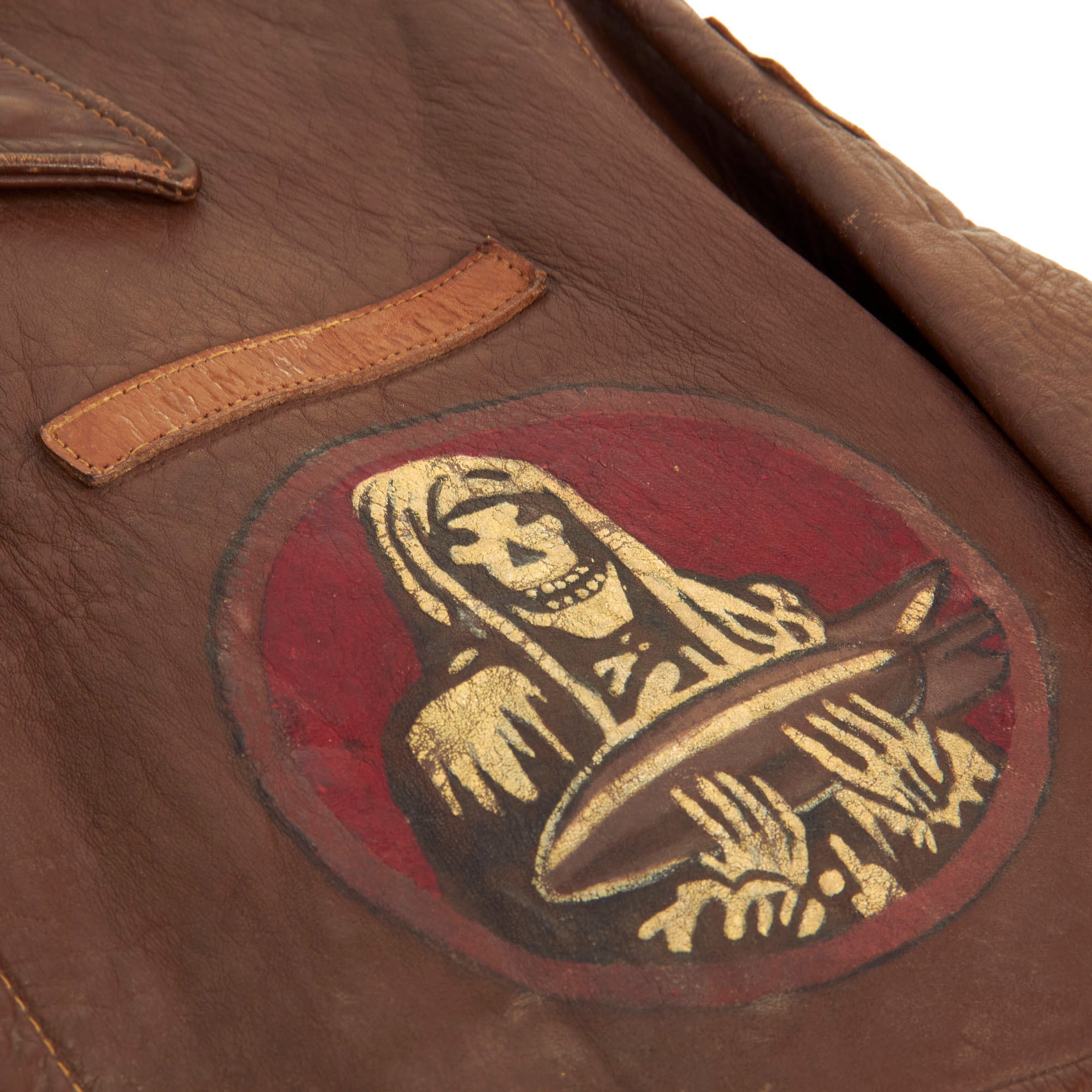 Painted WWII American A-2 Flight Jackets have realized unprecedented prices in the past year. For example jackets at Rock Island Auctions sold in 2022 for $32,000+ and $23,000+ respectively they can be found at this link and this link. When comparing the Rock Island Auction jackets with the one offered here, one can easily see that our offering is an exceptional value!