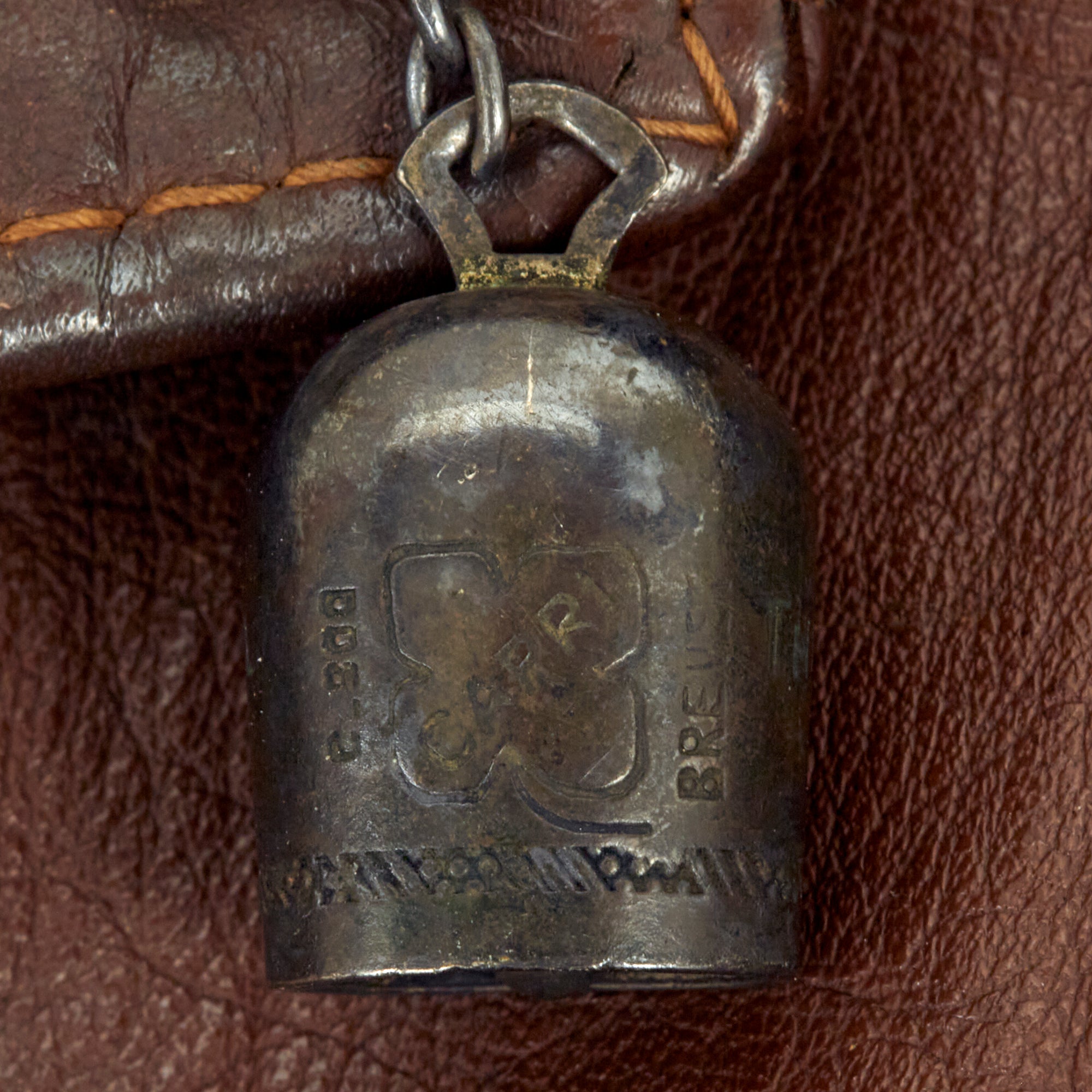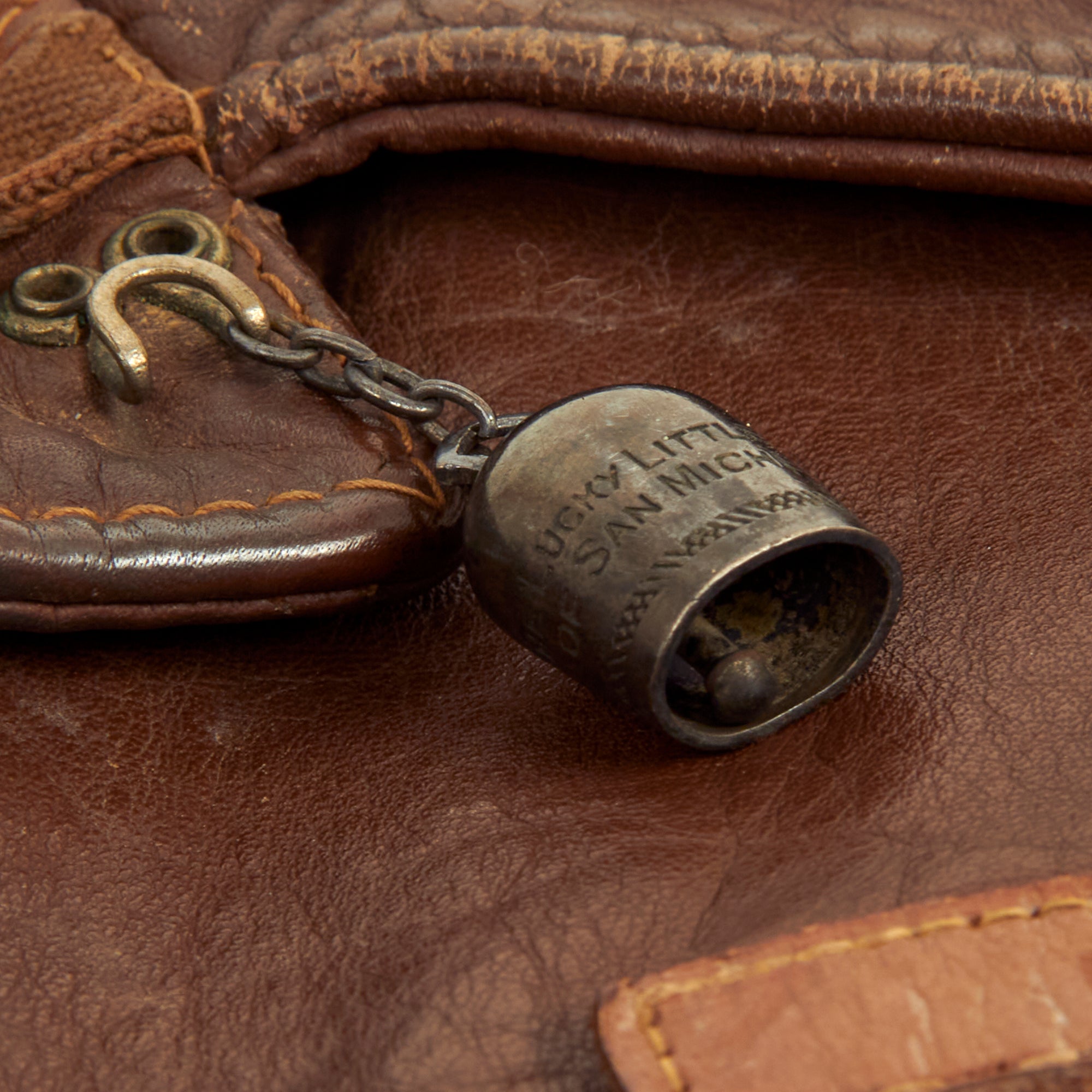 The collar clasp has a small engraved “Lucky Little Bell of San Michele” bell attached to it, which is still functional. The Lucky Little Bells of San Michele good luck charms were purchased by Army Air Force pilots and crewman on the Island of Capri during WWII and were worn on their flight jacket lapels or zipper pulls for good luck.