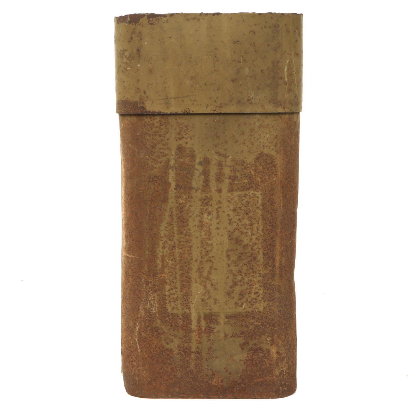 - A Fantastic German WWII steel ammunition can, painted a lovely ordnance green, measuring 10"W x 6 1/8"D x 12 1/2"H. There are remains of a paper label on the top, which looks to have a 43 date, and also is marked clearly Fertigungszeichen e e m, which translates to "Manufacturing mark eem". "eem" is the German WWII three letter code for Selve-Kronbiegel Dornheim AG, Munitionsfabrik in Soemmerda, Saxony. This was one of Germany's leading makers of primers, fuzes, and caps. Their maker marks were found on 20mm oerlikon primers, and many types of small arms ammunition.