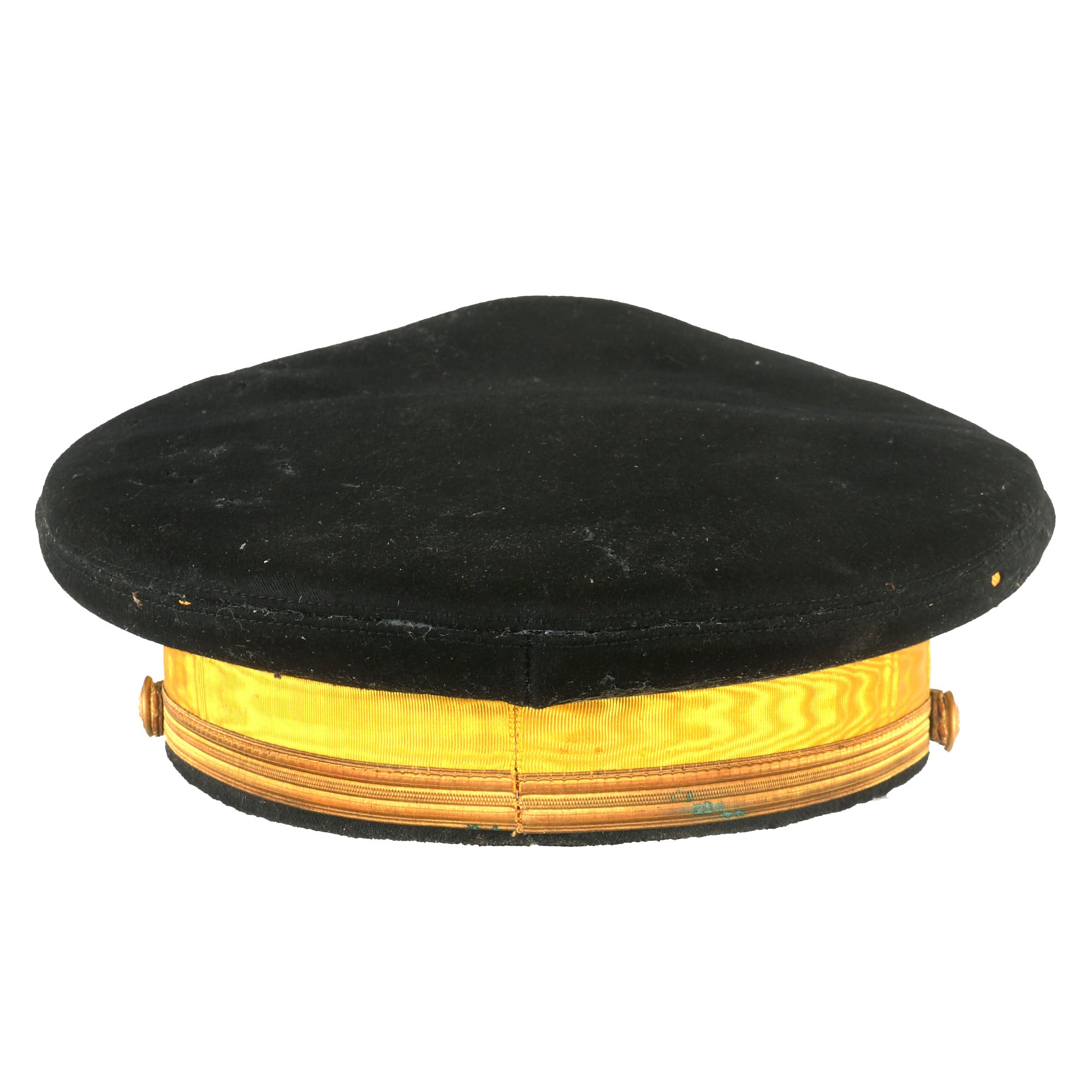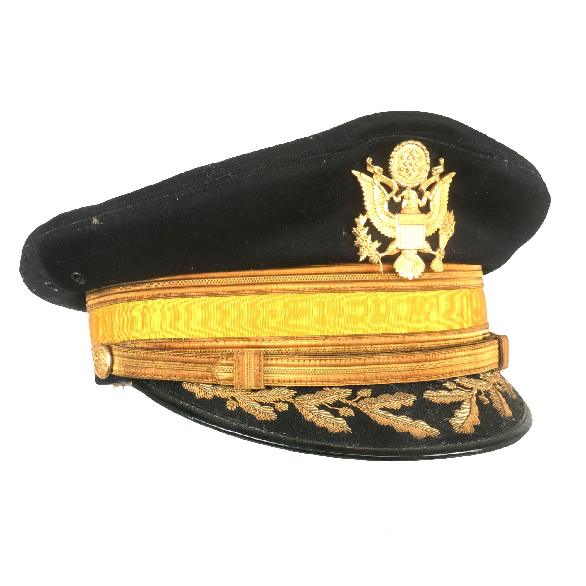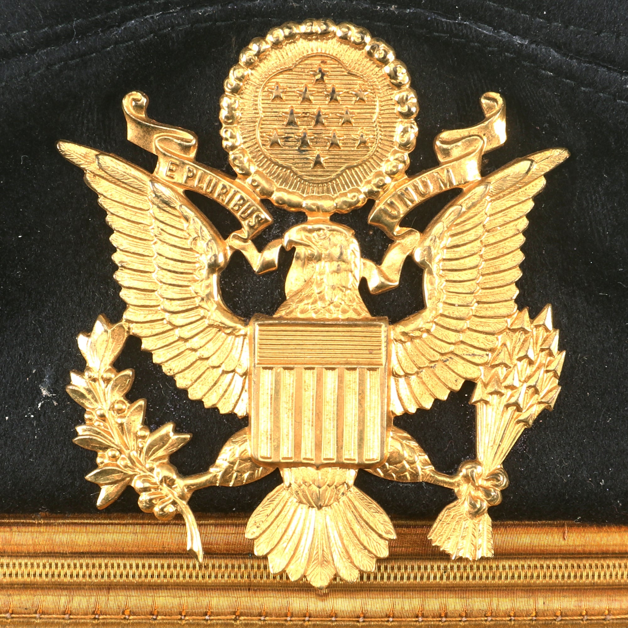 No major moth issues to report, the hat is sound, not crushed or broken. The front of the cap bears the correct gold U.S. Army Insignia, with a gold bullion adjustable chinstrap with two U.S. Army side buttons. The cap has the correct gold bands around the body for an officer, with a “Cavalry Yellow" central band, the "Branch of Service" color for cavalry.