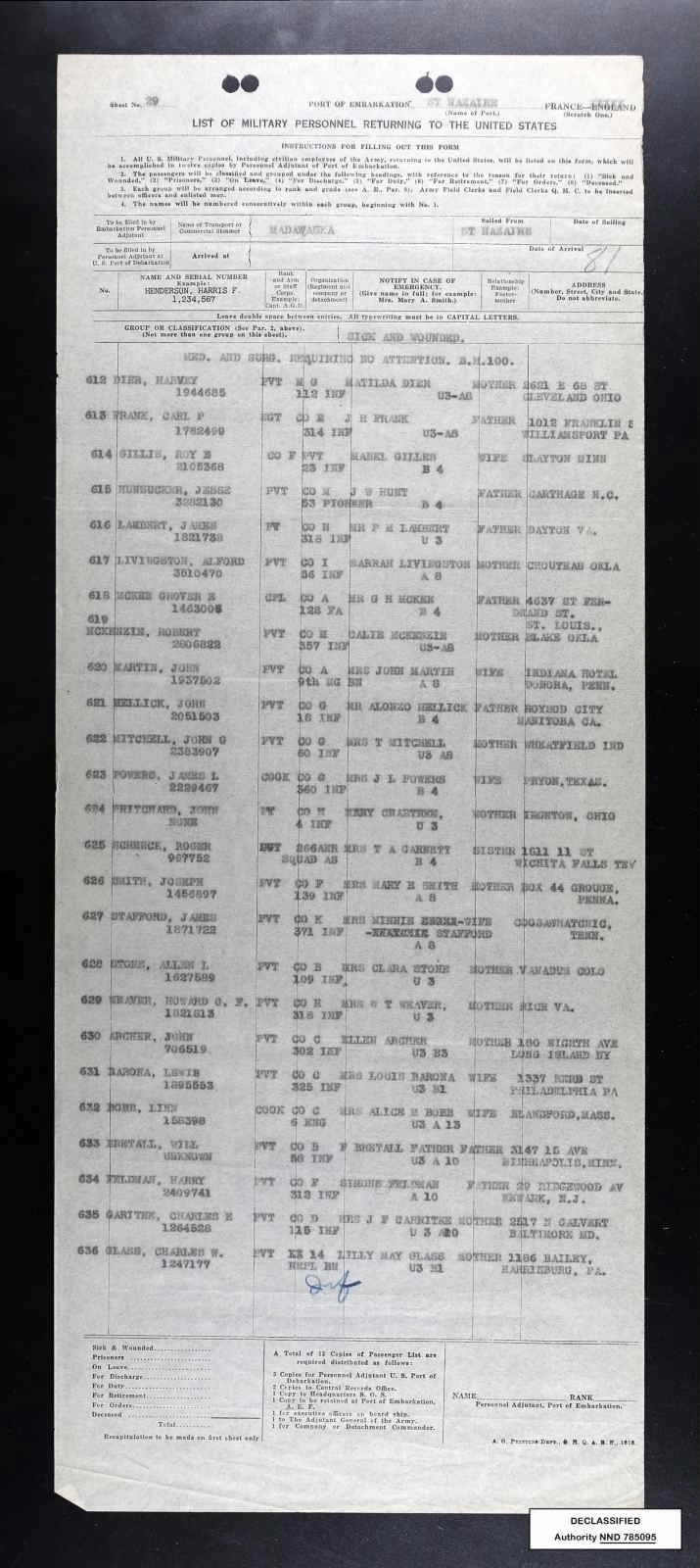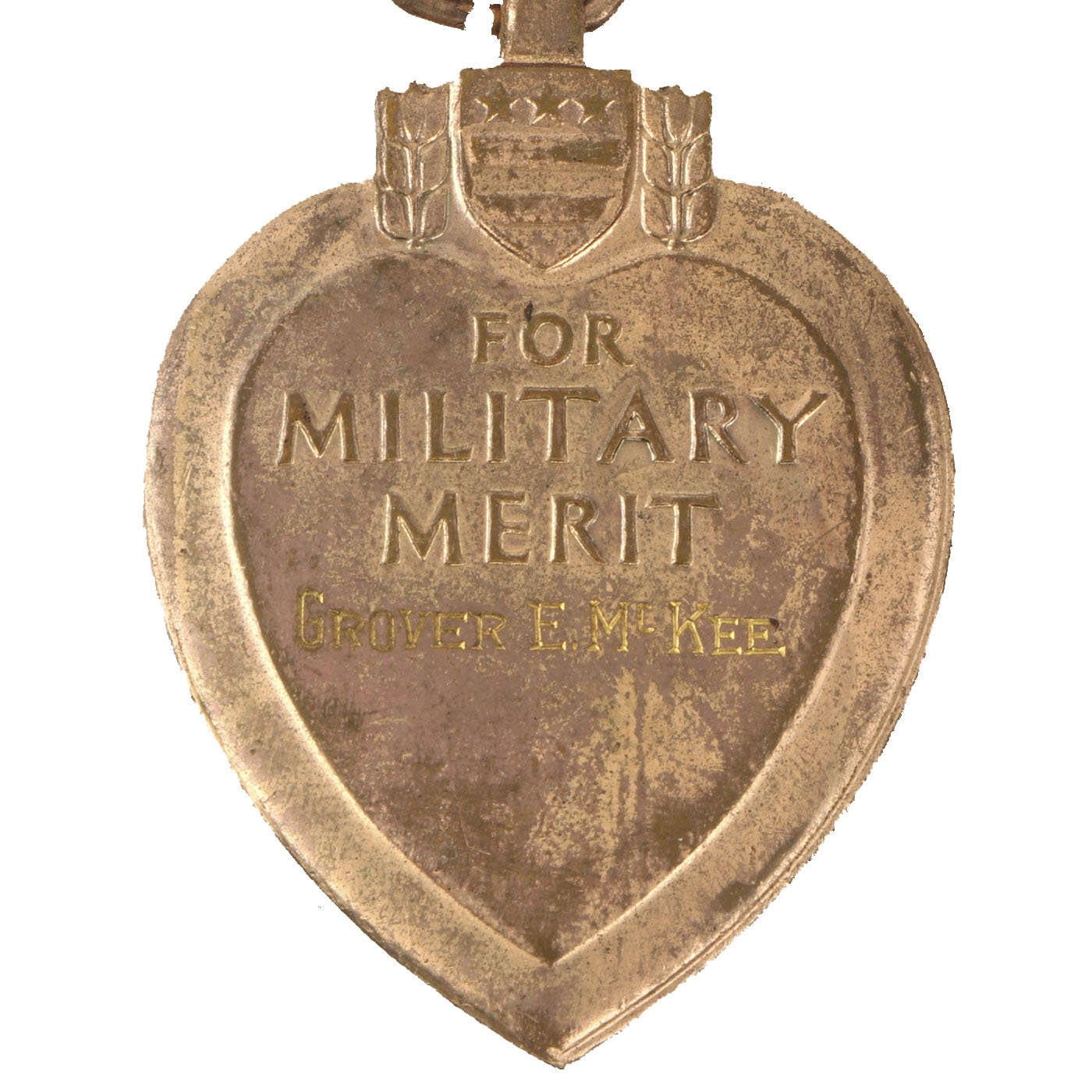 - Original Item: This engraved WWII Purple Heart Medal is engraved on the reverse to GROVER E. McKEE. Included with the medal from the collection we purchased is a WWI Victory medal with three campaign bars: St. NMihel, Meuse-Argonne, Defense Sector. Research revealed that Grover E. McKee (ASN 1463005) was assigned to Company A, 125th Field Artillery Regiment during World War One and later fought in WWII. However, this even though we found this research we cannot fully verify that this is the same McKee to which this medal is named. Included with the medals is a passenger list from the USS Madawaska, from the 18th of December 1918 which names Corporal Grover E. McKee as a passenger on his way home from France.