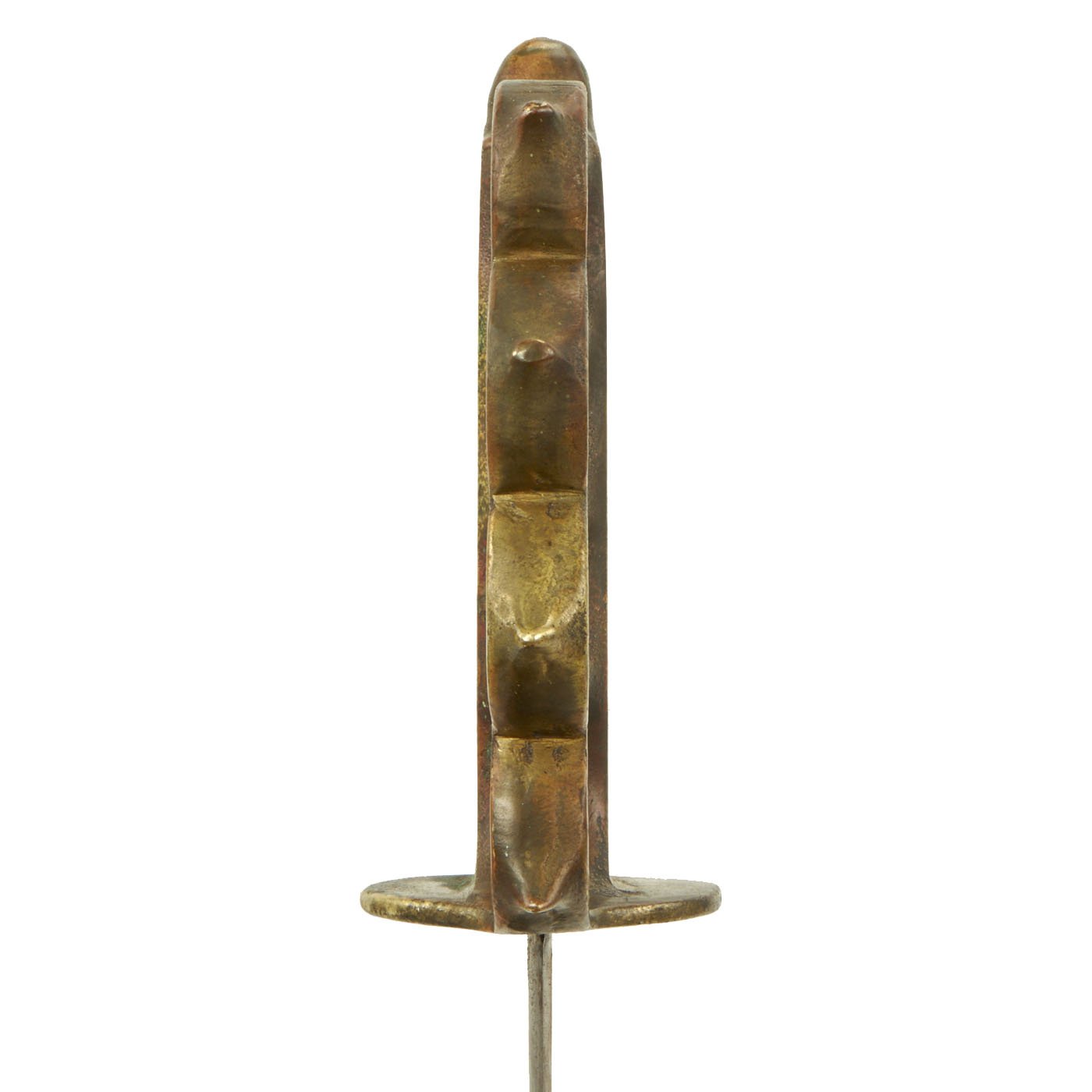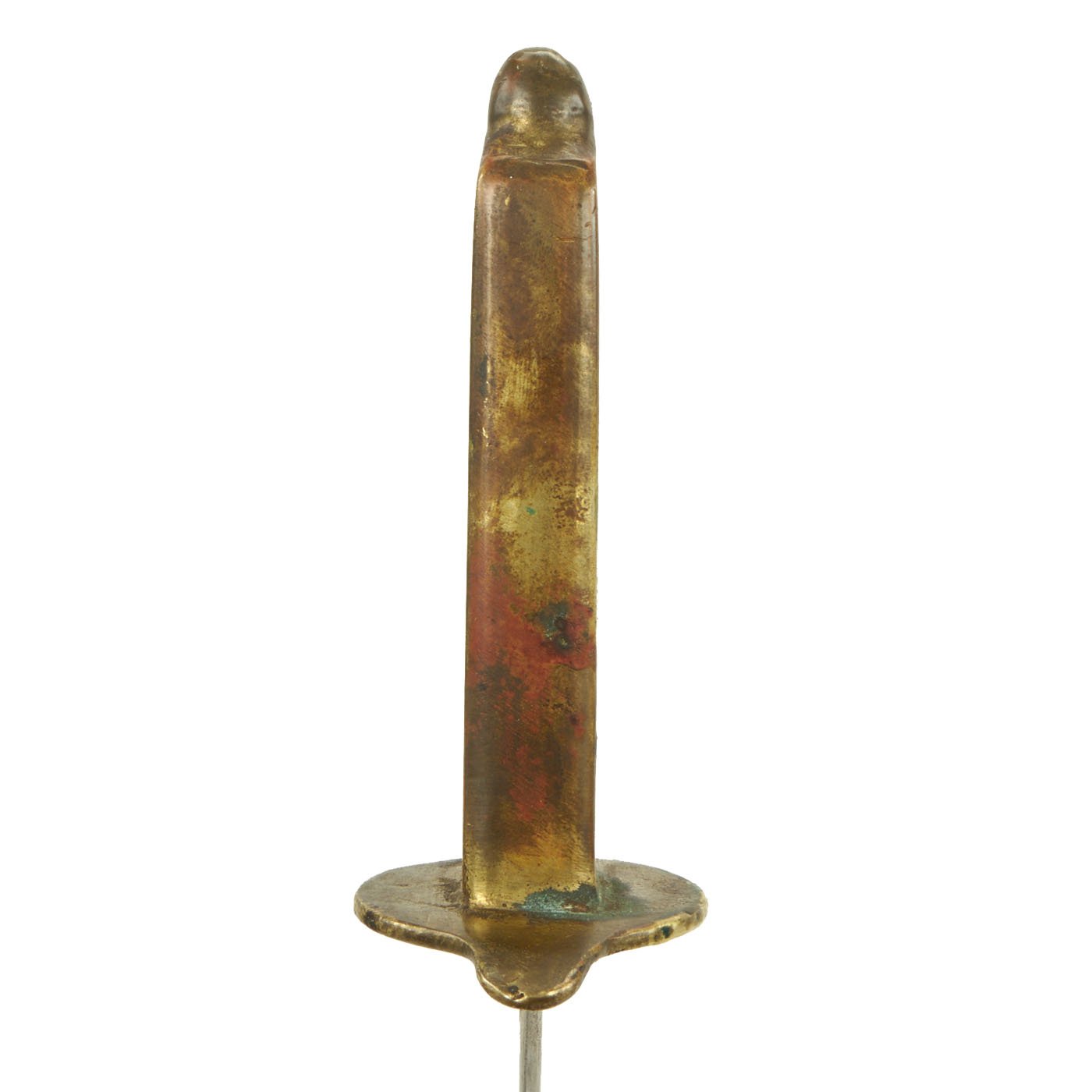The pommel portion of the knife looks to have been brazed directly in, after which a new brass "skull crusher" was made. There are even some signs of brazing around the crossguard, definitely a secure fit! The blade shows signs of expected tarnishing and light corrosion, as expected, while the L.F.&C. Knuckle Duster grip exhibits a beautiful rich mellow patina. The blade and grip do not wobble, and are very tight.