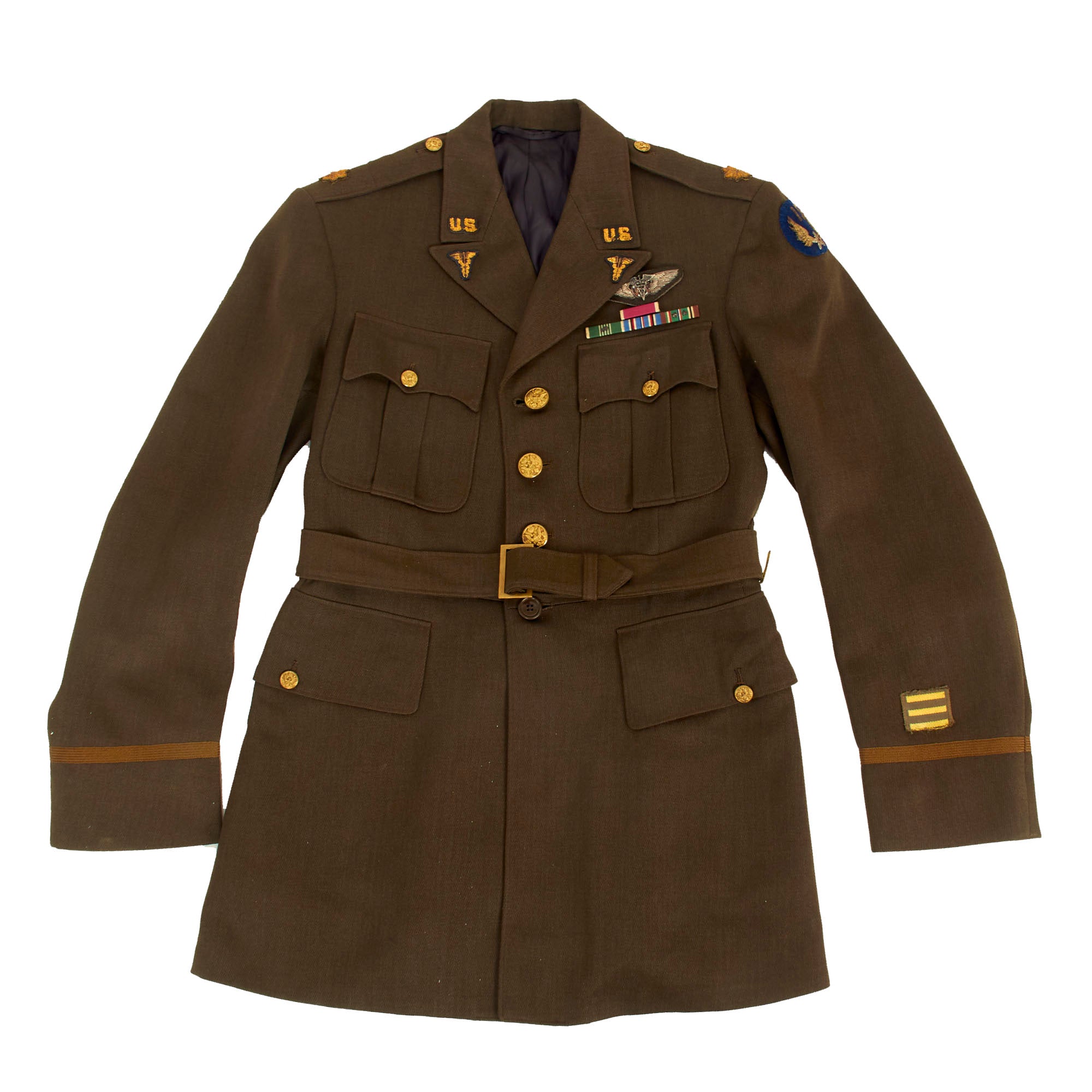 Original Items: Only One Set Available. This is a fantastic uniform set attributed to Major G.W. Hubert, a flight surgeon with the 15th Air Force. The best part of this uniform set is that all insignia present is all bullion wire embroidery! This is one of the most attractive office uniforms we have seen from the U.S. side of the war. You most definitely do not want to miss out on this one.