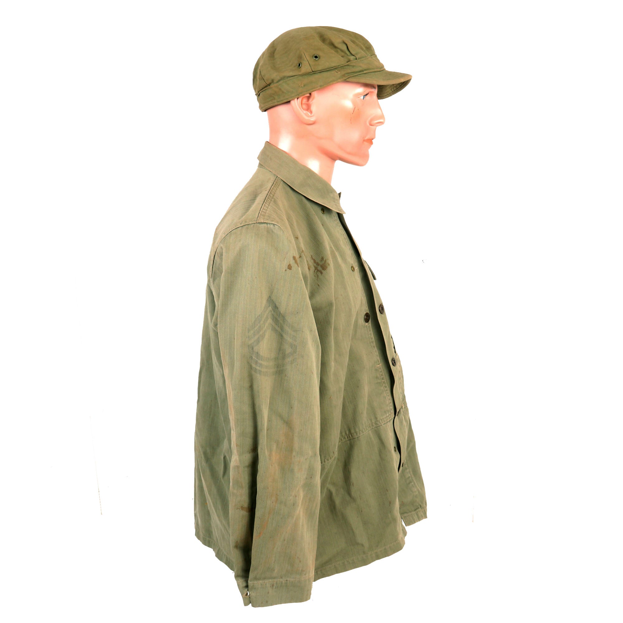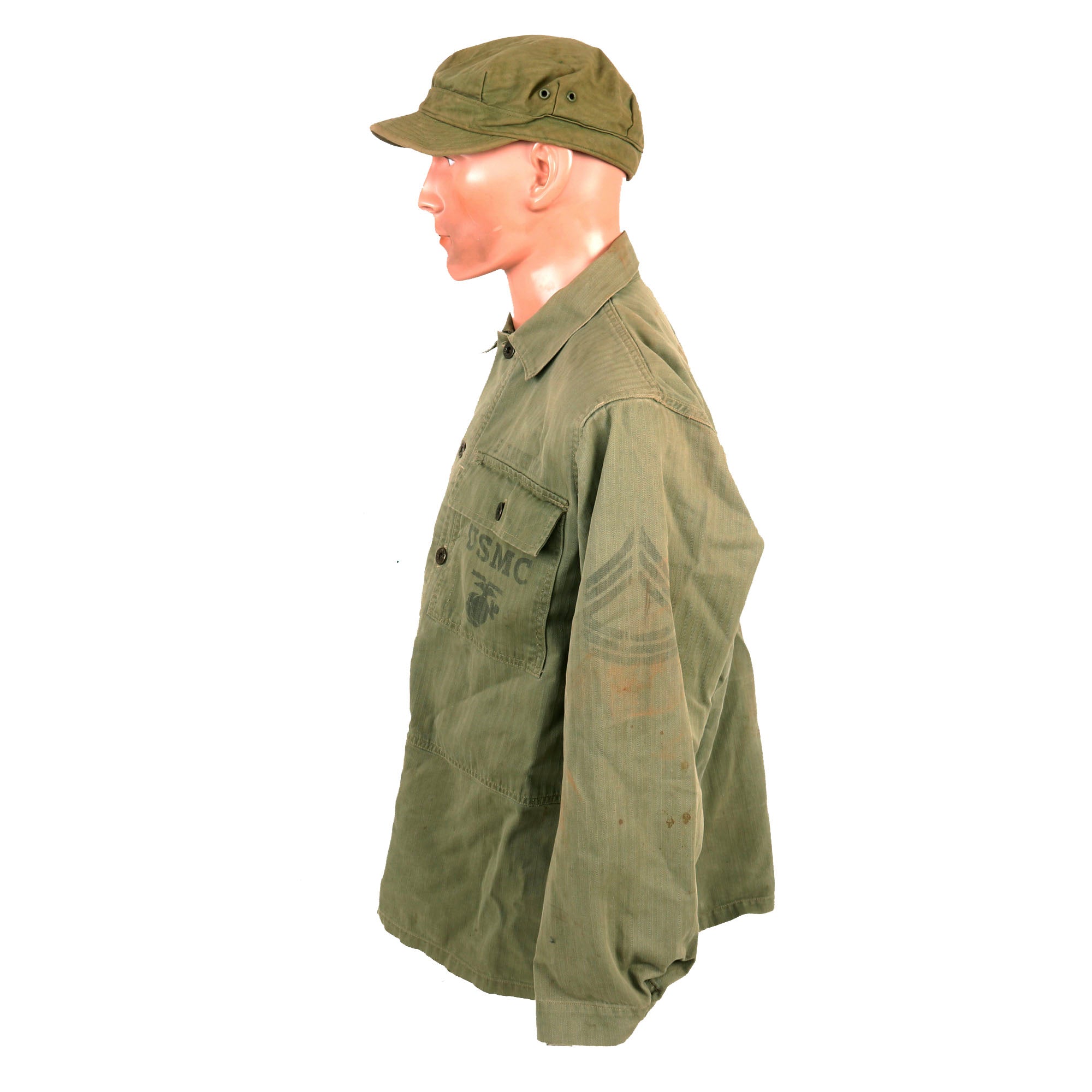 Original Items: Only One Set Available. This is a very nice USMC P-41 Uniform set, including a named jacket, trousers, cap, and boots. The set is comprised of the following: