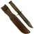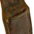 The leather sheath is the standard type used with the Mark 2, and is in good, service used condition. The leather has aged to become quite dark, with the belt loop showing a bit of a lighter dark red brown color. It is still supple and with the expected cracks from service use. All of the stitching and rivets are still intact, and it is structurally very sound. The securing strap is mostly intact with the male end snap side strap mostly torn away.