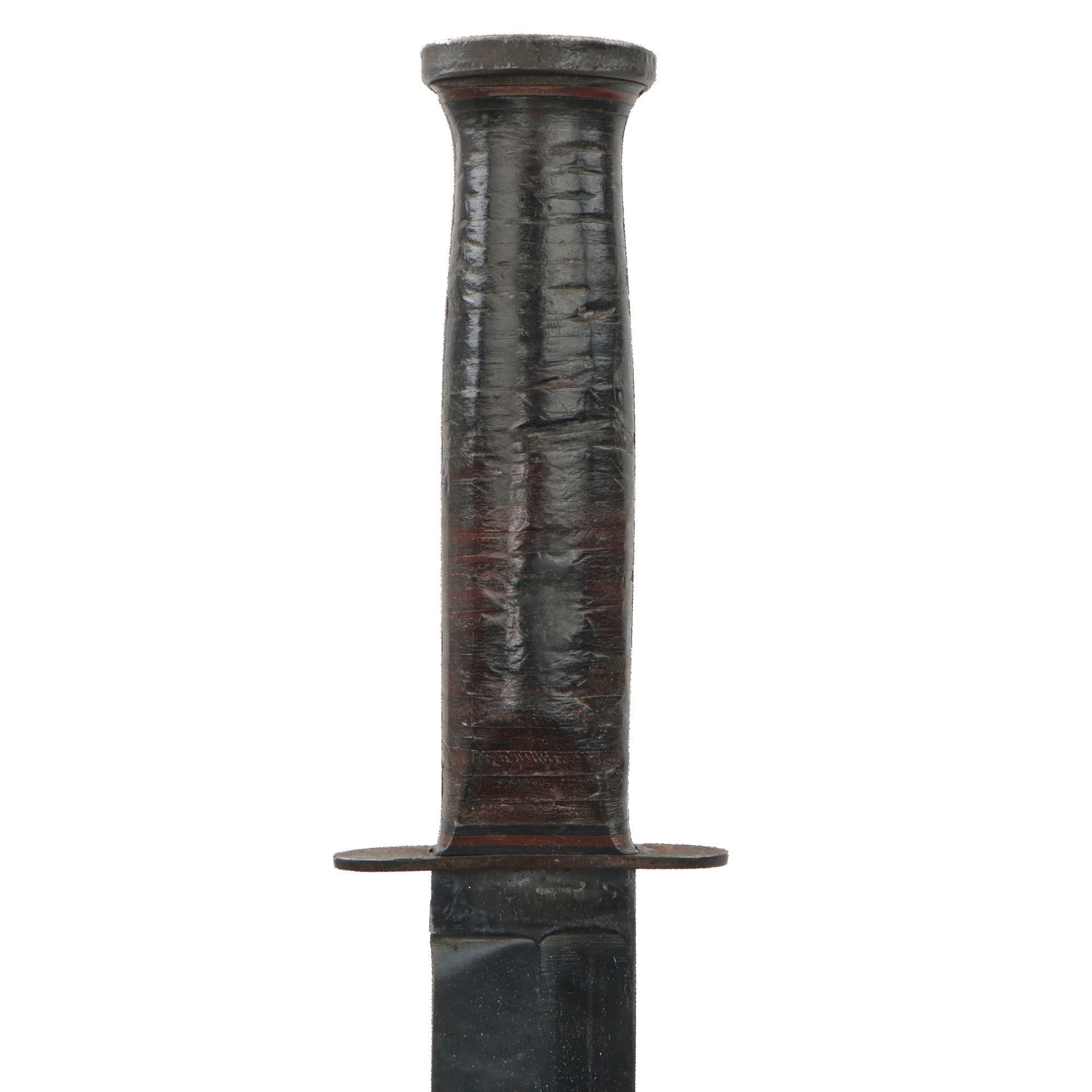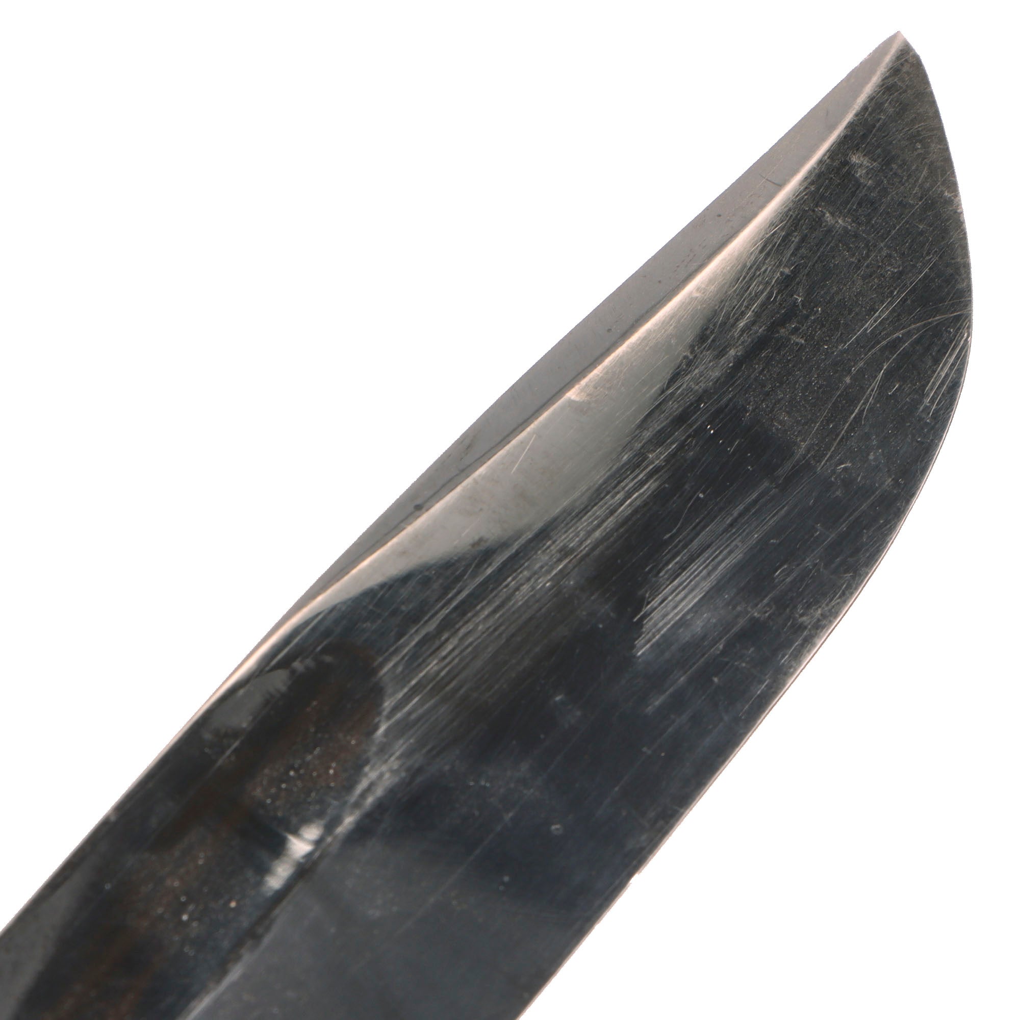 This marking was used for most of the WWII production after 1941. This knife has definitely been used, but not intentionally abused, and the blade appears to have been sharpened a bit. In many places the edge is still quite sharp, and there are no major nicks but there is a chip present. It does retain a great deal of the high quality heavy blued finish on both sides, with some minor wear denoting some period use.