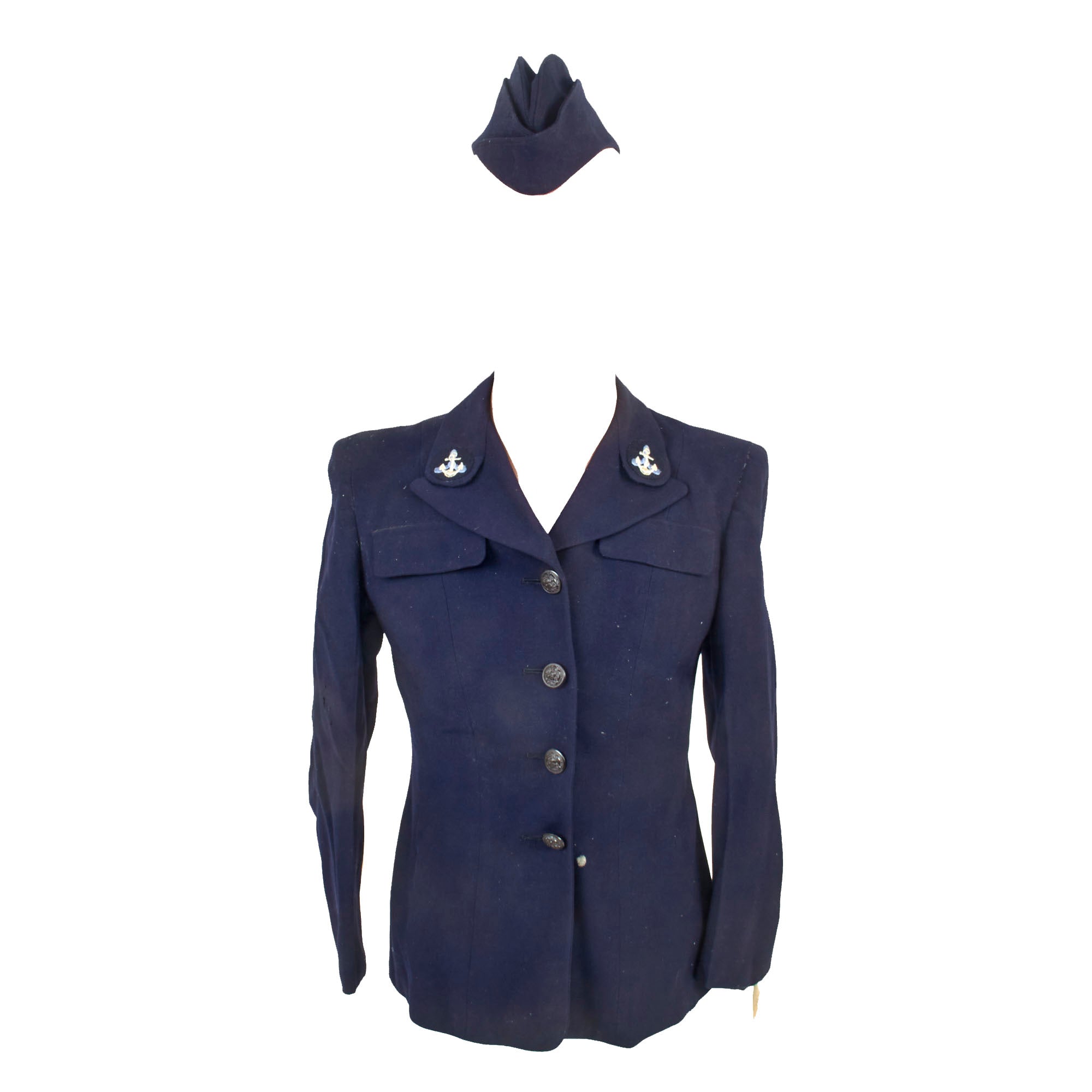 - Uniform jacket with WAVES collar insignia, no other insignia. The jacket has some light mothing and staining as shown. No nametag.
