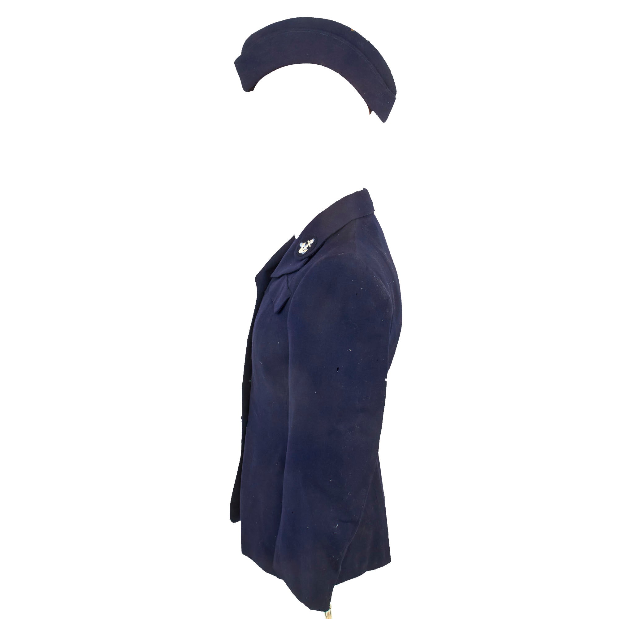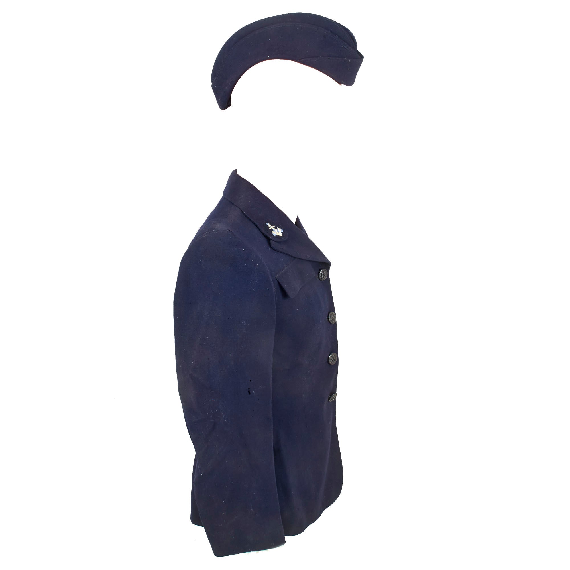Original Item: Only One Set Available. This is a rather rare WAVES grouping named to Yeoman 3rd Class Bernadette Patricia Gonsalls. WWII US Navy WAVES items are particularly difficult to come across in recent years due to the small number of women who served in the element. Coming across a uniform set in this kind of condition is another rarity!