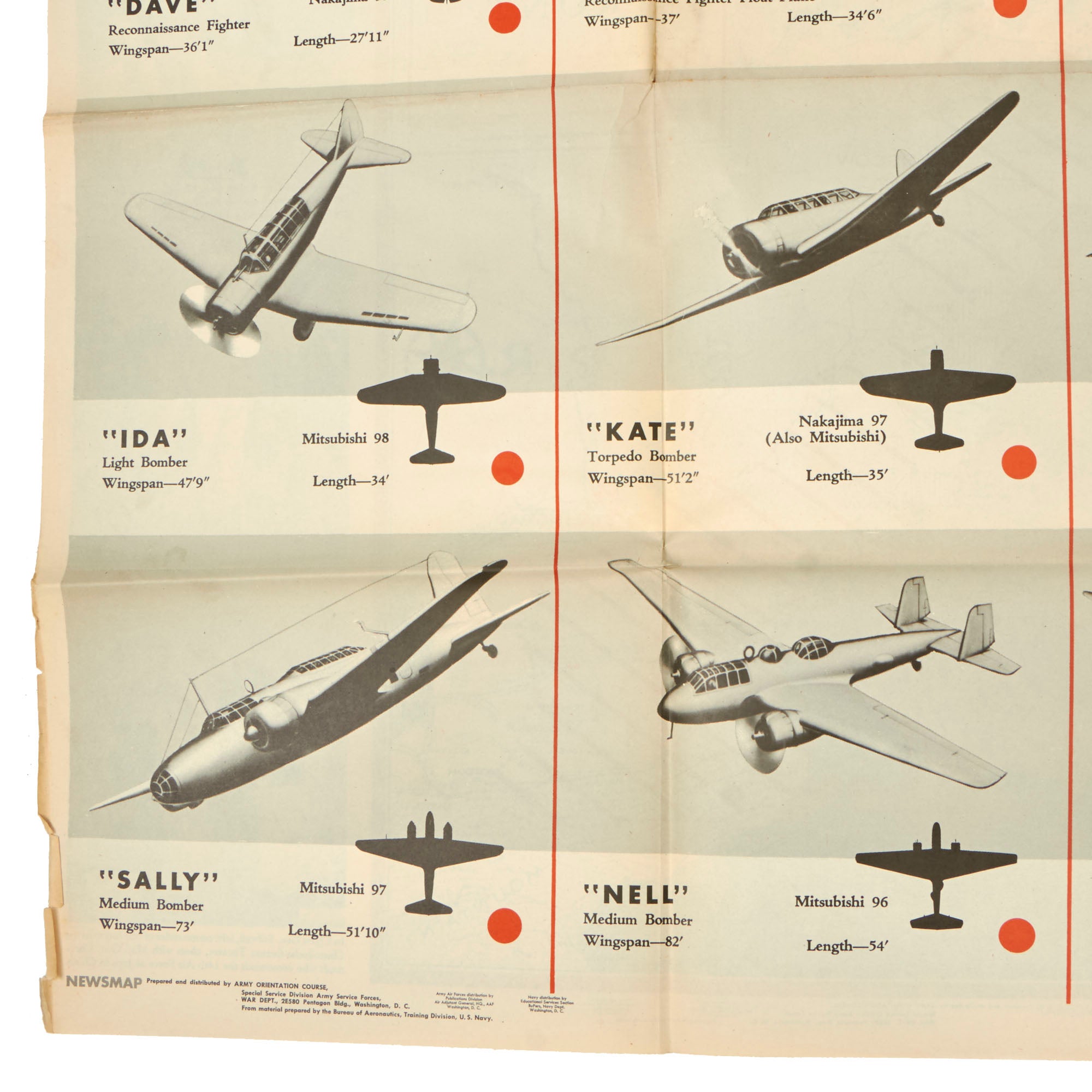 Original Item: Only One Available. The U.S. War Department published Newsmaps throughout the second World War. The names and configurations of the responsible sub-agencies changed several times during the war. Notes on many of the Newsmaps indicate that they were distributed by both the Army and the Navy. The poster is in fair shape but does have some folding tears from being stored like this for so long. There is also a small bit of staining on the plane side.