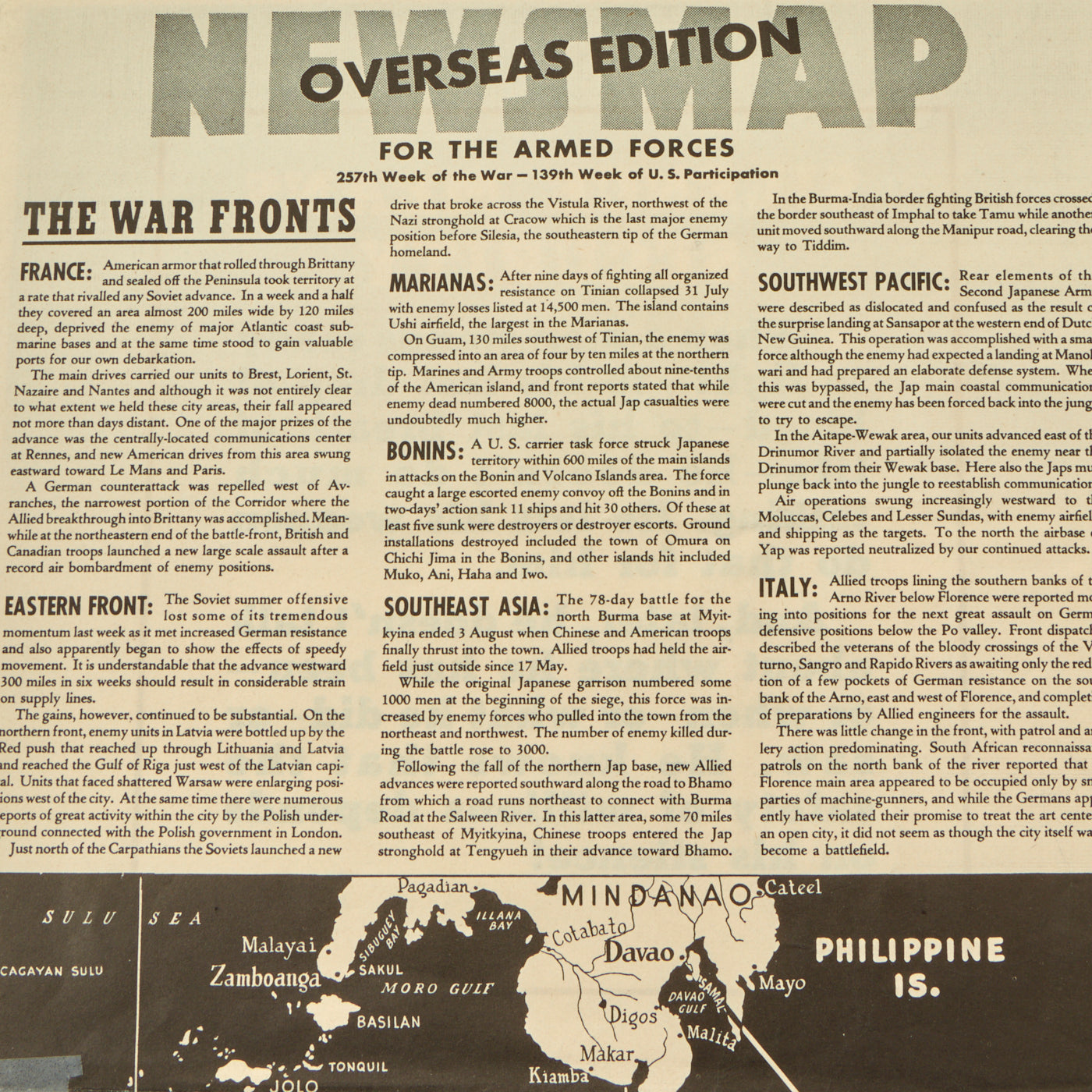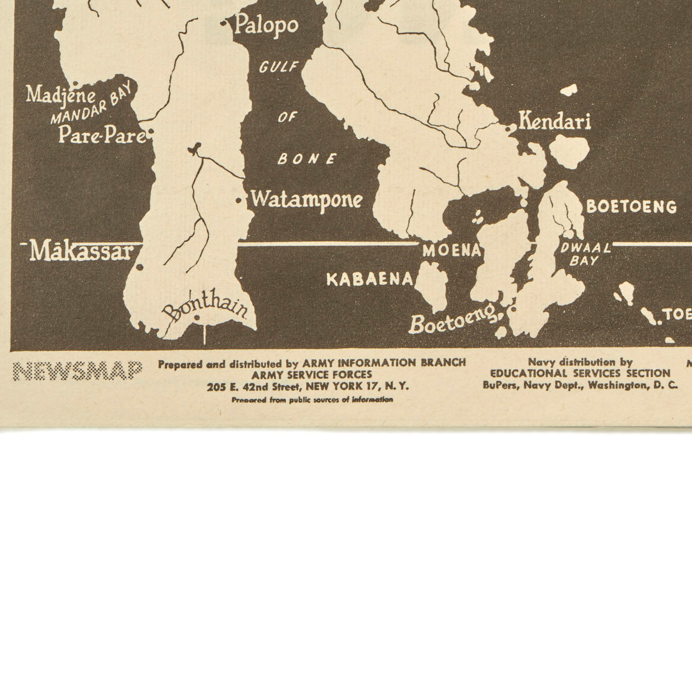Original Item: Only One Available. The U.S. War Department published Newsmaps throughout the second World War. The names and configurations of the responsible sub-agencies changed several times during the war. Notes on many of the Newsmaps indicate that they were distributed by both the Army and the Navy.