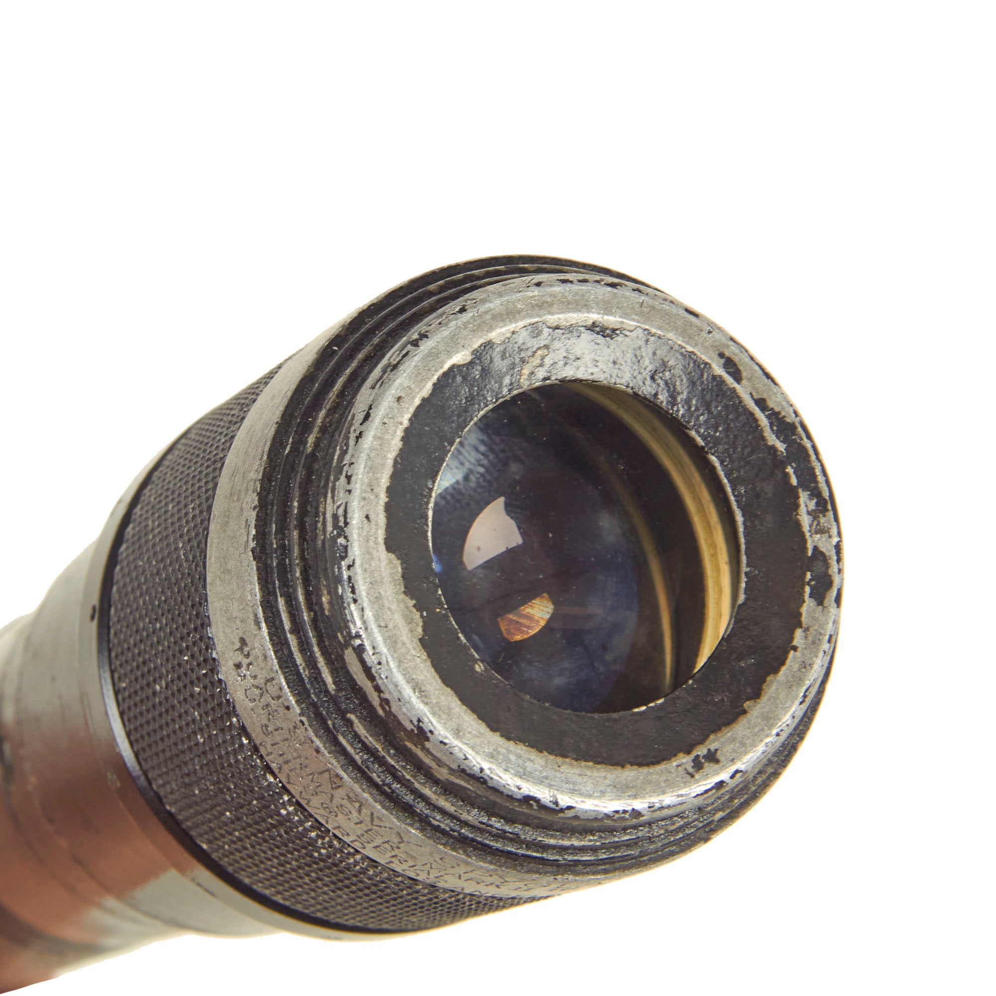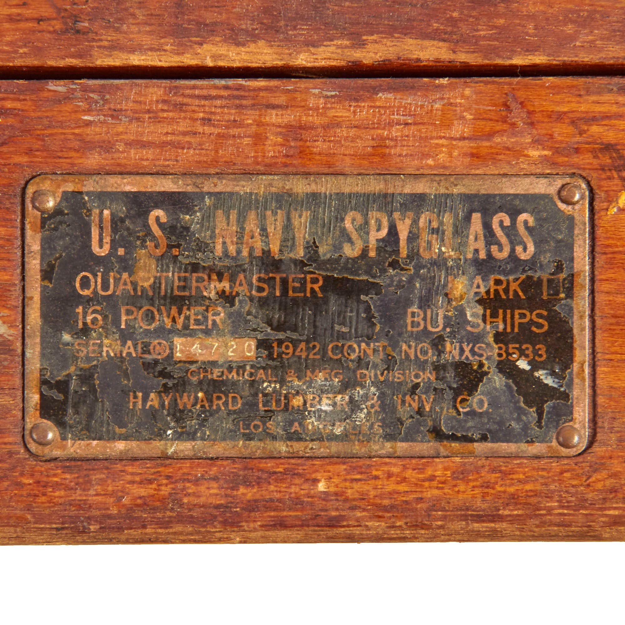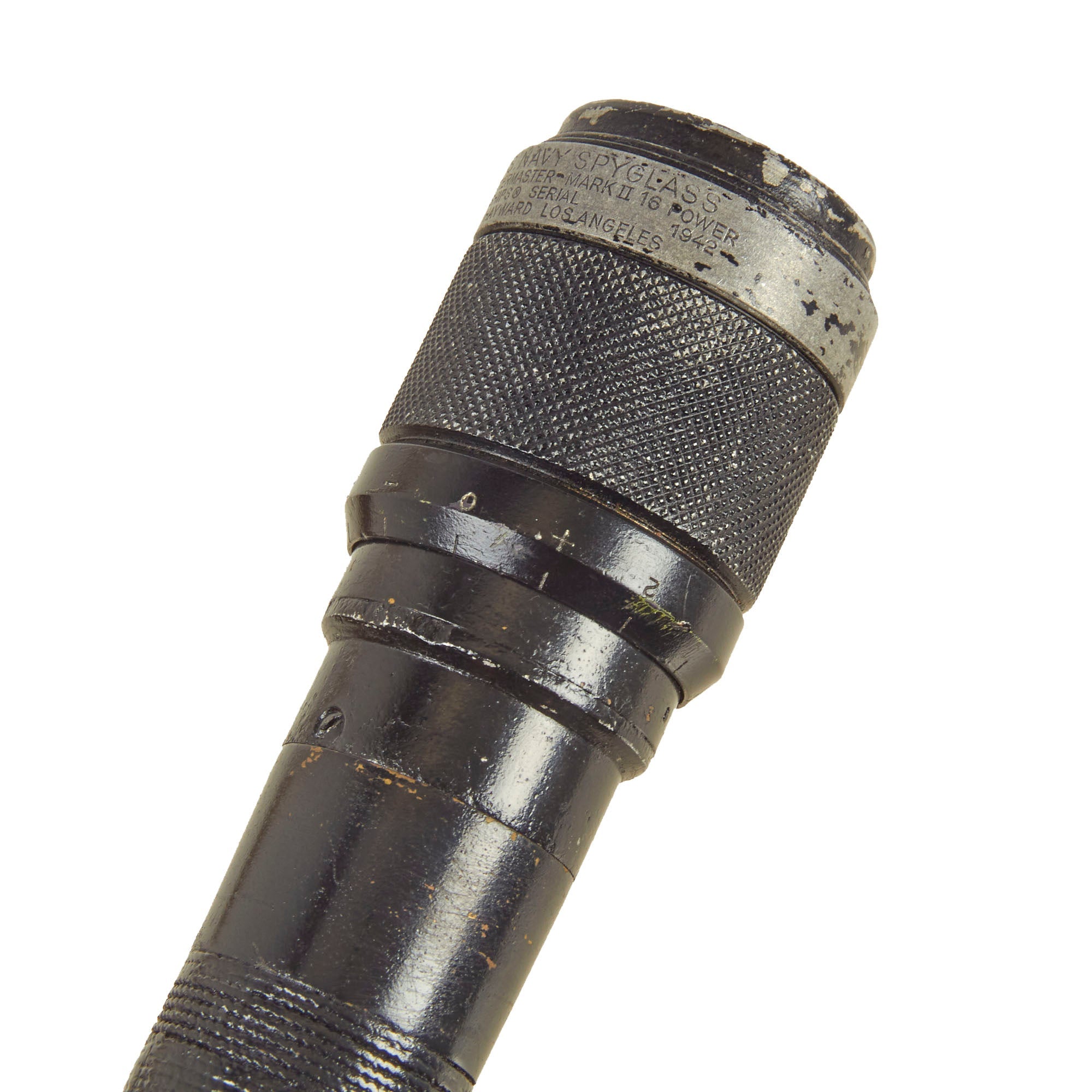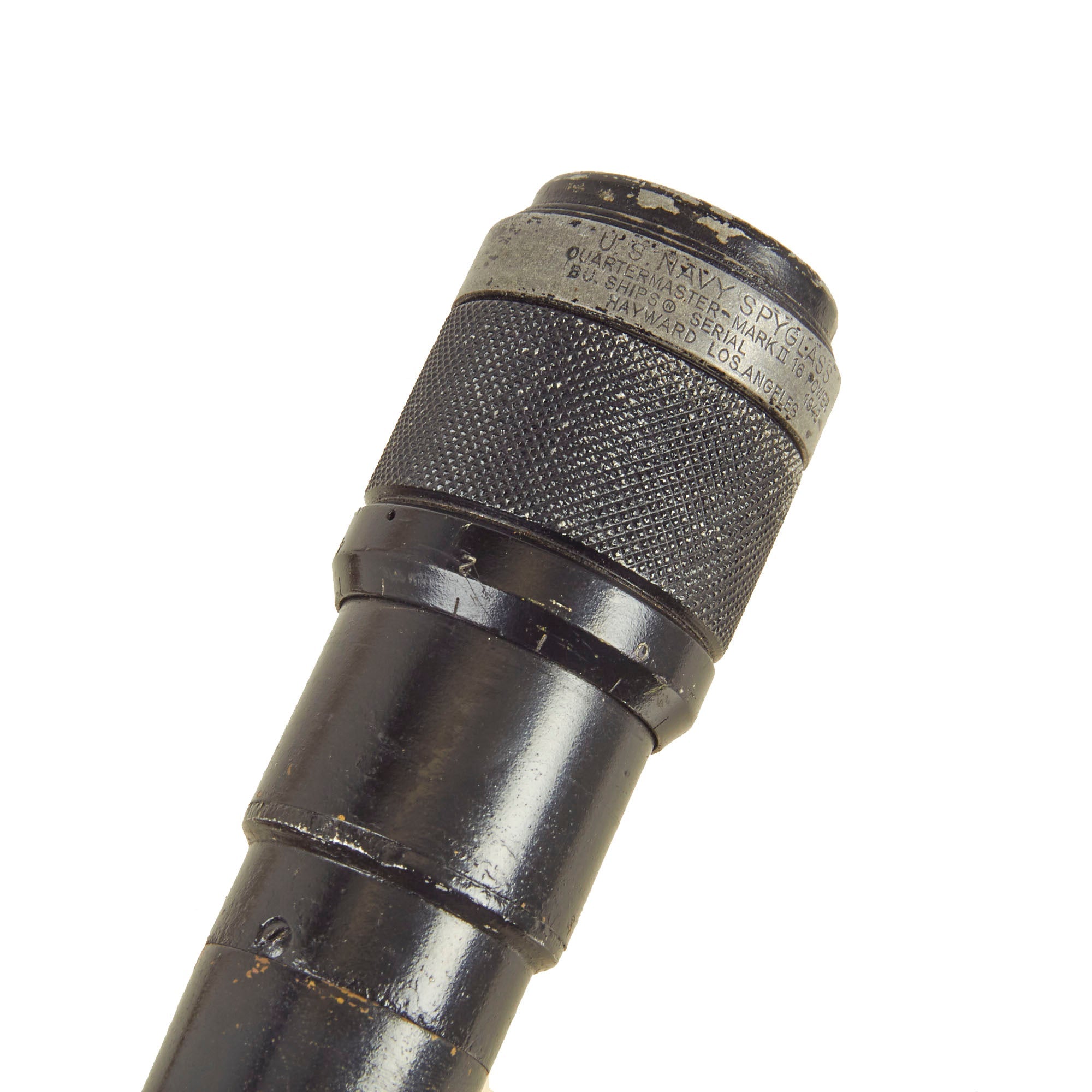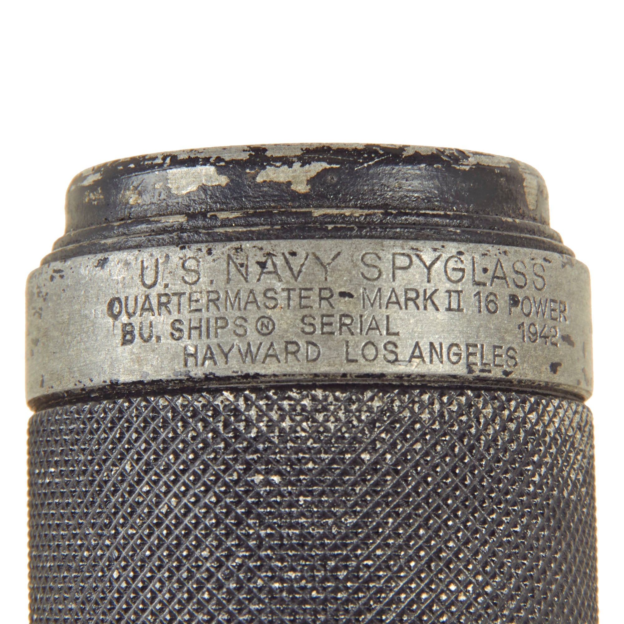 This is a wonderful example of a 1942 Spyglass, used by Quartermasters aboard US Naval ships during WWII. Quartermasters (QM) stand watch as assistants to Officers of the deck and navigators. They serve as helmsman and perform ship control, navigation and bridge watch duties. Your duties may include: Procure, correct, use and stow navigational and oceanographic publications and oceanographic charts. A telescope would have been an important piece of equipment for them to use!