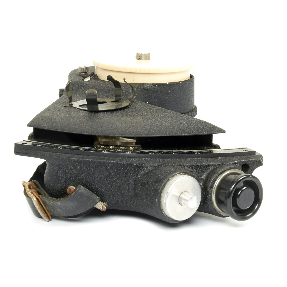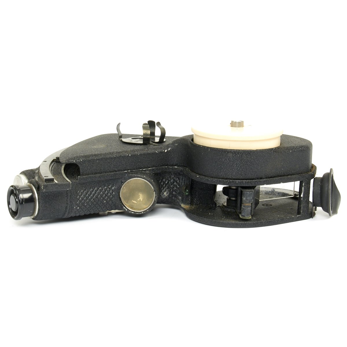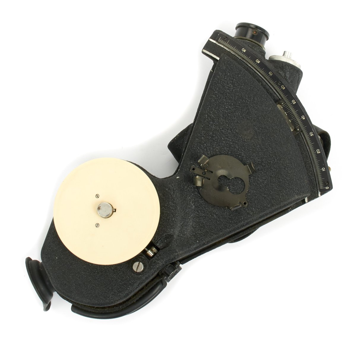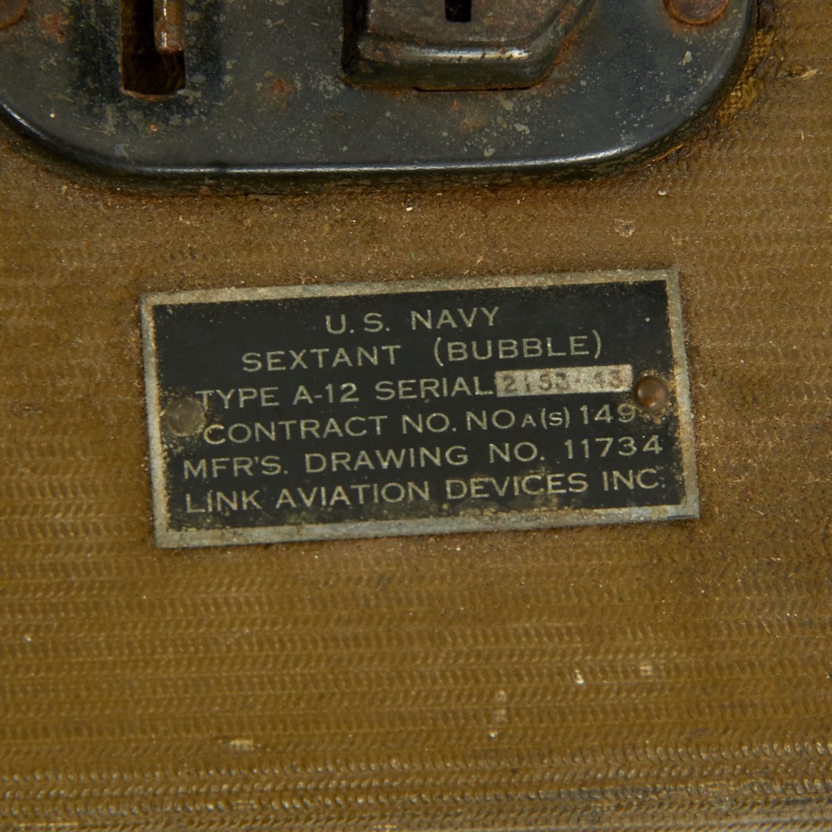 This is an excellent condition World War II sextant manufactured by the Link Aviation Co. It was used by the Military before and after the war and was the last of a line of aircraft sextants whose design was influenced by use in open cockpit airplanes.