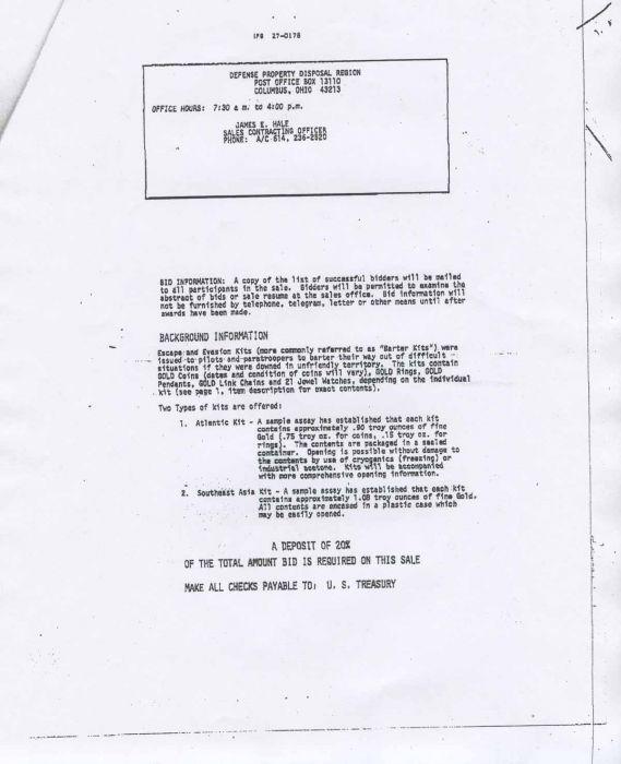 World War II United States Navy Escape and Evasion Barter "Atlantic Kit". The contents of the sealed hard rubber kits varied in contents, they were developed for use in Europe and Pacific theaters and they were issued to certain airmen. Referred to as "barter kits" for use in case of an emergency landing or bailout in an unfriendly or primitive area overseas. The airman could barter in aiding escape and evasion in difficult situations by local civilians. The kits being of such value were a controlled item and each kit had its own serial number. They were accountable, and the airman had to sign for each kit upon issue and return as instructed if not used. Note: Gold value during this time period was approximately $25 per ounce market value.