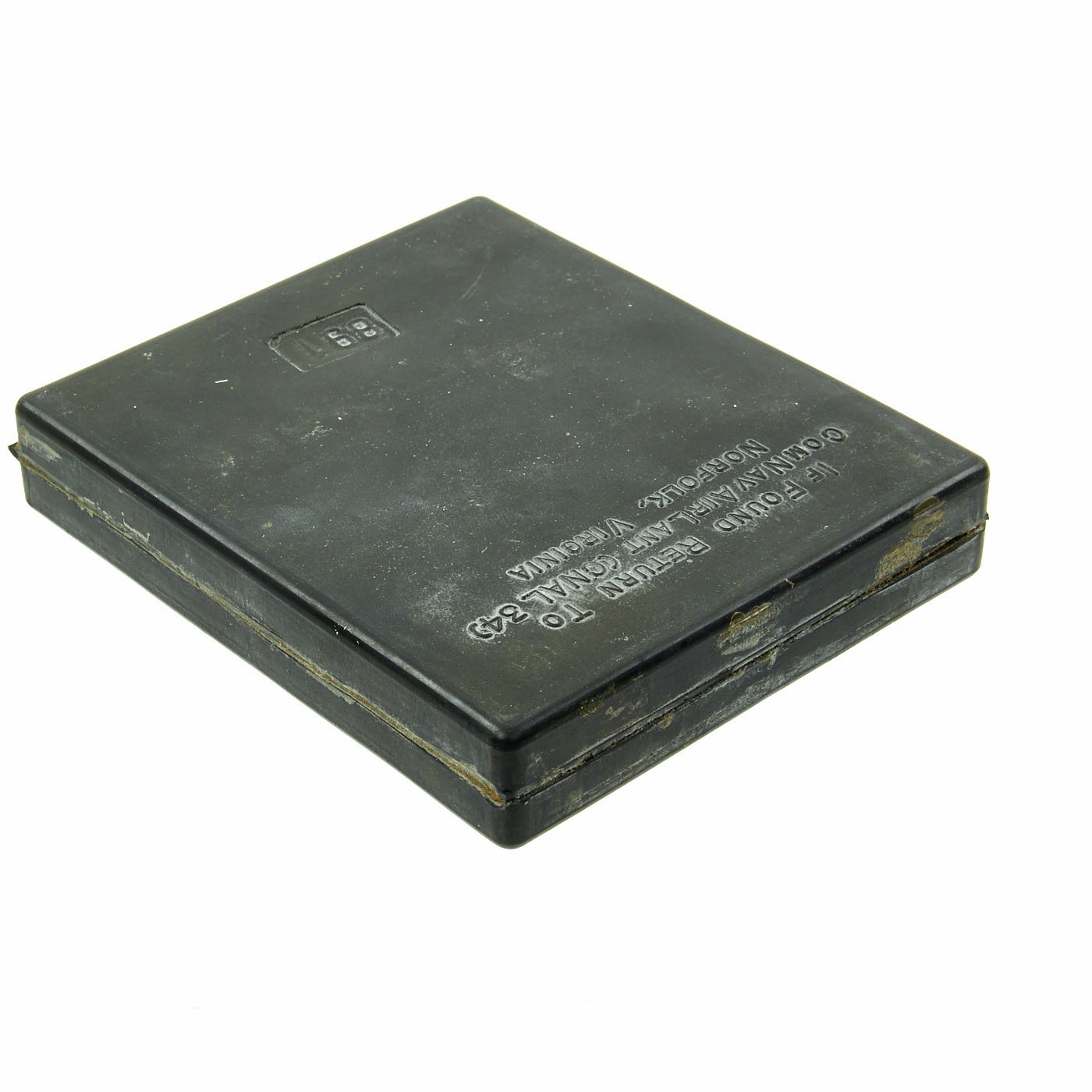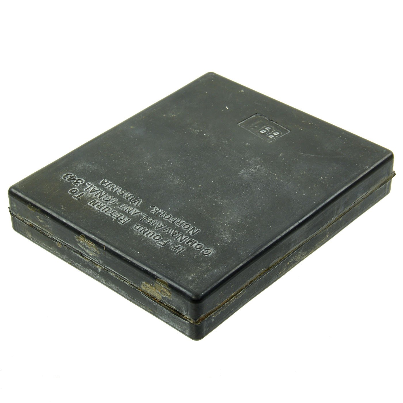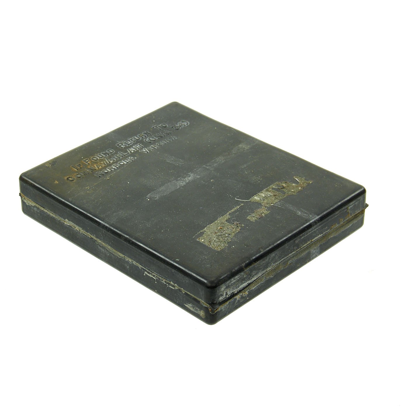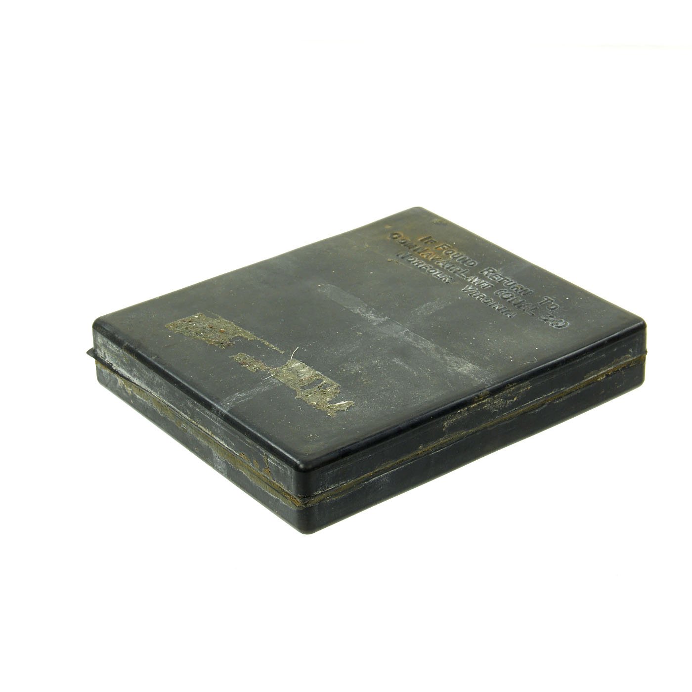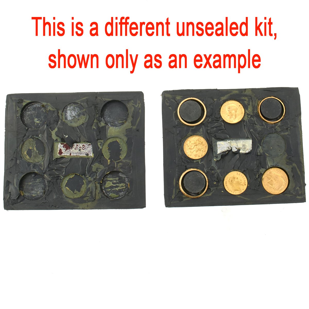 Issued to Navy pilots and aircrew, the Atlantic kits contained approximately .90 troy ounces of gold. The gold consists of 5 coins and three rings as follows: French 20 Franc, French 10 Franc, British Sovereign, 2 British Half Sovereigns, and 3 Gold Wedding Band Rings (two at 20K and one at 9K). All designed for military personnel caught behind enemy lines to use as barter, the outside of the kit reads IF FOUND RETURN TO COMNAVAIRLANT (ONAL 34) NORFOLK, VIRGINIA. All of this is contained in an individually numbered solid rubber block that measures 3-5/8" x 4-3/8". This sealed never opened kit is serial number 891. As you can watch in the episode, an x-ray was performed on this particular kit to determine that it is complete and never tampered with. The value of the gold in today's market is approximately $1250.