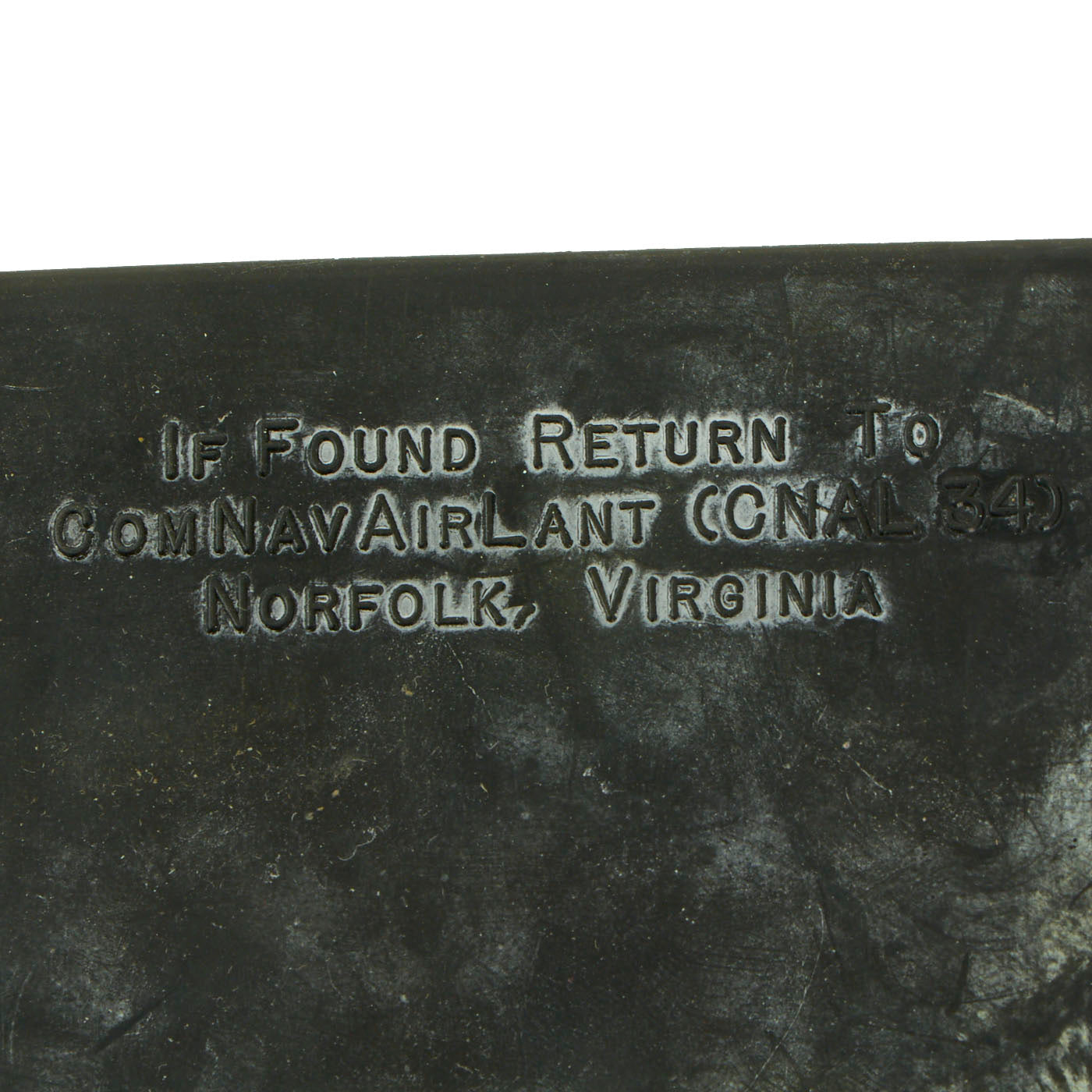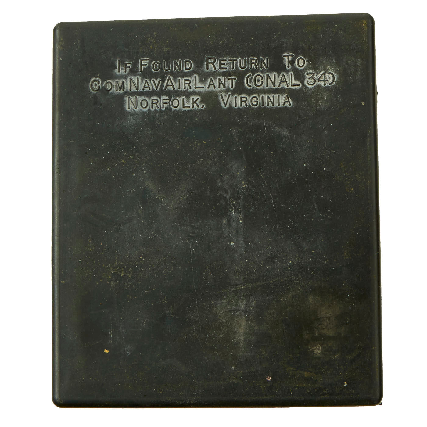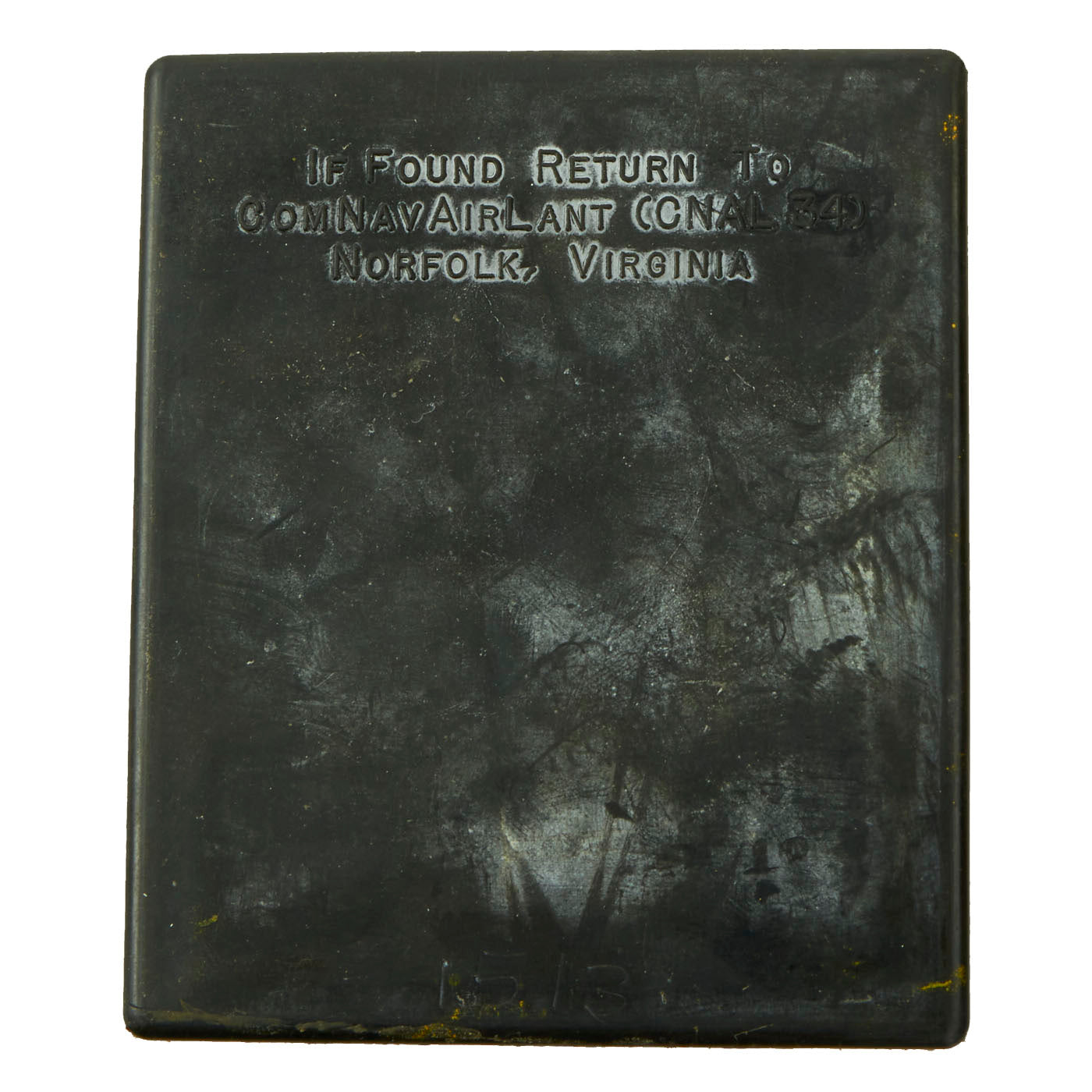 Issued to Navy pilots and aircrew, the Atlantic kits contained approximately .90 troy ounces of gold. The gold consists of 5 coins and three rings as follows: French 20 Franc, French 10 Franc, British Sovereign, 2 British Half Sovereigns, and 3 Gold Wedding Band Rings (two at 20K and one at 9K). All designed for military personnel caught behind enemy lines to use as barter, the outside of the kit reads IF FOUND RETURN TO COMNAVAIRLANT (ONAL 34) NORFOLK, VIRGINIA. All of this is contained in an individually numbered solid rubber block that measures 3-5/8" x 4-3/8". This sealed, never opened kit is serial number 1513. After an x-ray was performed on this particular kit to determine that it is complete and never tampered with you can even see the lead data plate inside the kit which clearly reads 1513. A printed copy of the x-ray will be included with the purchase of this kit. The number 1513 is also scratched into the rubber exterior which is correct for serial numbers 1000-1999. The value of the gold in today's market is approximately $1800.