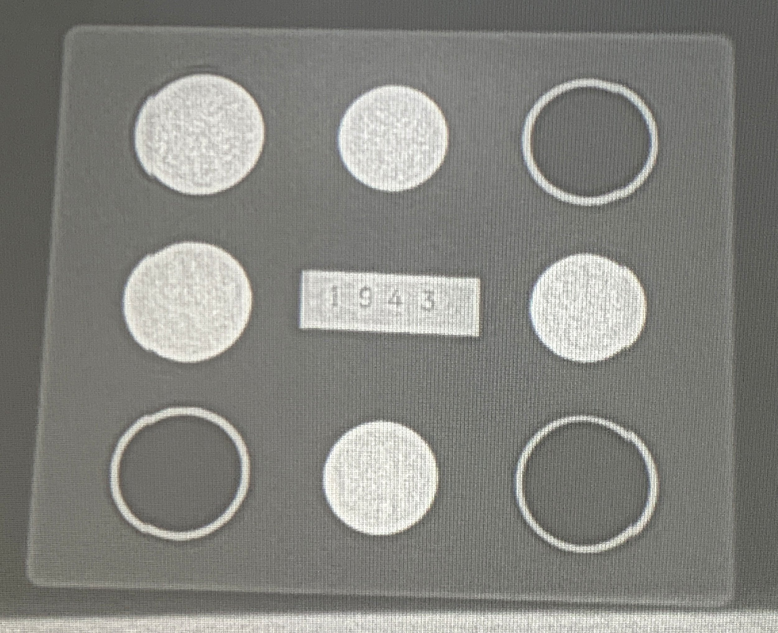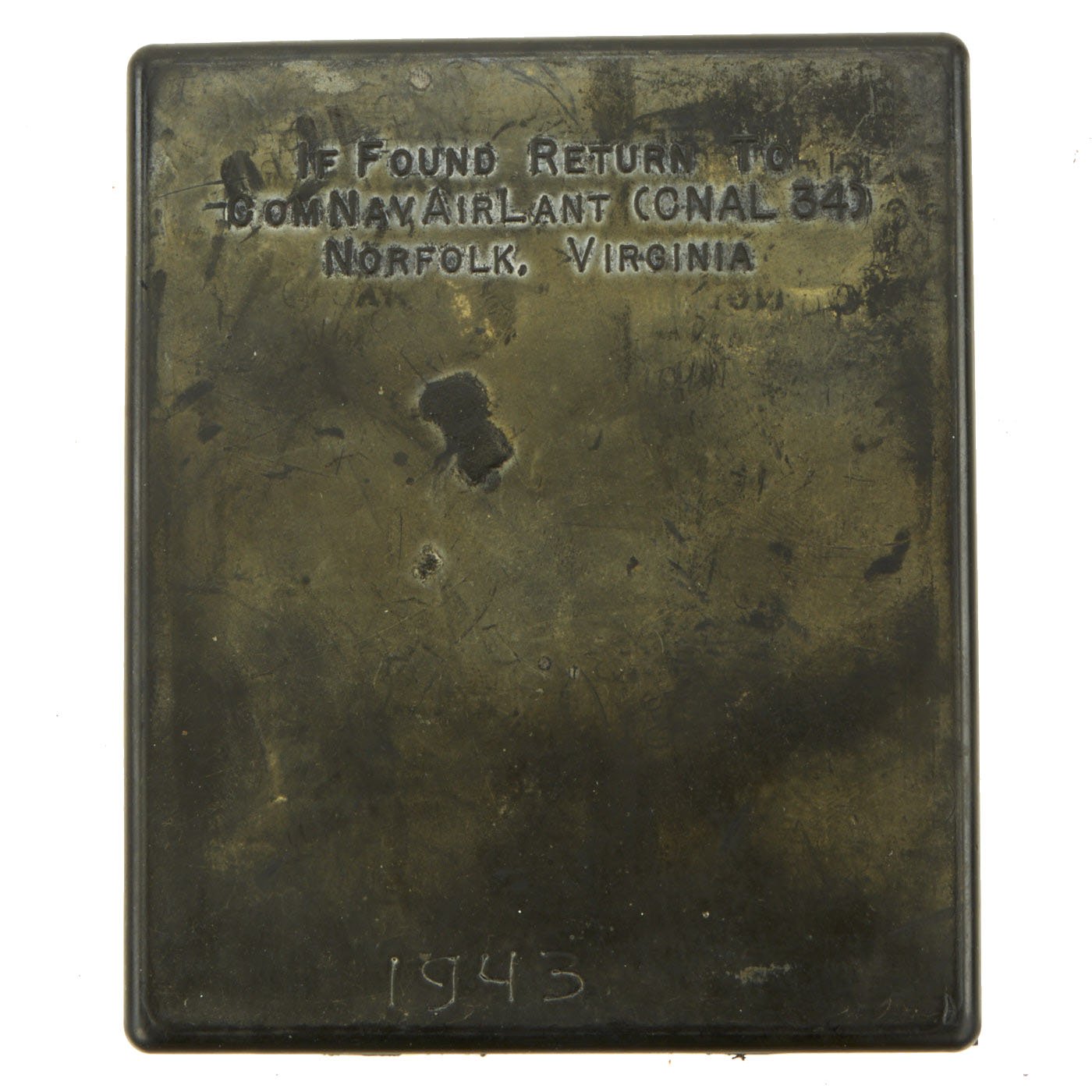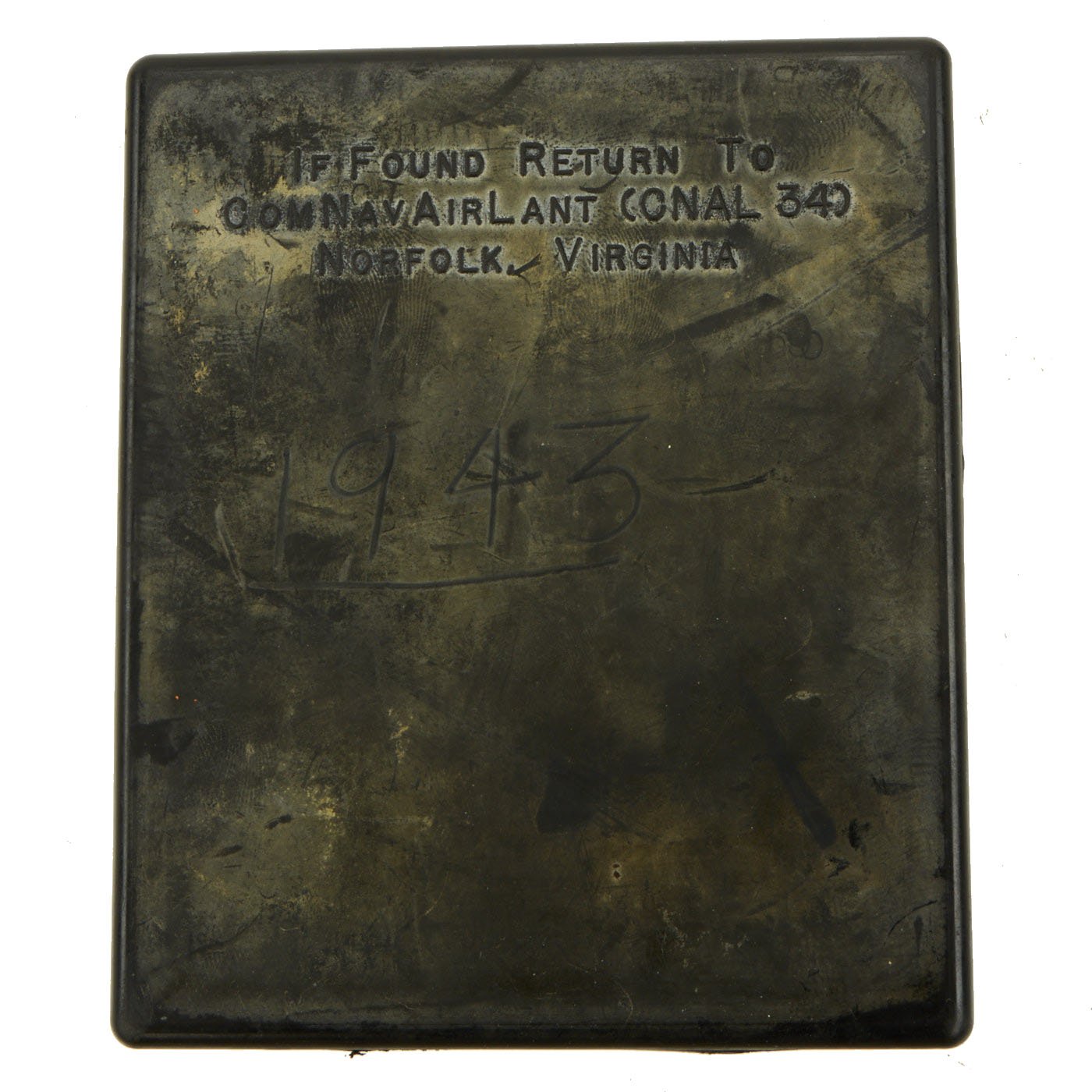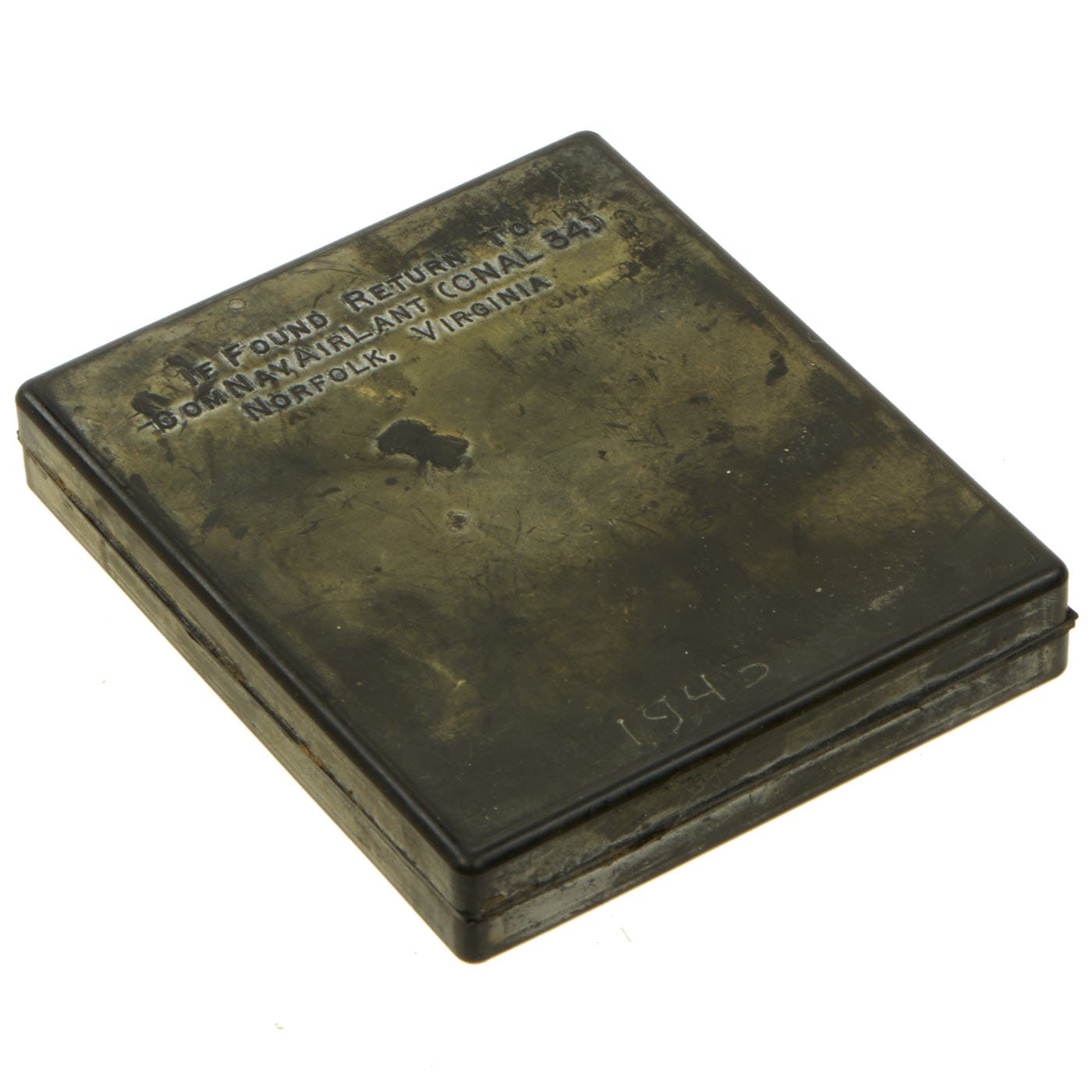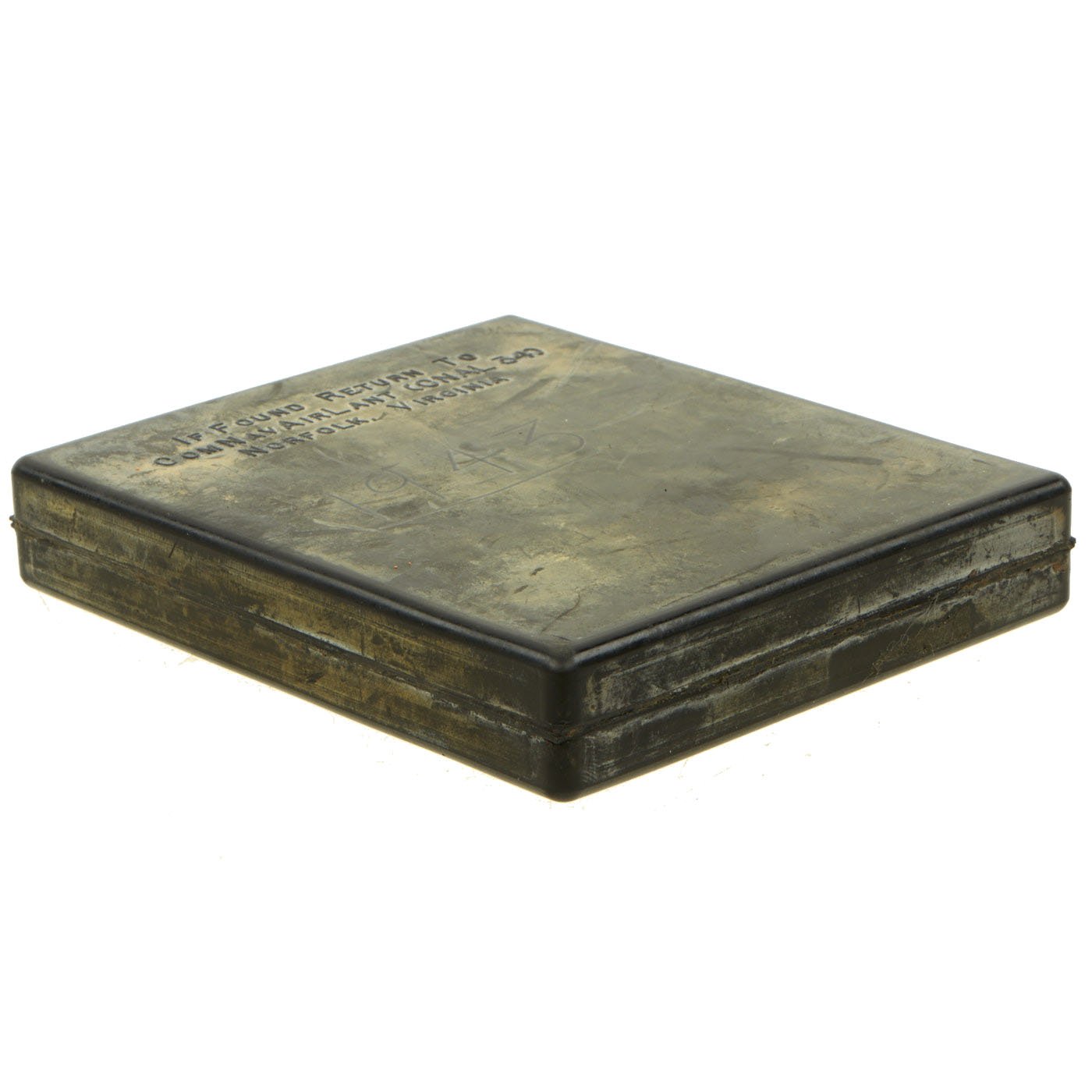 Issued to Navy pilots and aircrew, the Atlantic kits contained approximately .90 troy ounces of gold. The gold consists of 5 coins and three rings as follows: French 20 Franc, French 10 Franc, British Sovereign, 2 British Half Sovereigns, and 3 Gold Wedding Band Rings (two at 20K and one at 9K). All designed for military personnel caught behind enemy lines to use as barter, the outside of the kit reads IF FOUND RETURN TO COMNAVAIRLANT (ONAL 34) NORFOLK, VIRGINIA. All of this is contained in an individually numbered solid rubber block that measures 3-5/8" x 4-3/8". This sealed never opened kit is serial number 1943. After an x-ray was performed on this particular kit to determine that it is complete and never tampered with you can even see the lead data plate inside the kit which clearly reads 1943. A printed copy of the x-ray will be included with the purchase of this kit. The number 1943 is also scratched into the rubber exterior which is correct for serial numbers 1000-1999. The value of the gold in today's market is approximately $1800 - $2000.