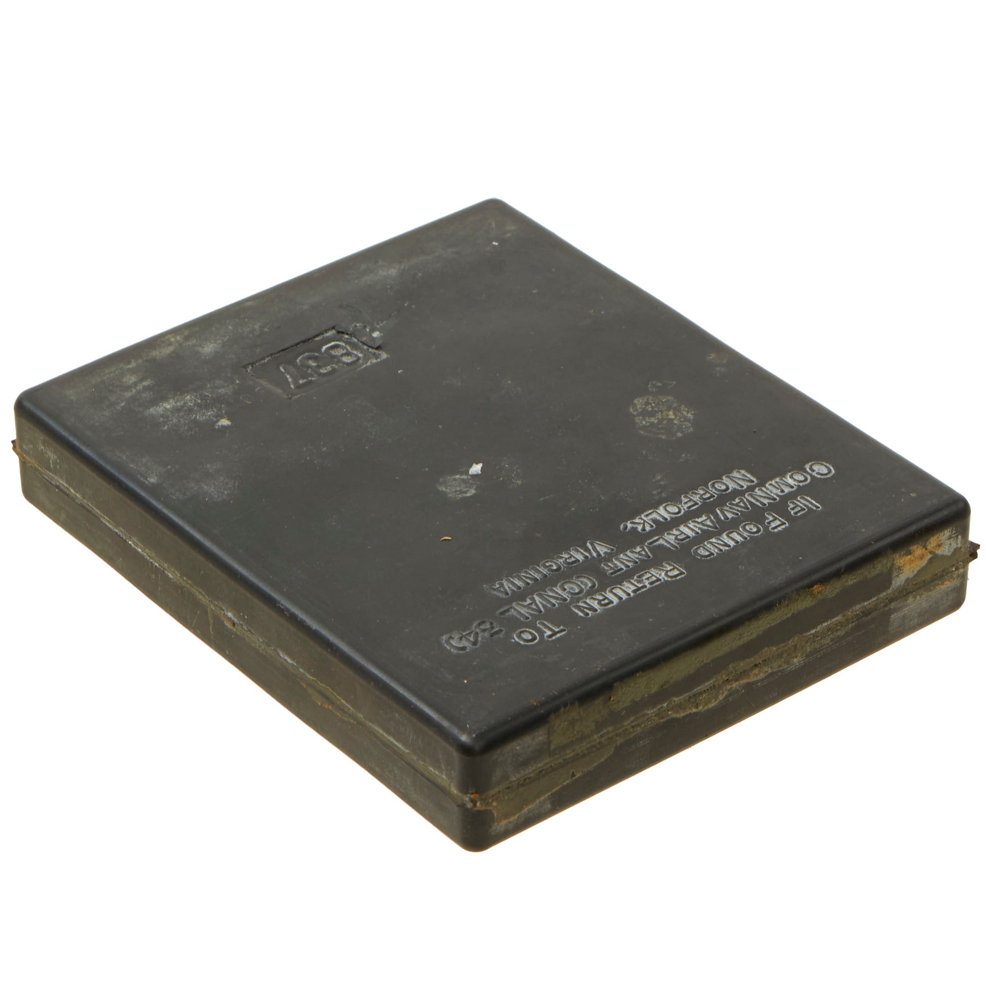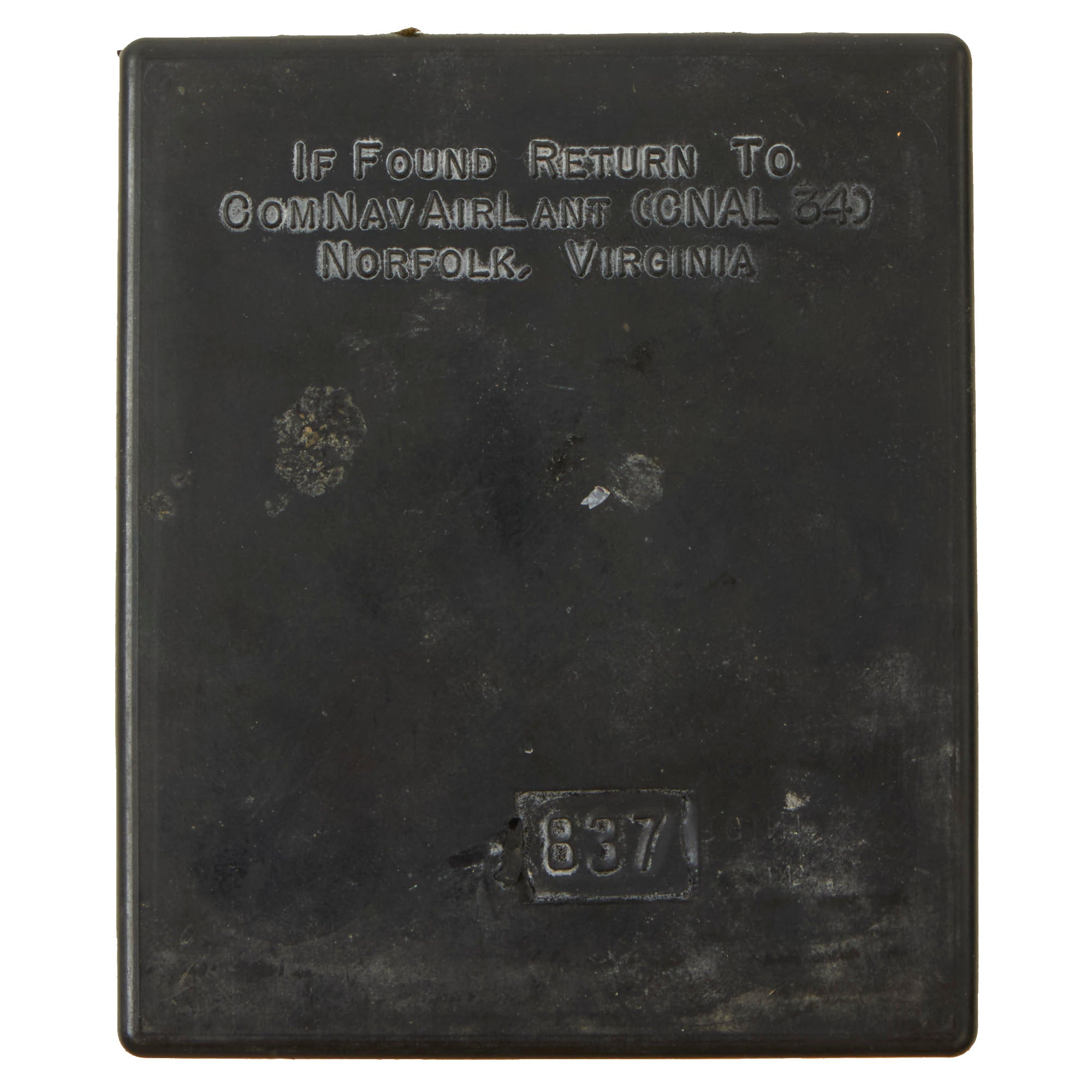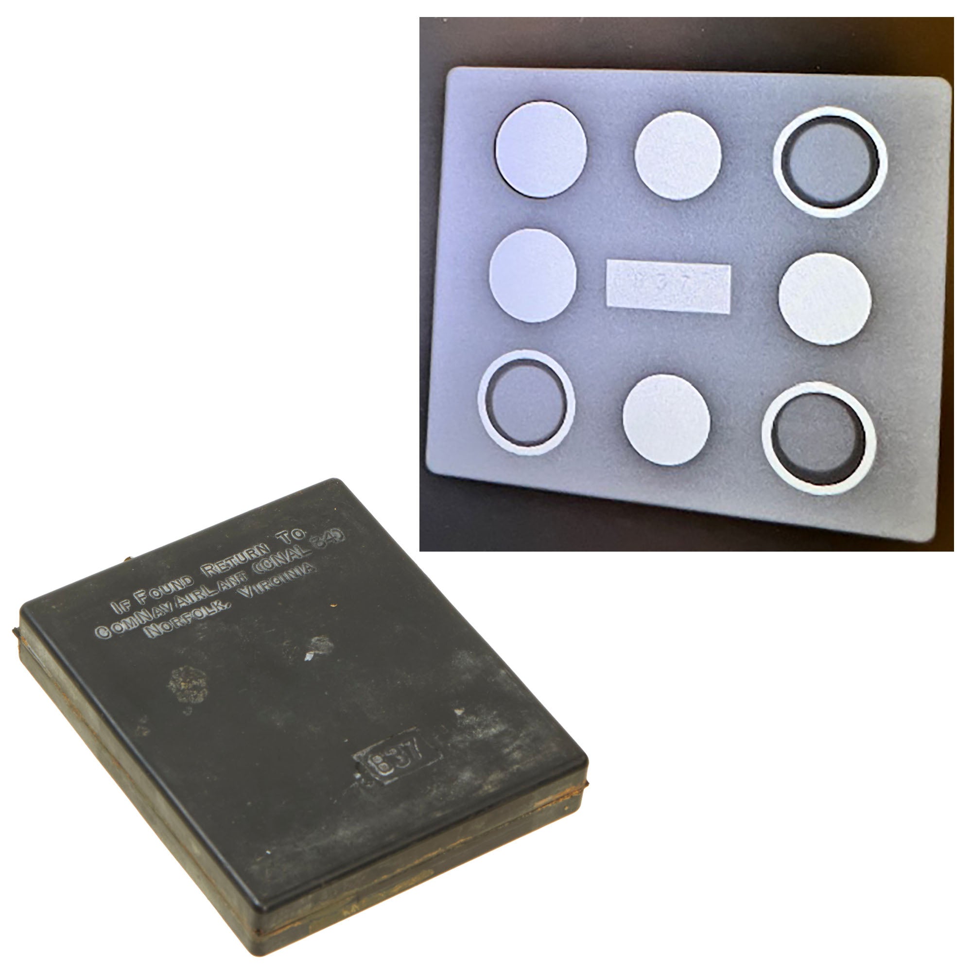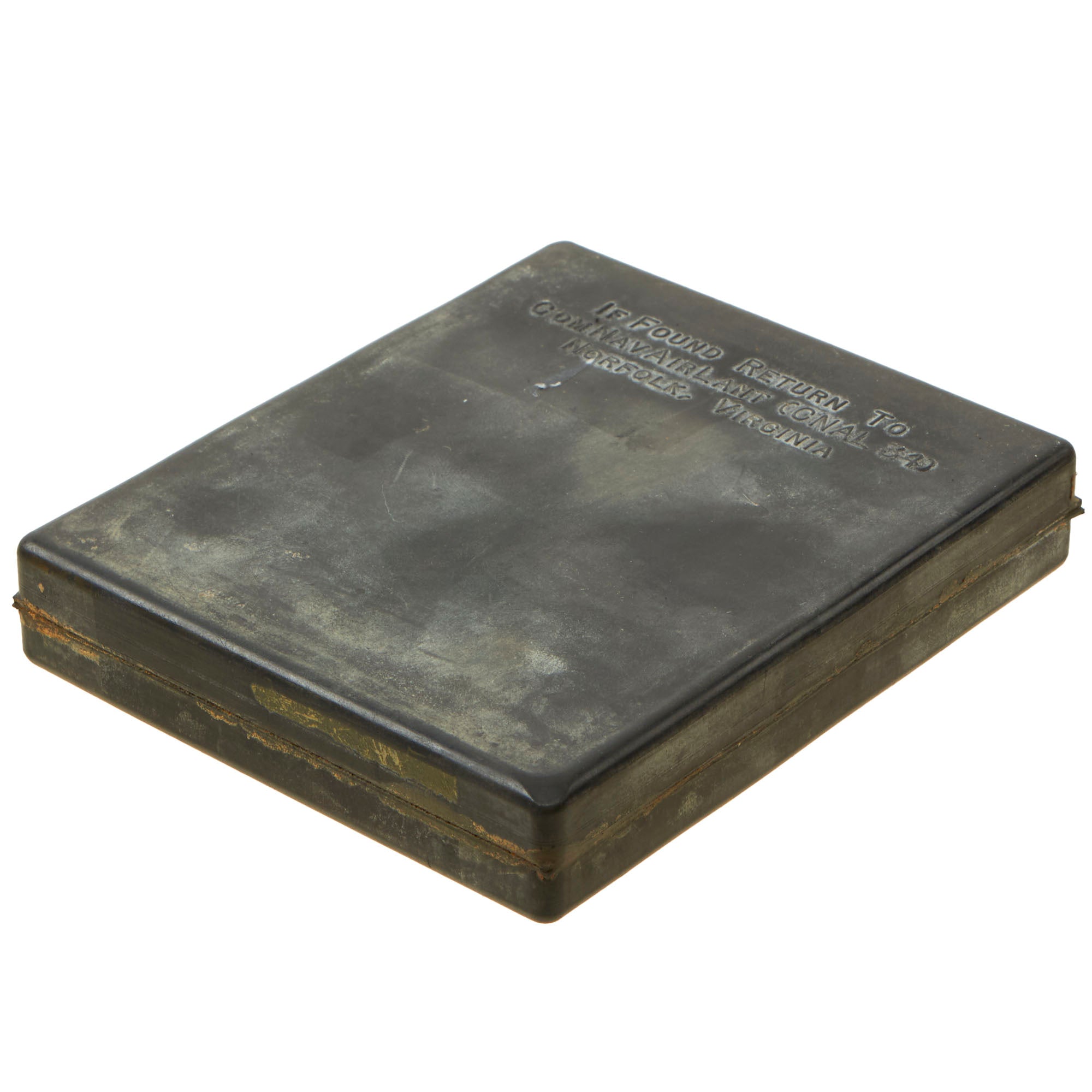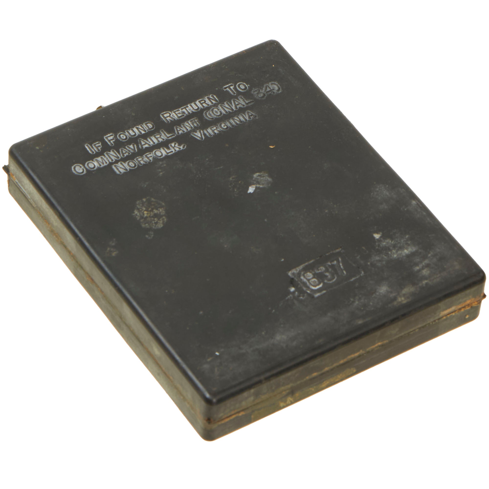 Issued to Navy pilots and aircrew, the Atlantic kits contained approximately .90 troy ounces of gold. The gold consists of 5 coins and three rings as follows: French 20 Franc, French 10 Franc, British Sovereign, 2 British Half Sovereigns, and 3 Gold Wedding Band Rings (two at 20K and one at 9K). All designed for military personnel caught behind enemy lines to use as barter, the outside of the kit reads IF FOUND RETURN TO COMNAVAIRLANT (ONAL 34) NORFOLK, VIRGINIA. All of this is contained in an individually numbered solid rubber block that measures 3-5/8" x 4-3/8".