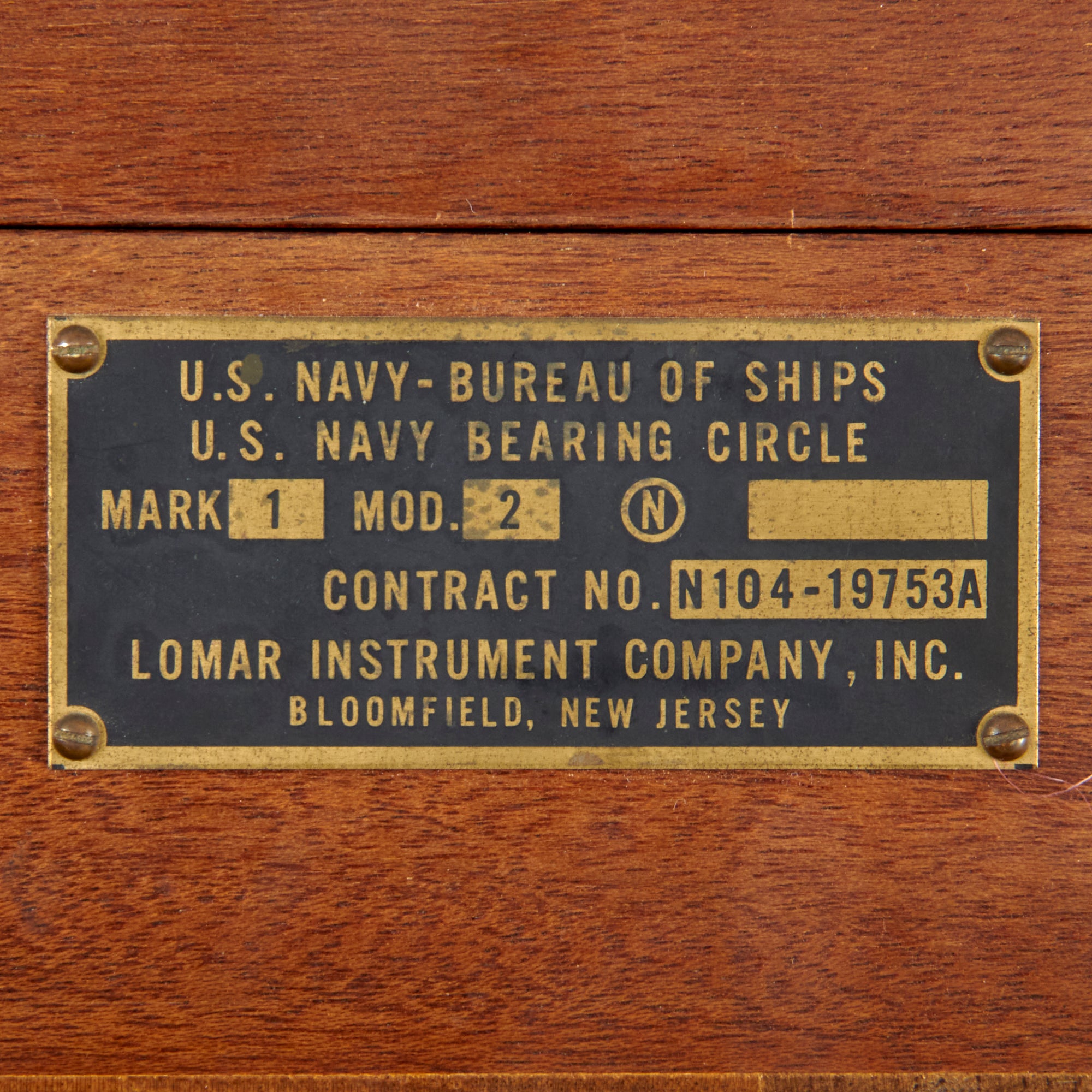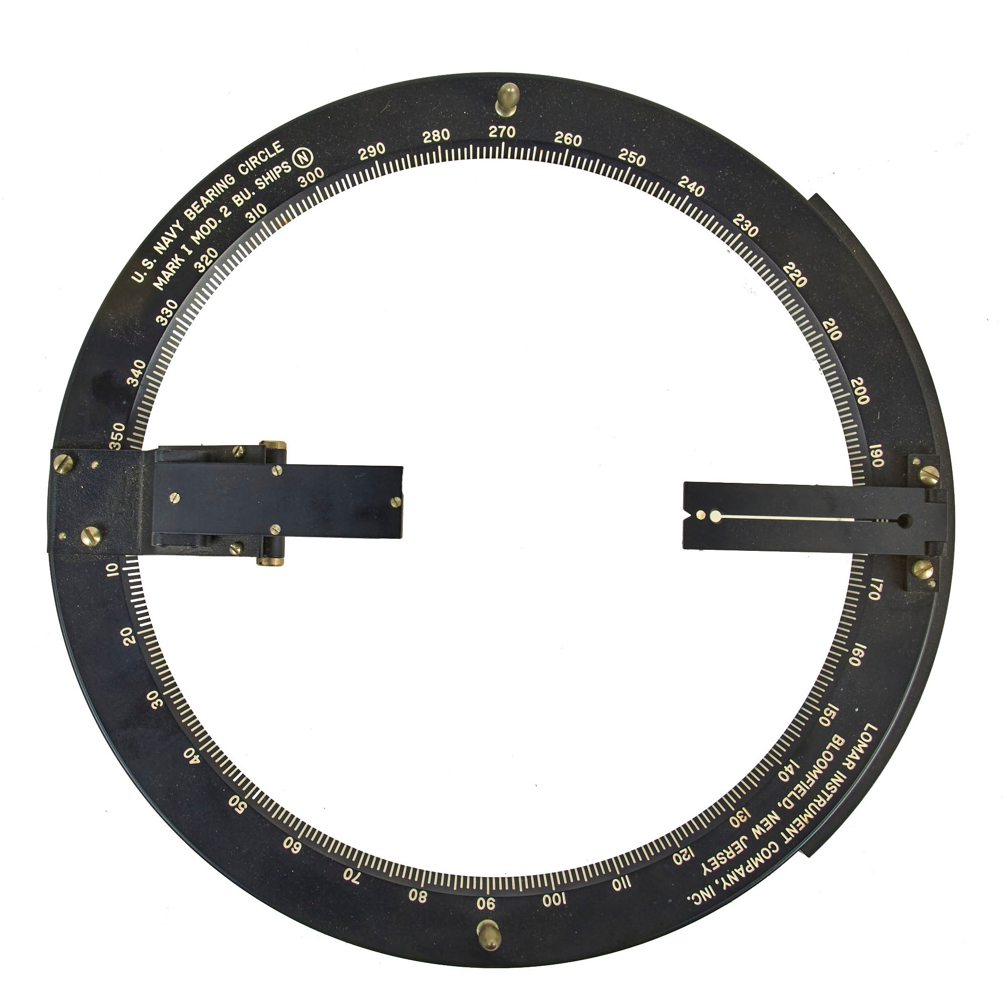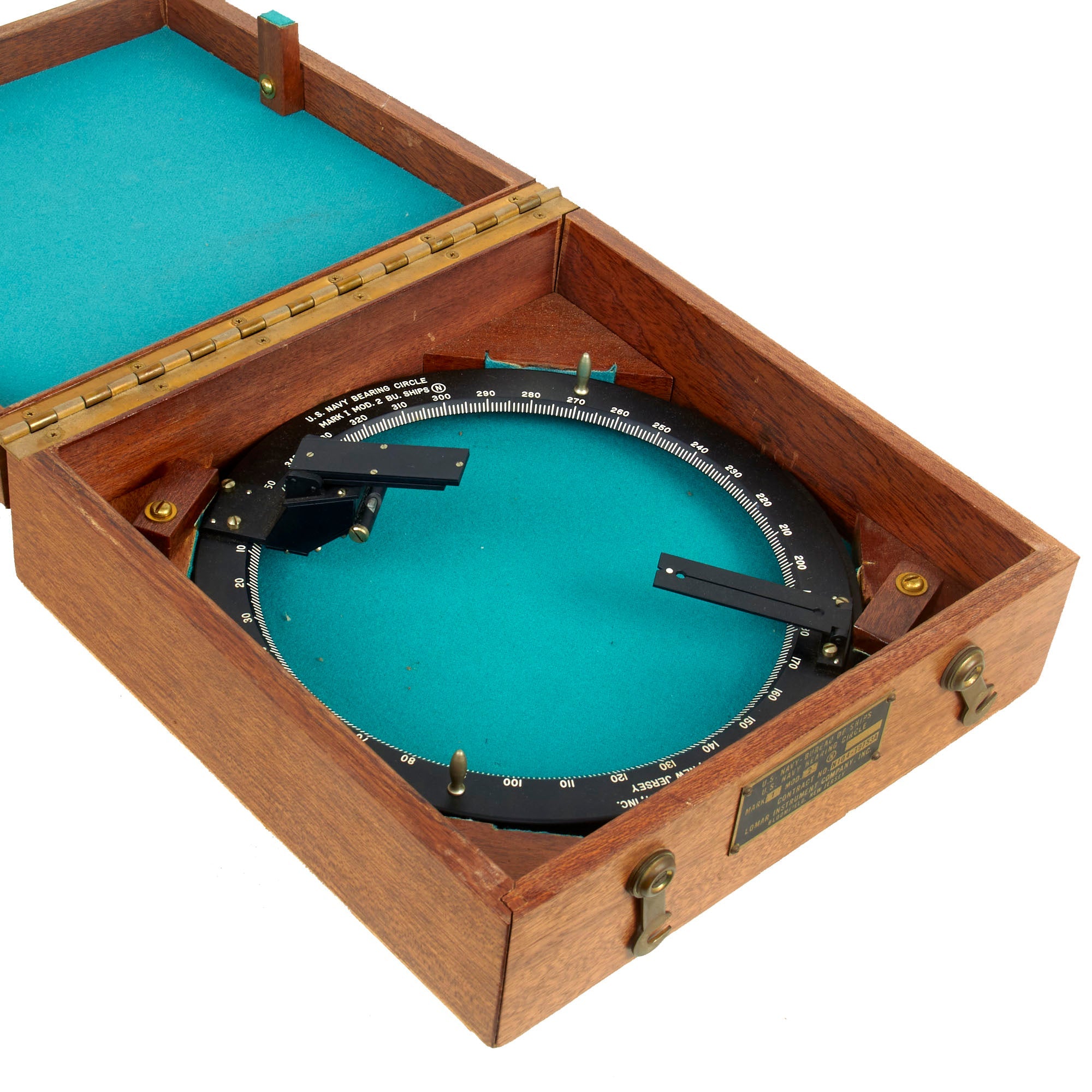 This is a lovely example of a USN Bearing Circle manufactured by Lomar Instrument Company in Bloomfield, New Jersey. The data plate on the front reads: