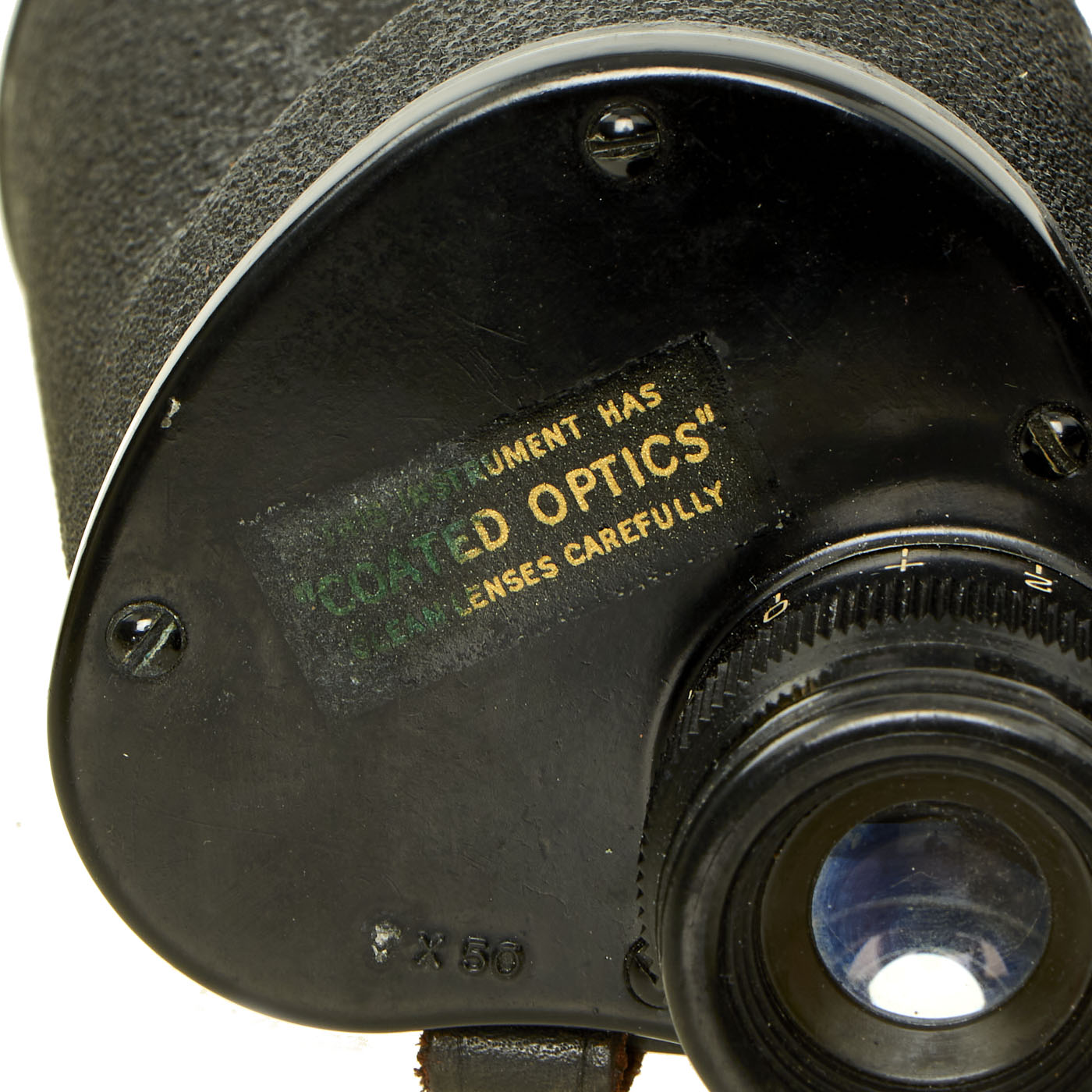 Overall a fantastic Bureau of Ships wide angle 7x50 binocular set from WWII. Ready to display or use!