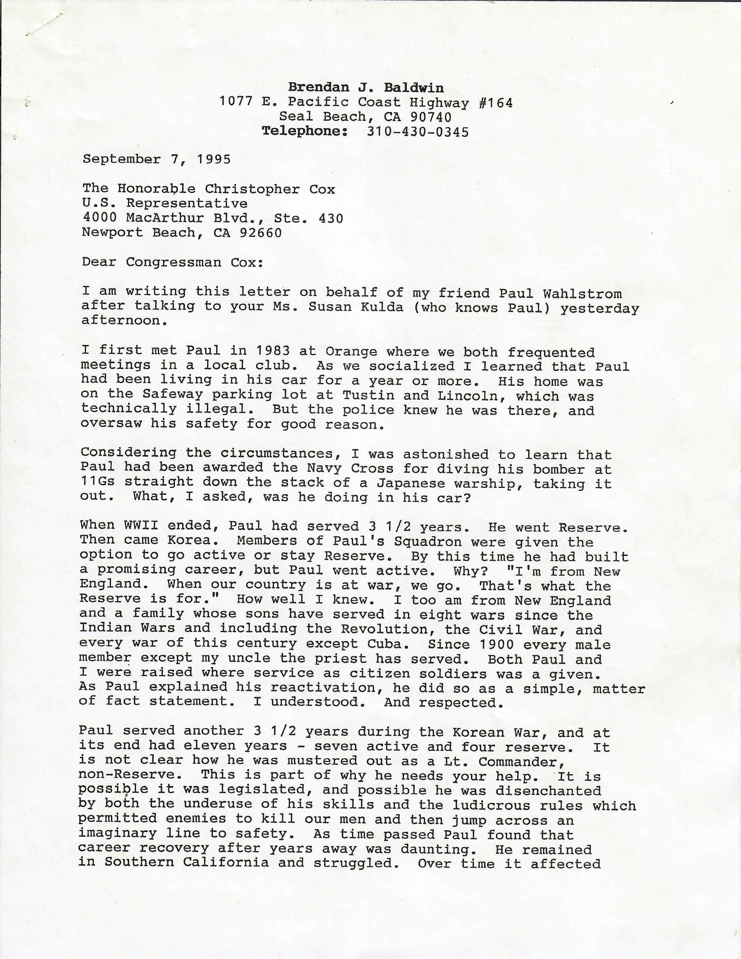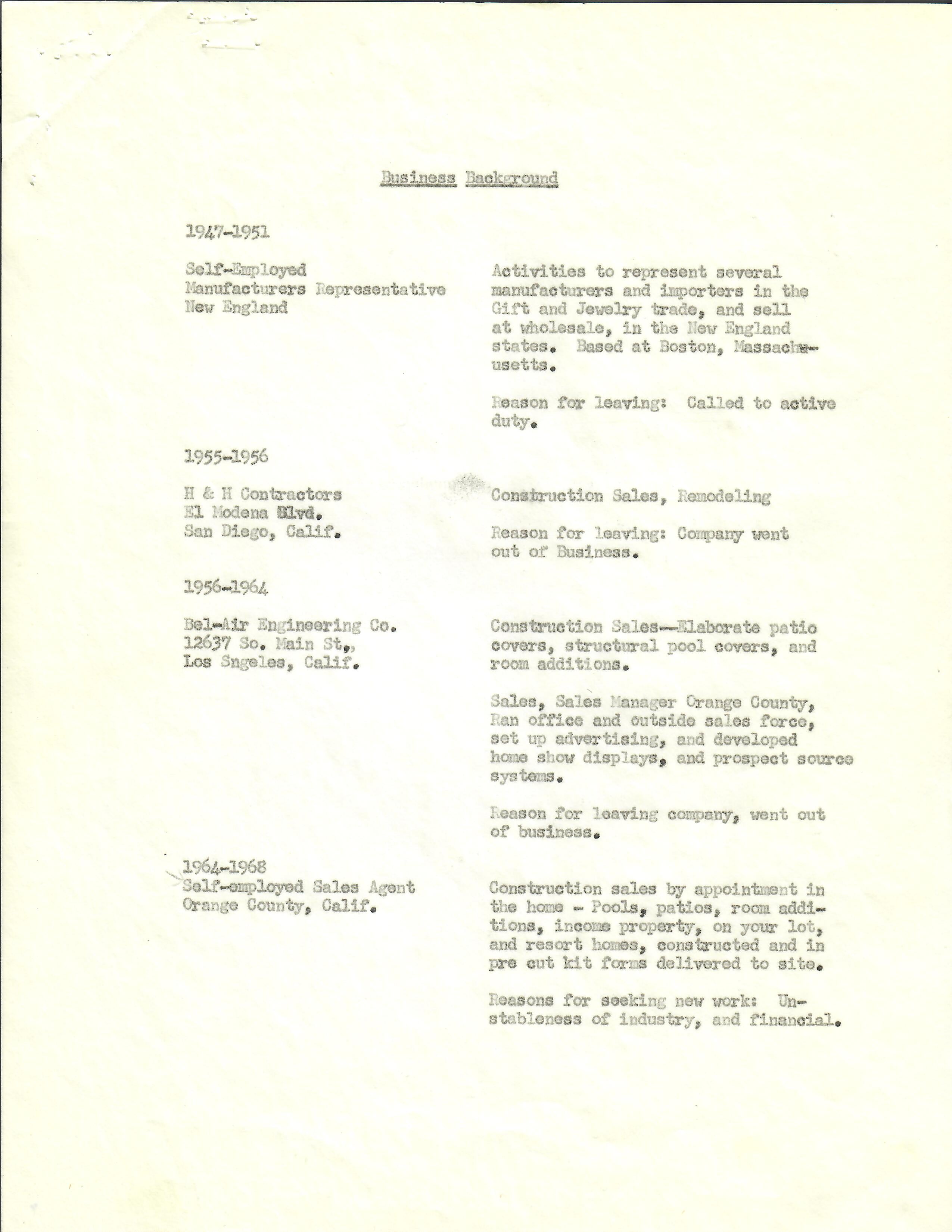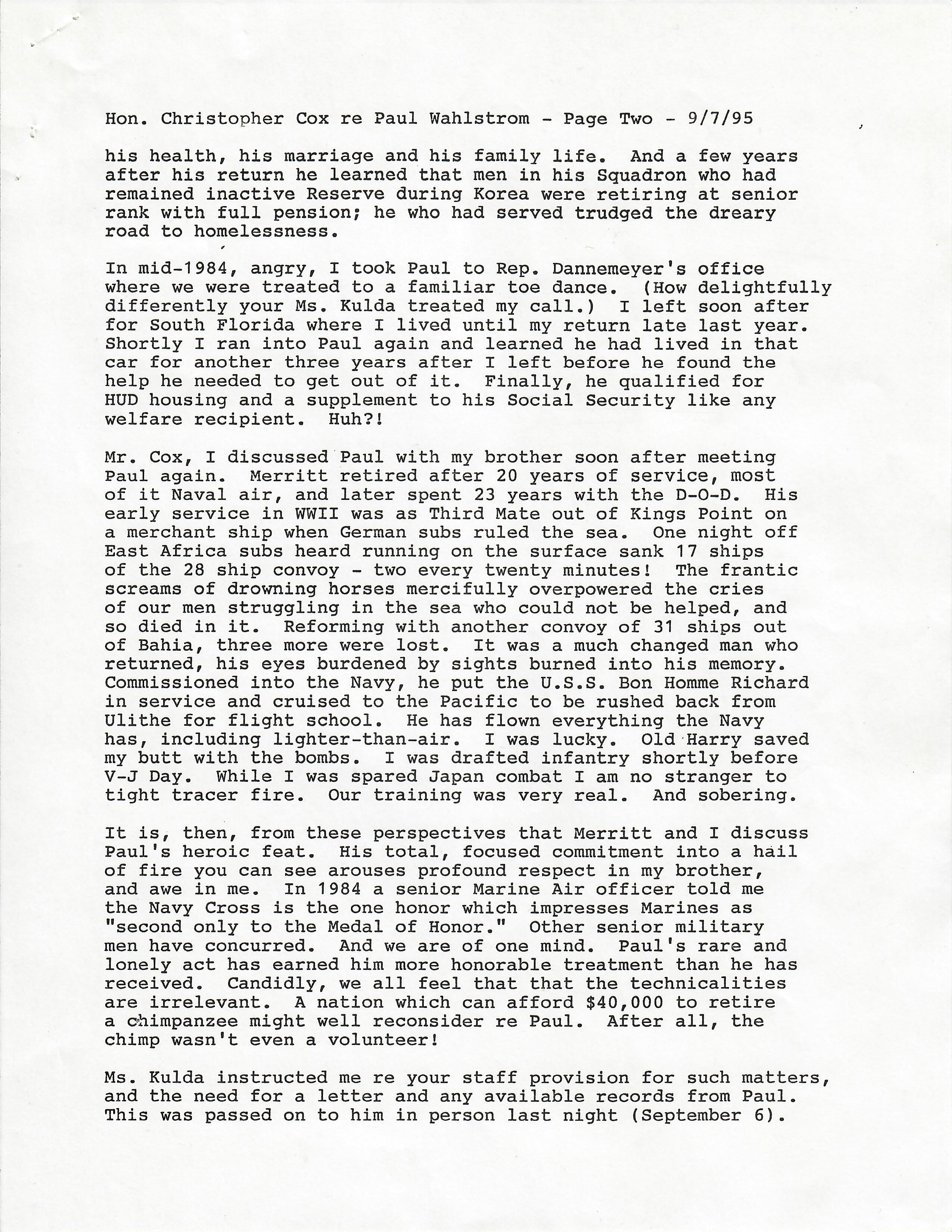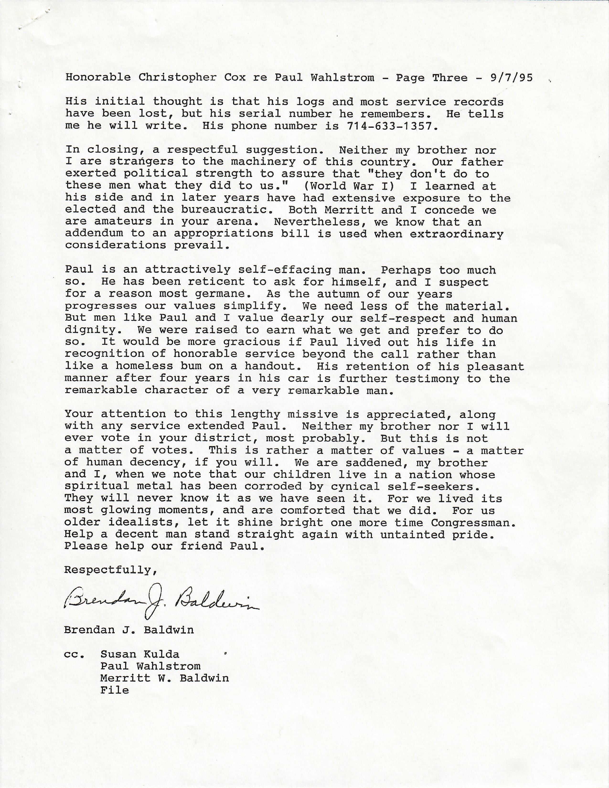 Other items are his personal resumes from the late 40s up into the 70s and letters from a friend to a Congressman concerned about Wahlstrom’s homelessness and living out of his car.
