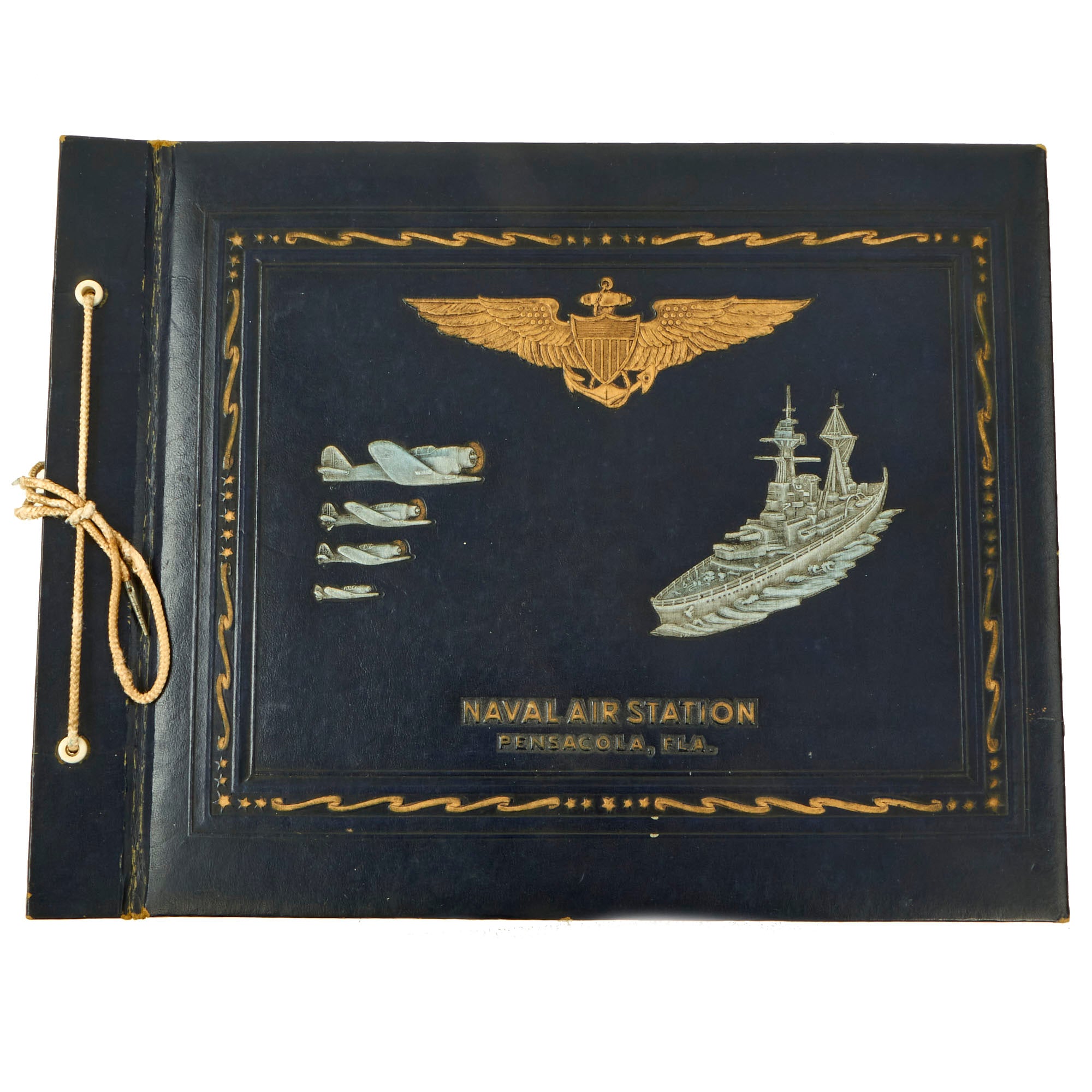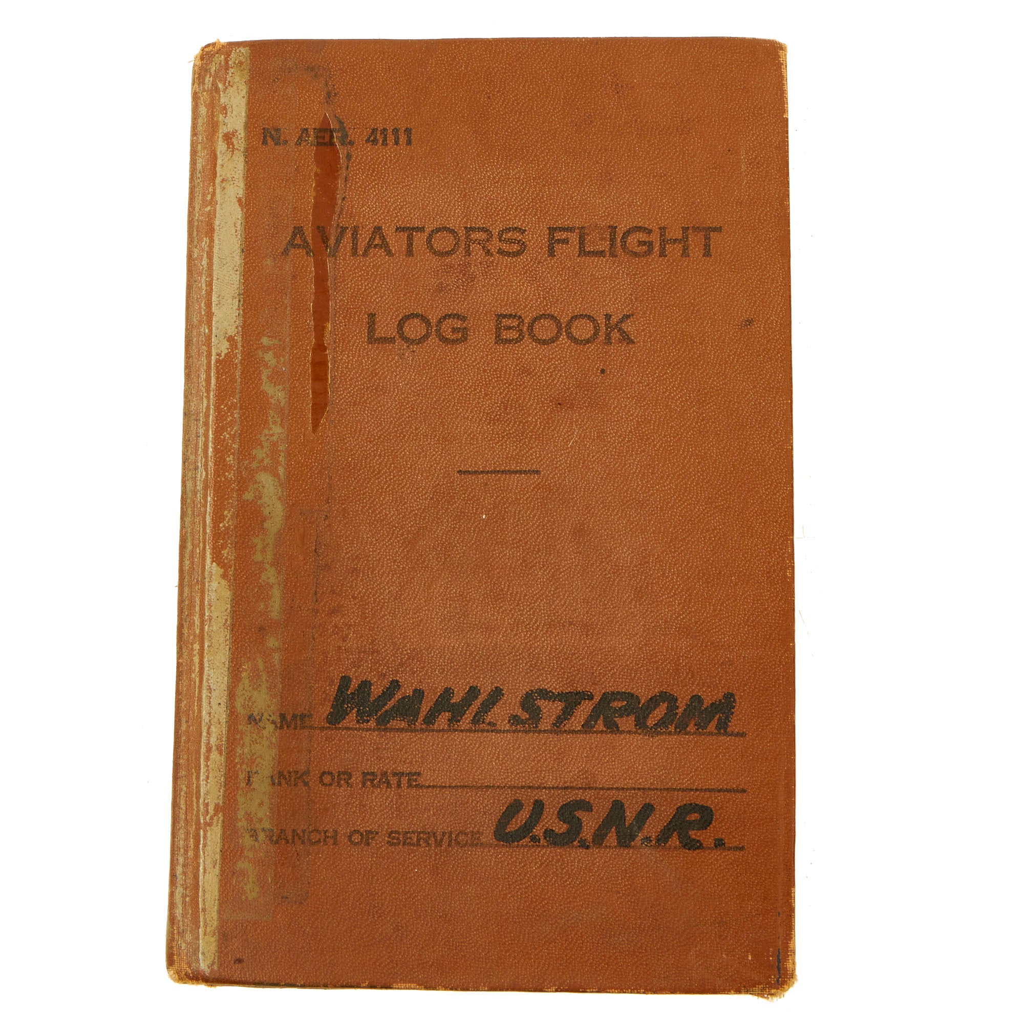 - Aviators Flight Log Book: Now this is an incredible asset to the grouping, the “meat and potatoes” if you will. The log book is completely filled out and even has his gear list on the first few pages and when they were issued, mostly 1943. There are a few marked pages that show when he conducted notable patrols as well as strikes on targets in Formosa and Okinawa. The most significant entry to the book is the day he struck the Japanese aircraft carrier. The entry states: 500 LB BOMB HIT ON JAP CARRIER AT YOKAHAMA - NAVY CROSS. This log book most likely helped to aid in evidence needed for these higher valor awards and to see one of his actions written down in ink in his flight log is incredible.