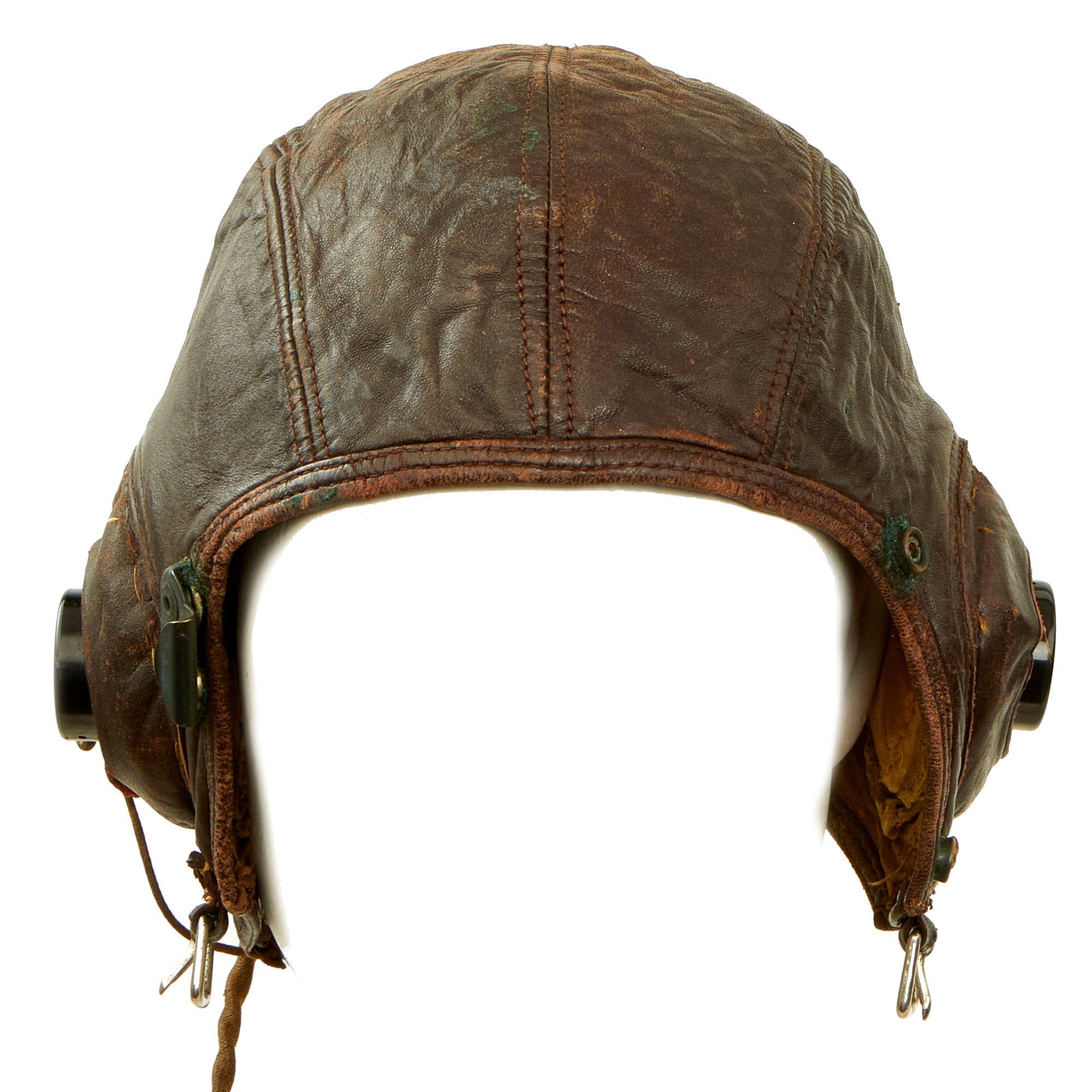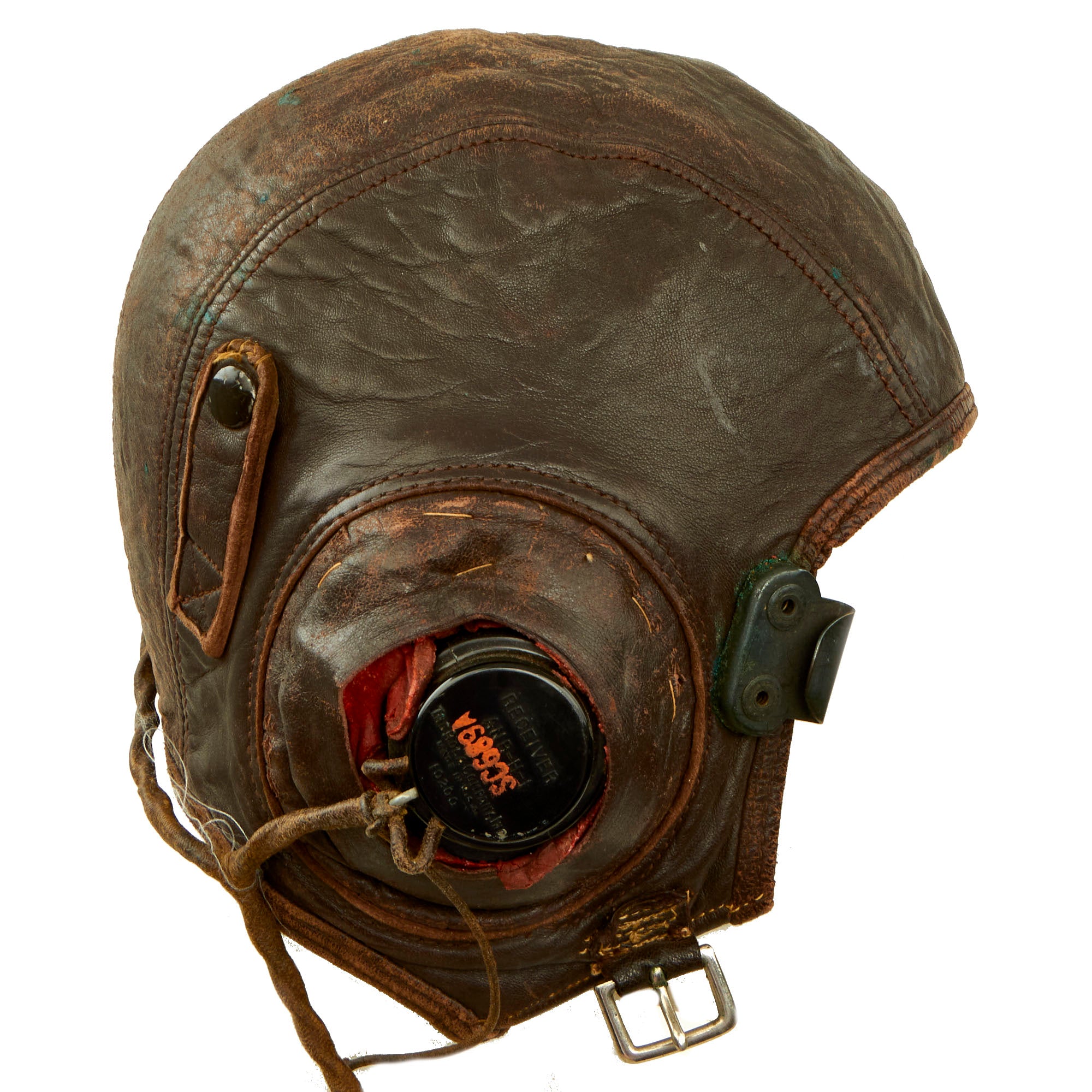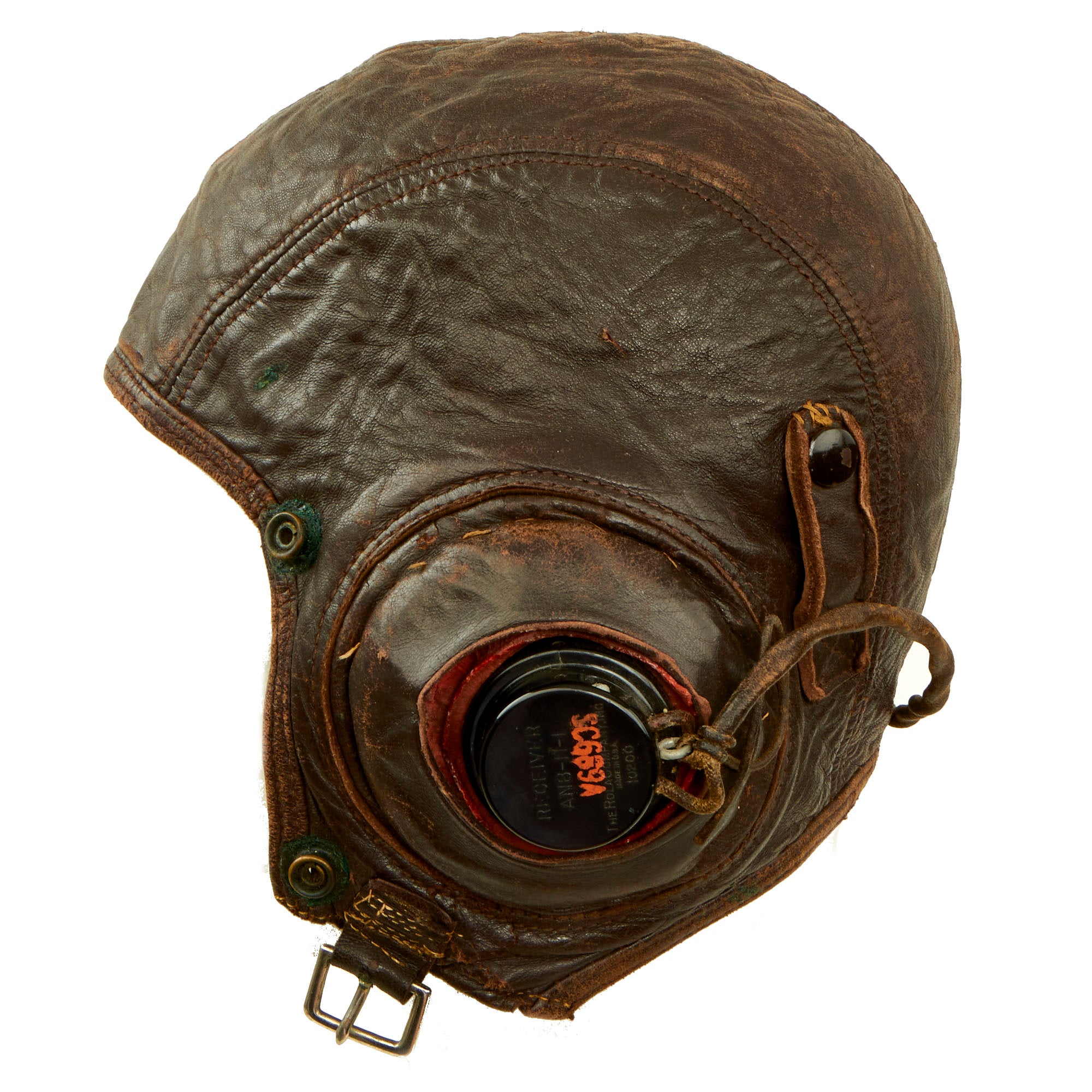 - B-6 Type Leather Flight Helmet With ANB-H-I Avionics: This is an interesting helmet which is named on the inside to Wahlstrom. The helmet itself appears to have been modified for a more comfortable and personalized fit.
