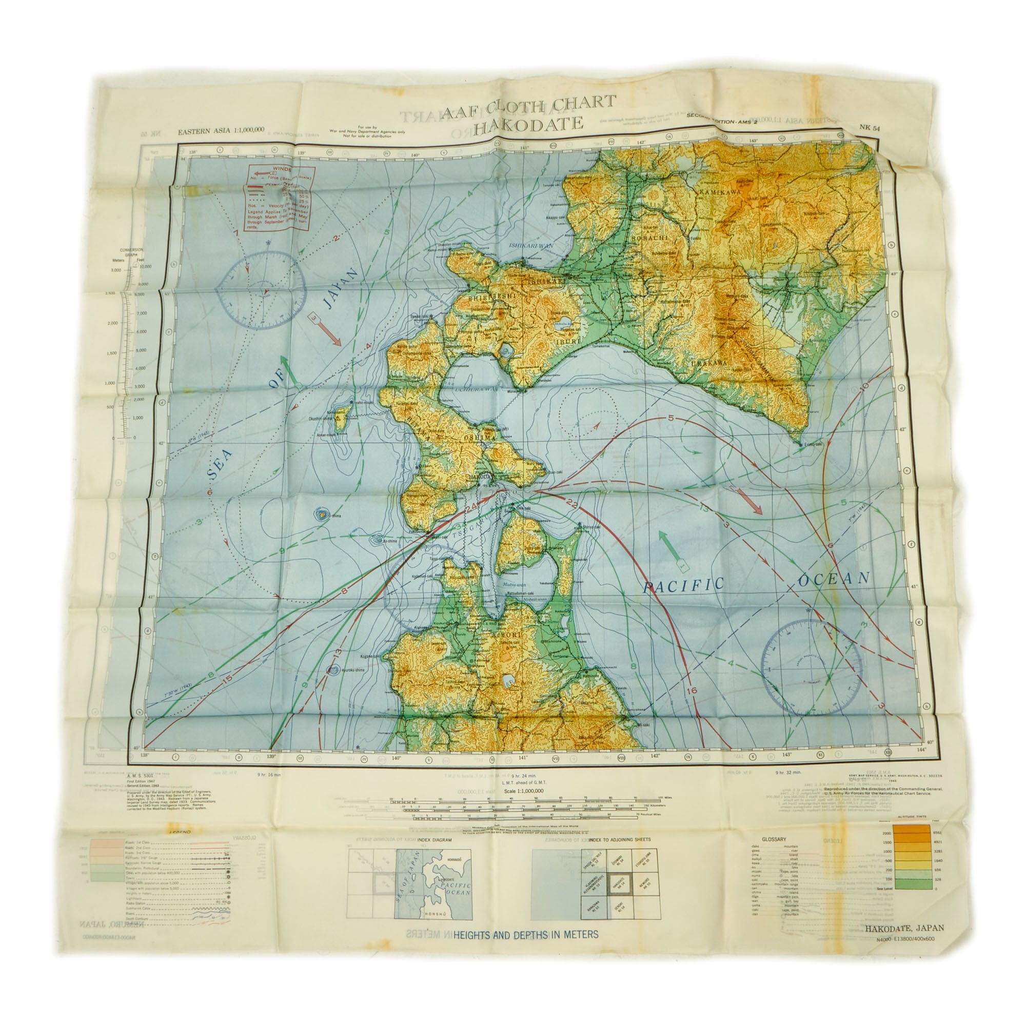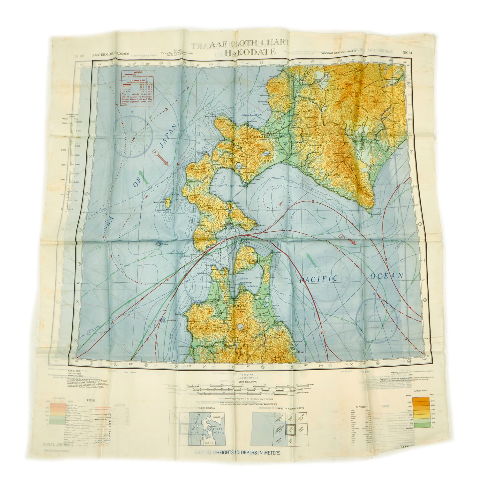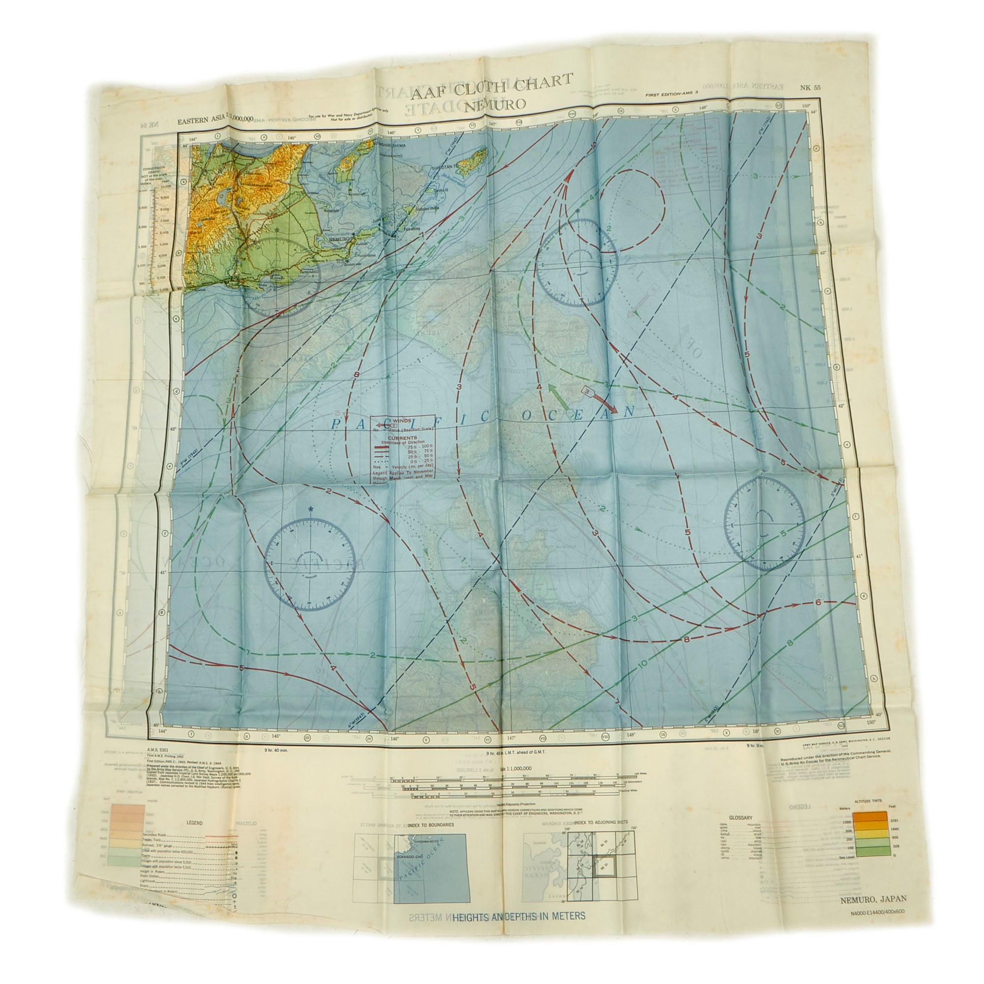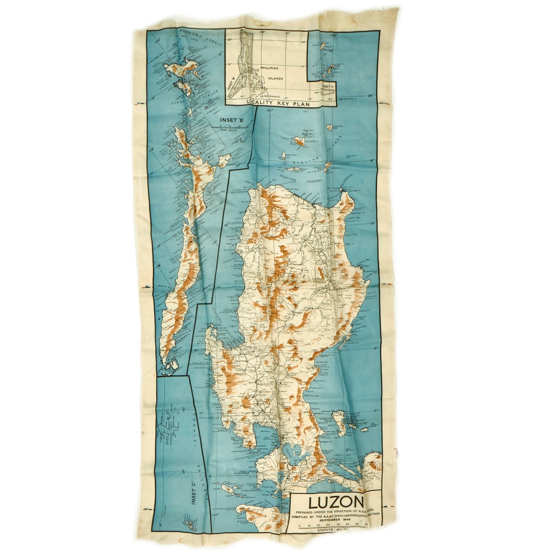 - (7) “Silk” Escape and Evade Maps: The maps are in wonderful condition and do show signs of use without extensive damage. The maps are of locations in which he physically spent time in the airspace such as Luzon, China and most of the pacific theater.