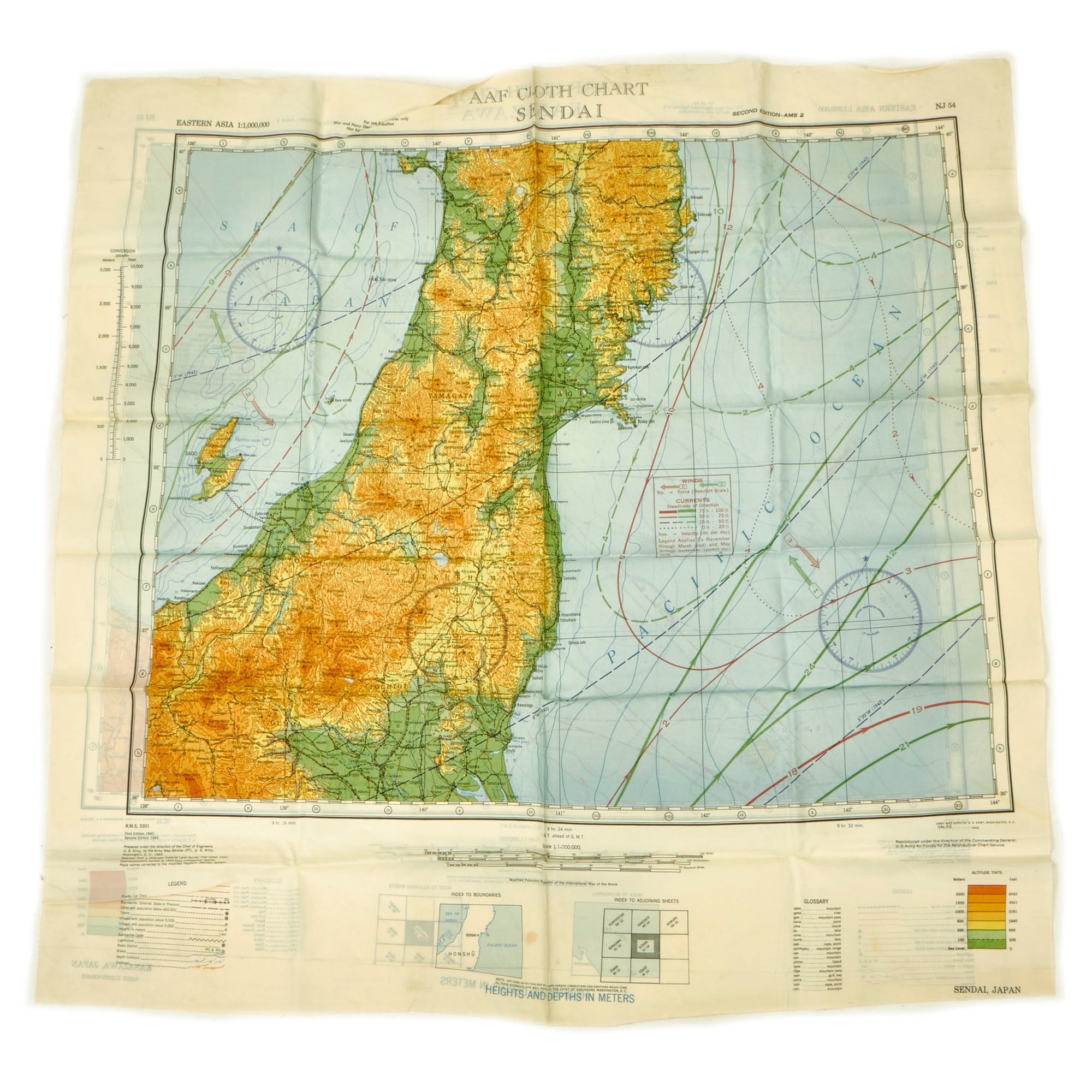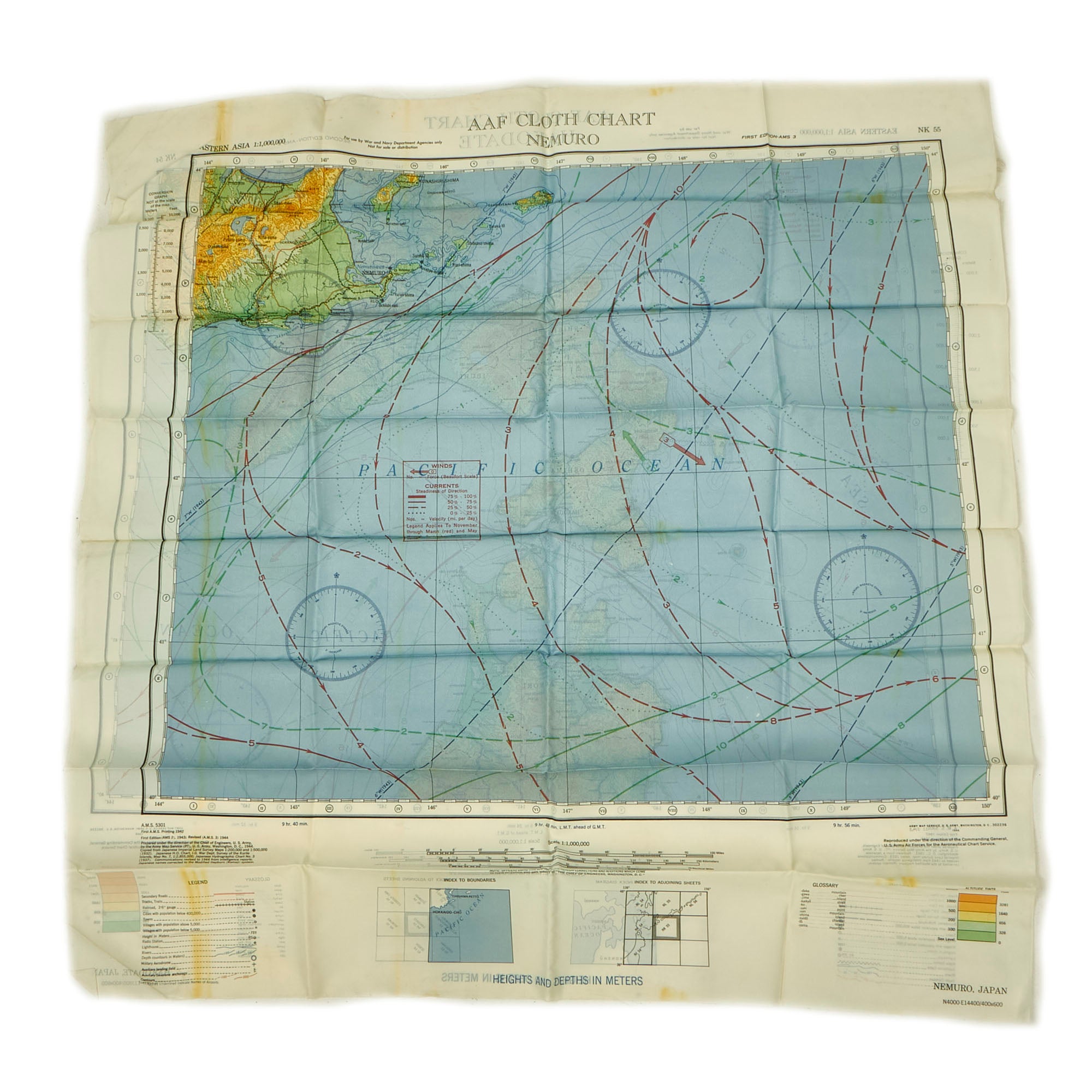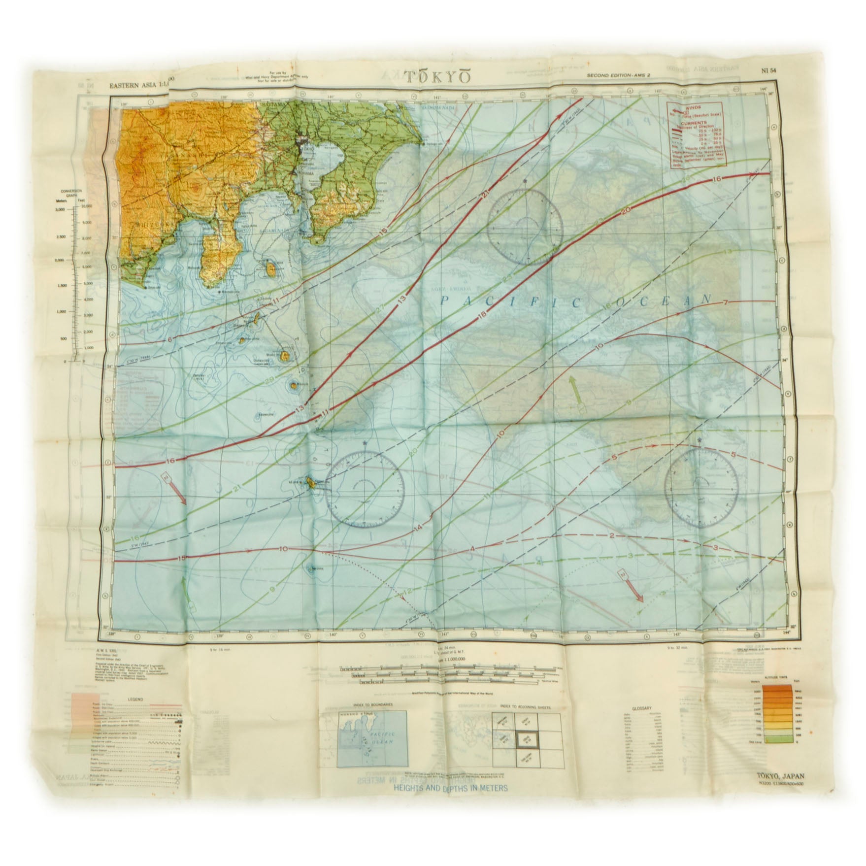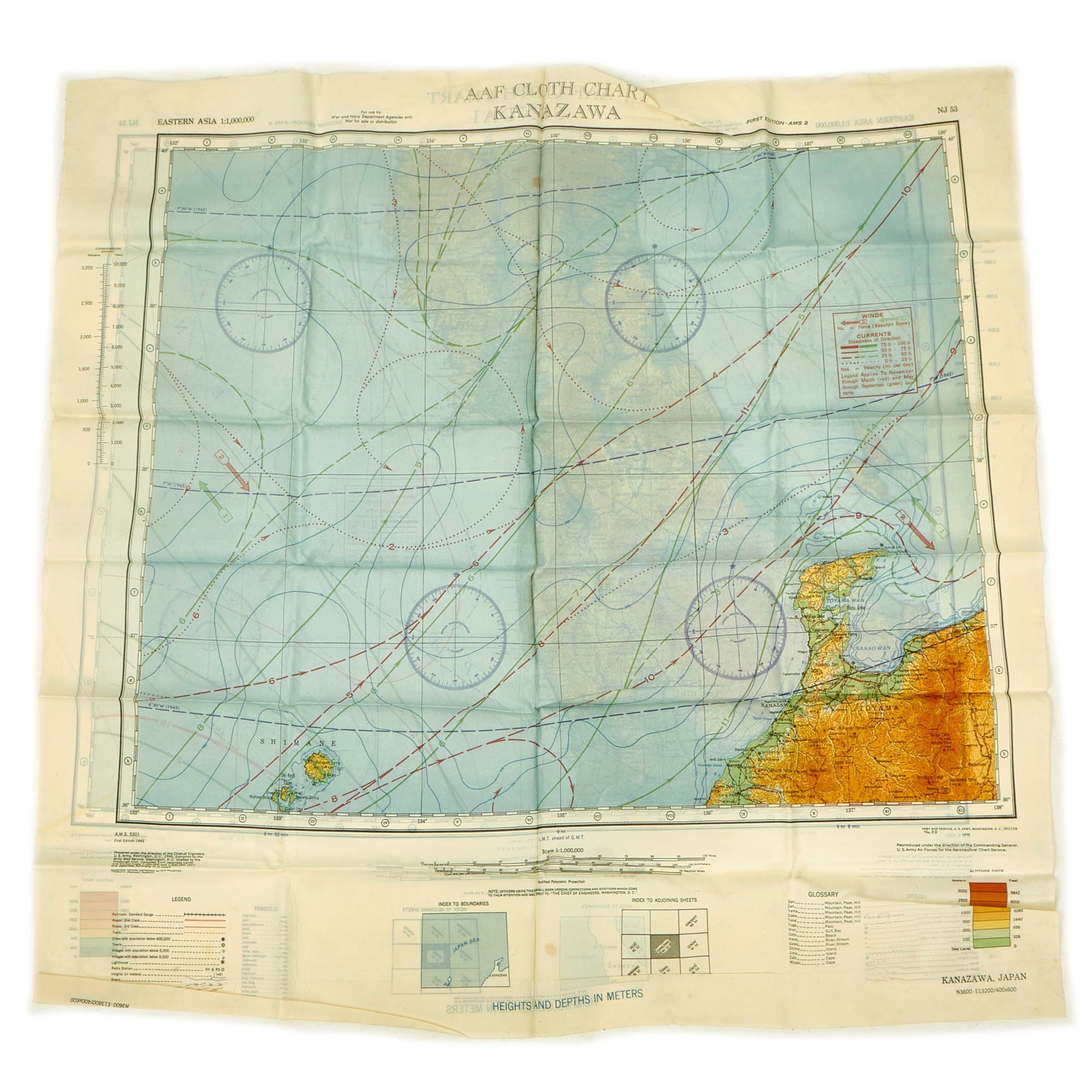 - (7) “Silk” Escape and Evade Maps: The maps are in wonderful condition and do show signs of use without extensive damage. The maps are of locations in which he physically spent time in the airspace such as Luzon, China and most of the pacific theater.