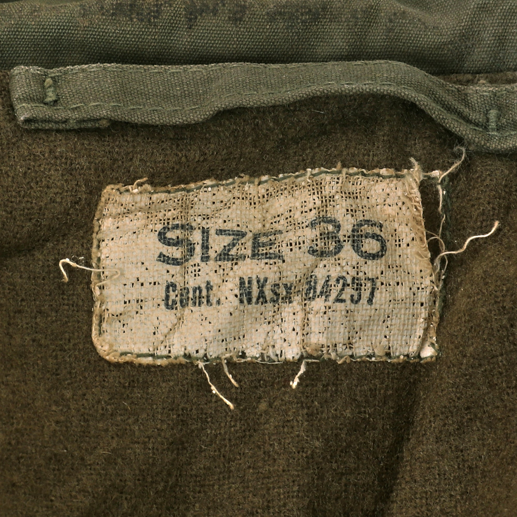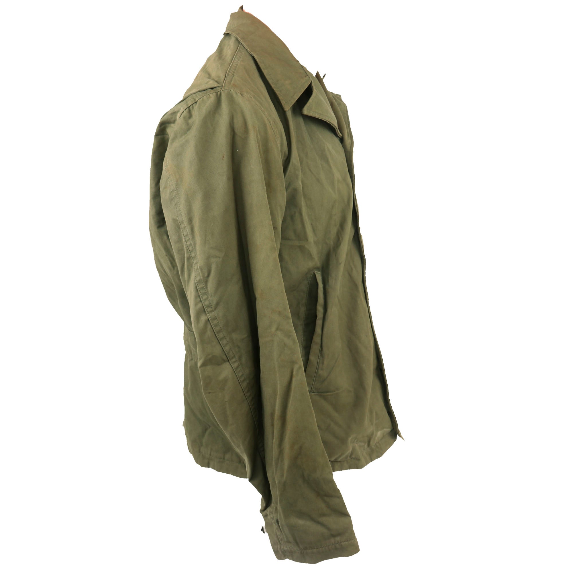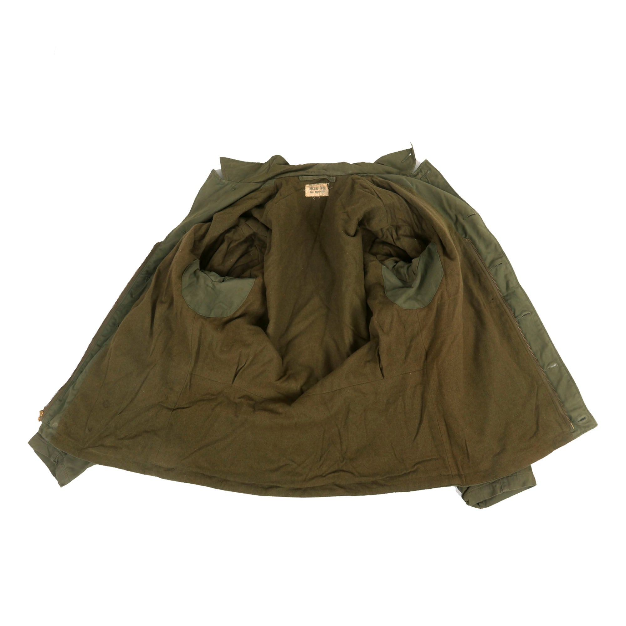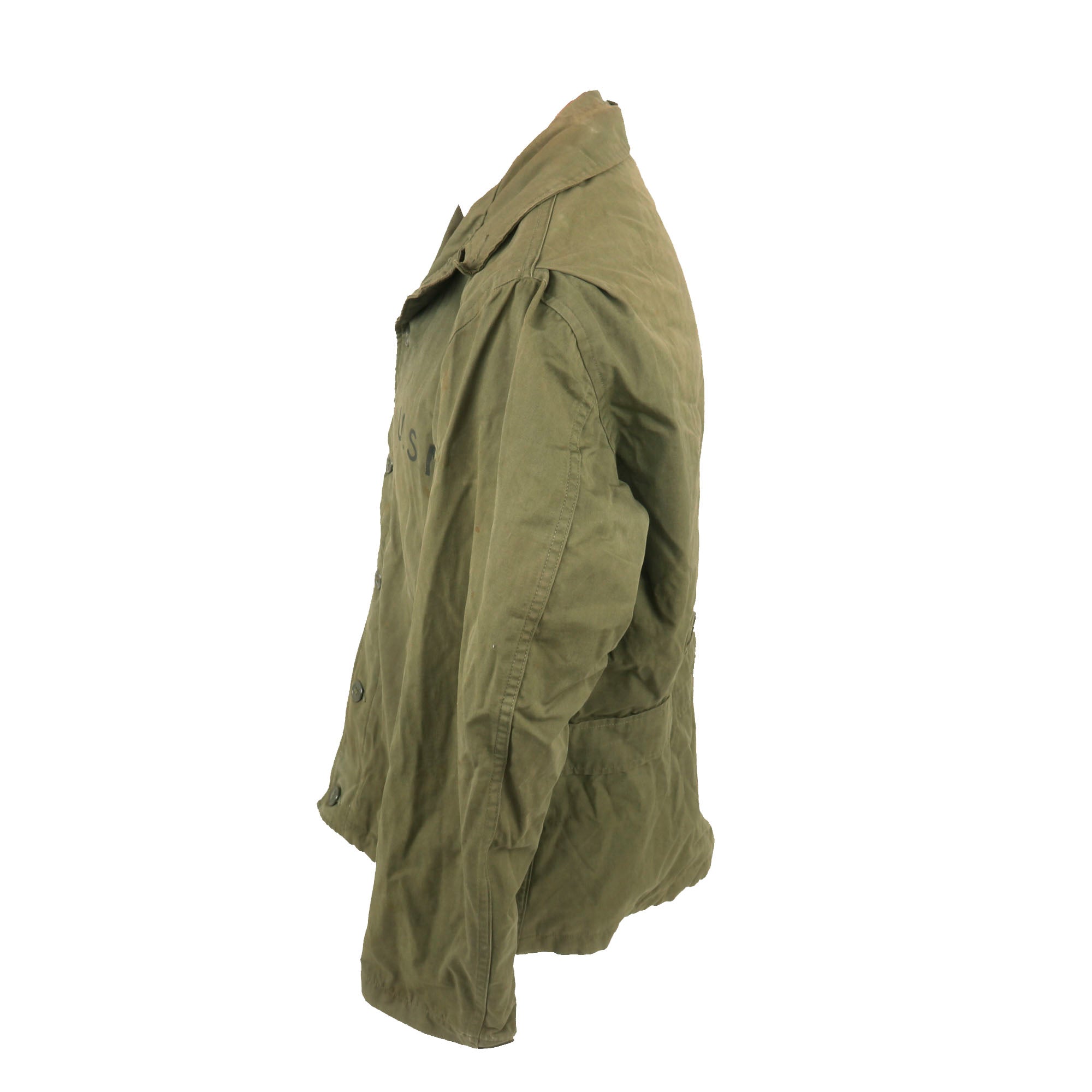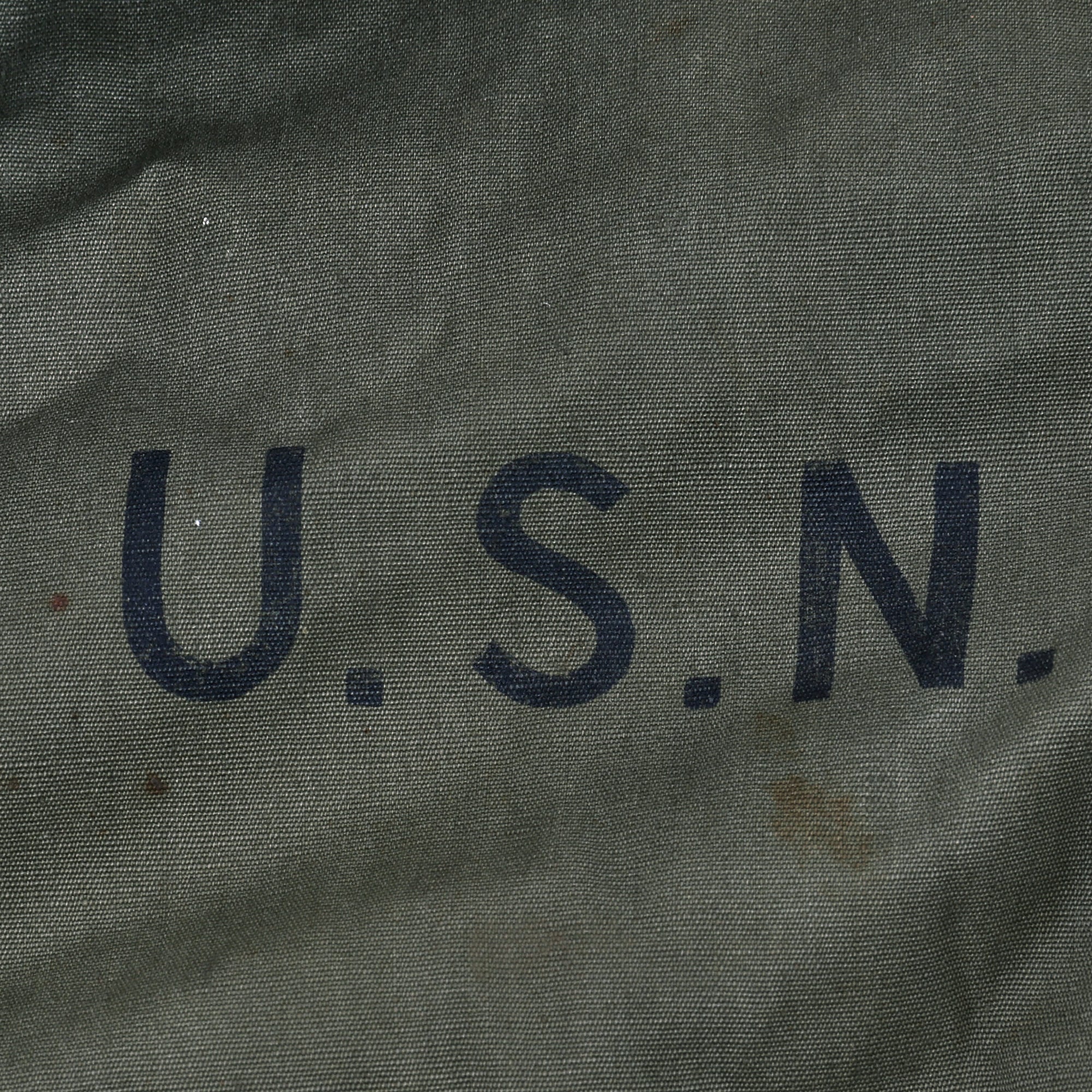 This contract number dates the jacket’s manufacture to November 1944. There are no other tags on the jacket, which itself is in great condition with only service use. The zipper is marked TALON and functions very well. All buttons are retained and this is a fine example of a WWII Navy Deck Jacket reused up into the 1960s and possibly 1970s, ready for further research and display.