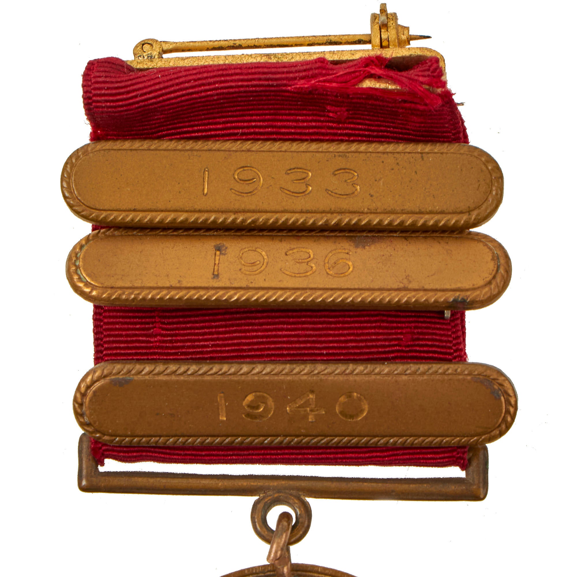 There are three attached subsequent award clasps for 1933, 1936, and 1940, all three clasps being engraved JACOB COOLIKOFF on the reverse.