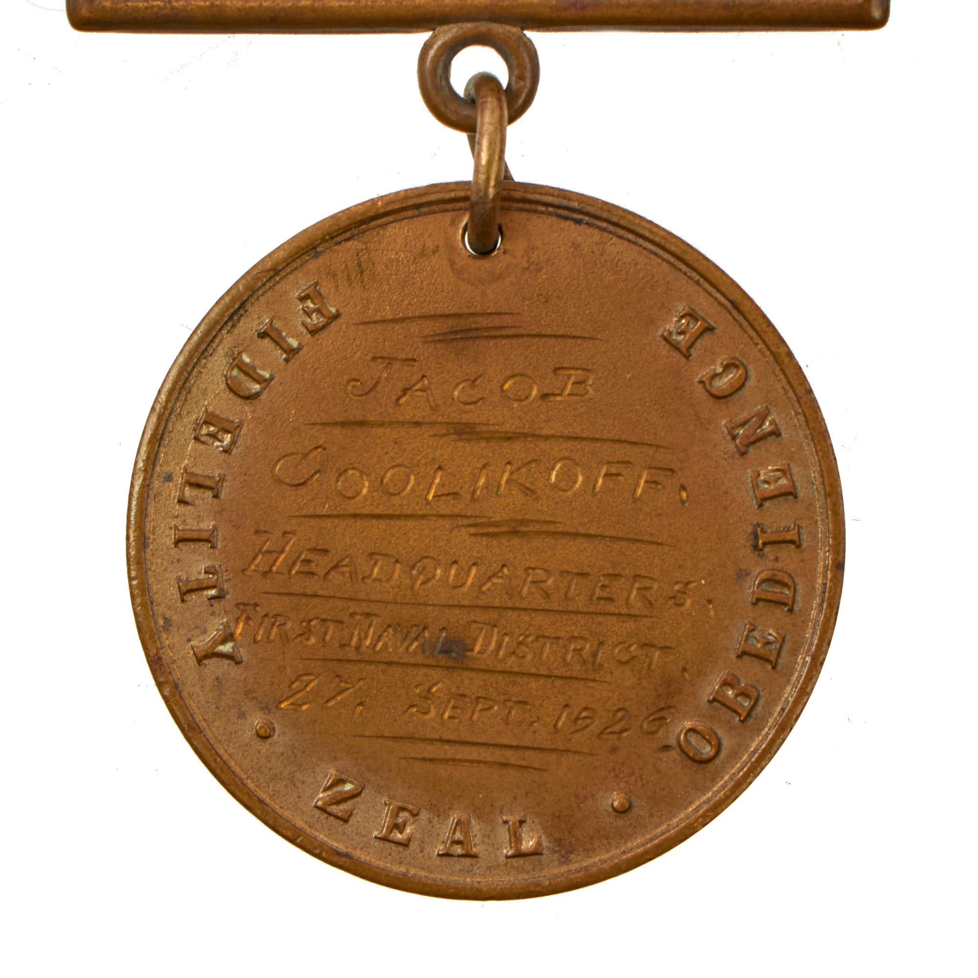 This is an outstanding example of the Navy Good Conduct Medal with a very interesting story. The medal is engraved to Jacob Coolikoff, a decades-long Navy veteran who in 1917 was investigated by the FBI, the Federal Bureau of Investigation, on allegations of being a German Sympathizer. We have printed the 2 pages of investigation and have included them with the medal.