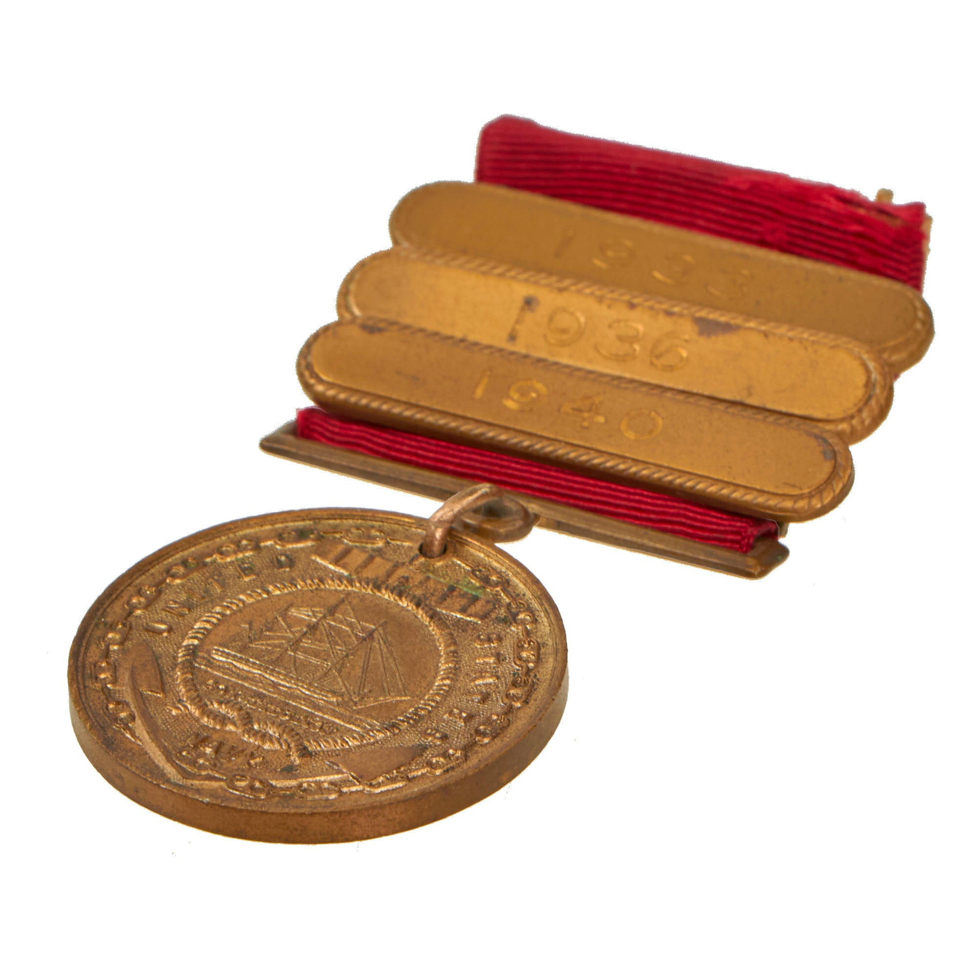In our research we found he was an Electrician 3rd Class when he was investigated as a sympathizer, and by 1941 was a Warrant Radio Electrician, serving aboard several Wickes-class destroyers during the 1940-1941 period including the USS Waters, USS Dent, and USS Rathburne. This medal requires more research.