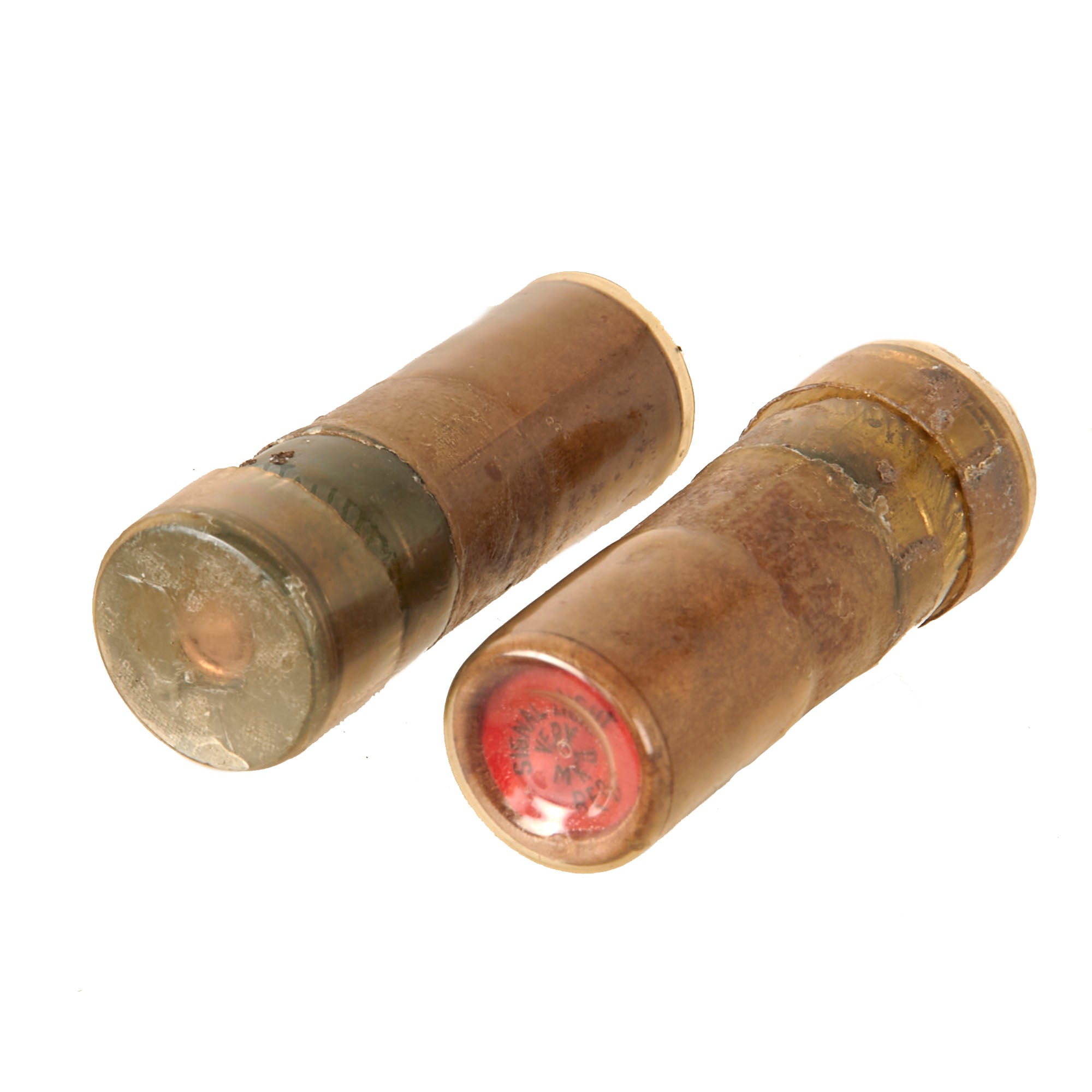 This set is complete with the original Type A-5 flare pouch with two retained flares! The flares are marked SIGNAL LIGHT / VERY / MK II / RED and are covered in plastic to keep them preserved.