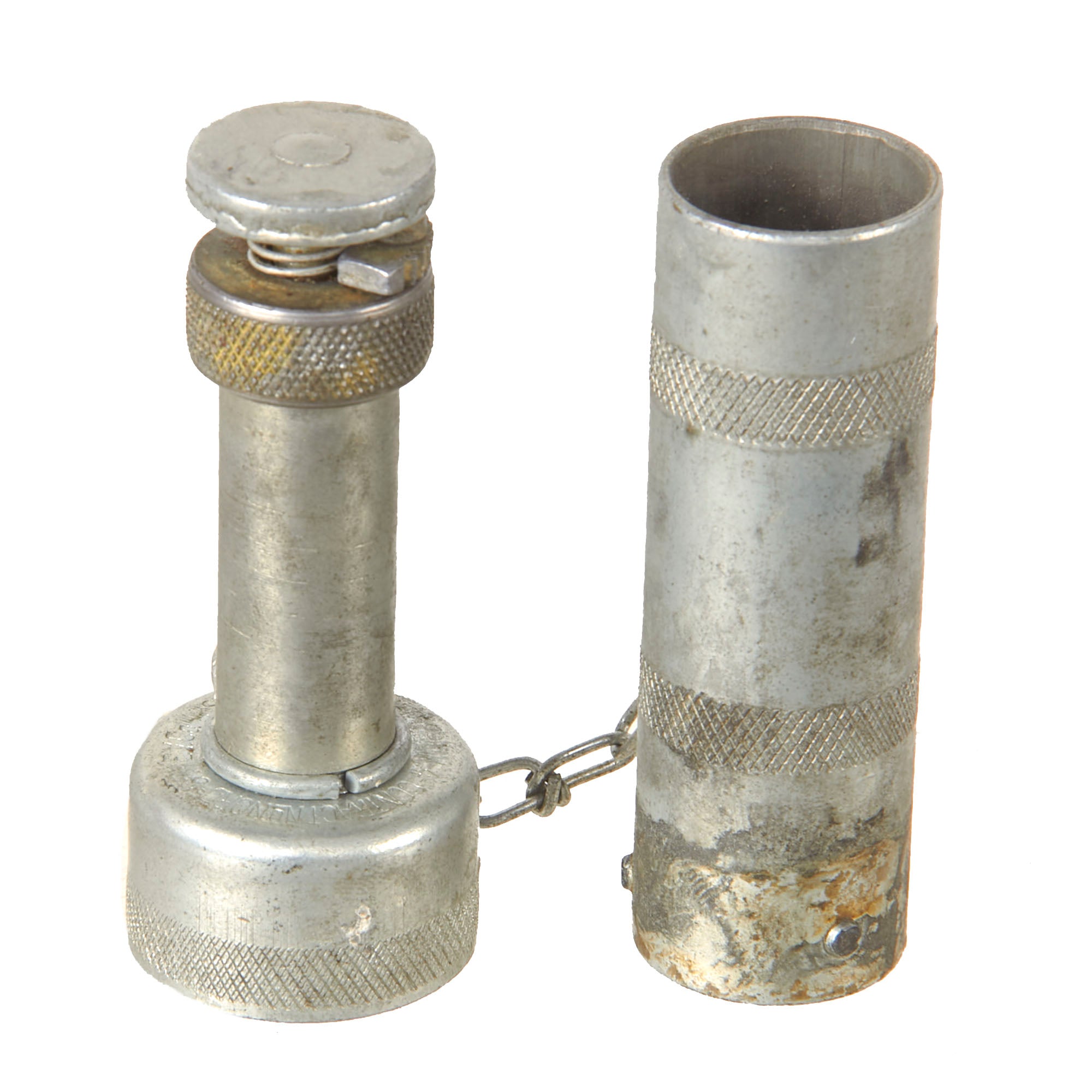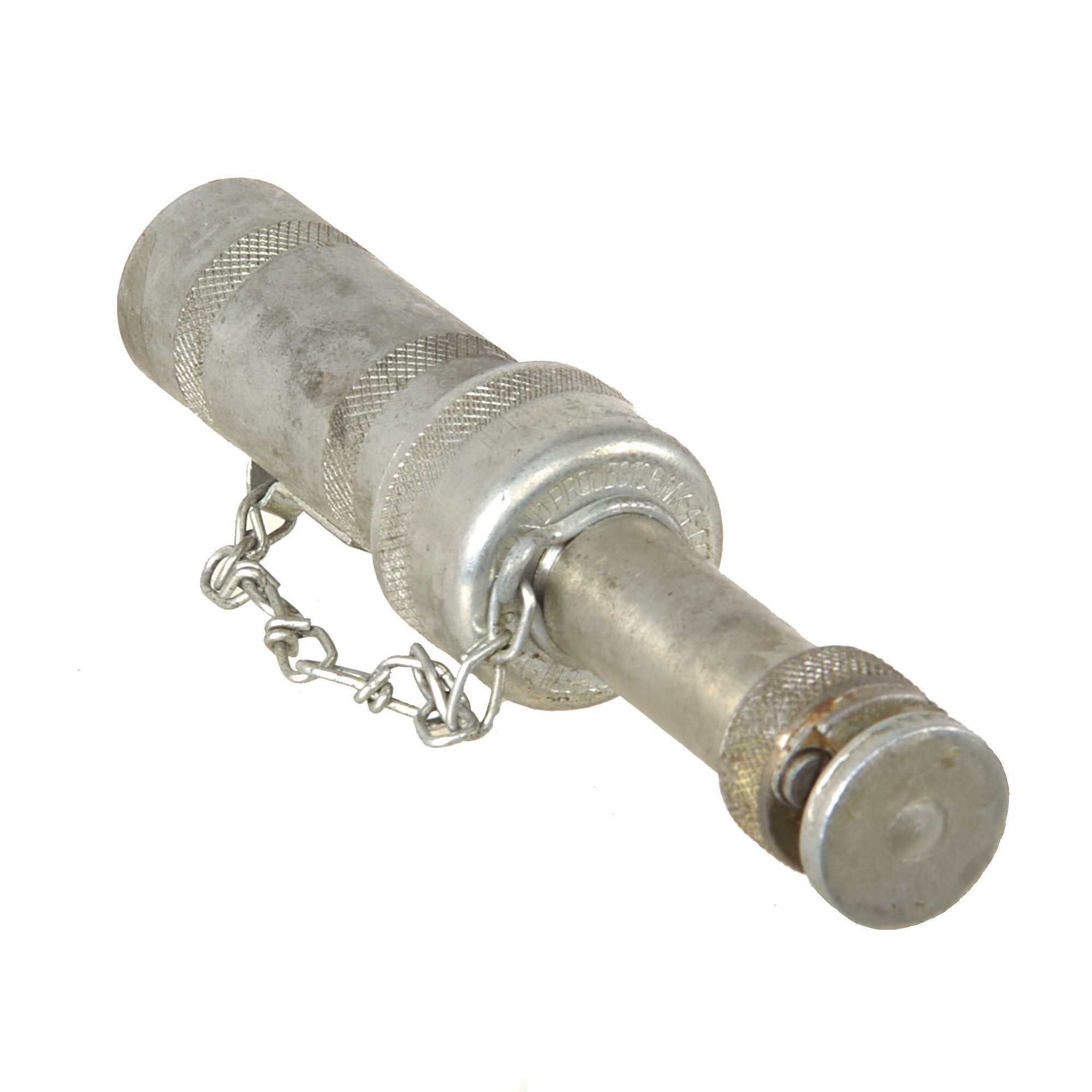 Original Item: Only One Available. The Hand Projector Mk 4 is for use with Signal Light Mk 2 when no Signal Pistol is available, or when the signal lights are used with the "Abandon Ship" signal kit. It is entirely constructed of metal and consists of a 3” barrel, which secures by a twist lock method. Not Available for Export.