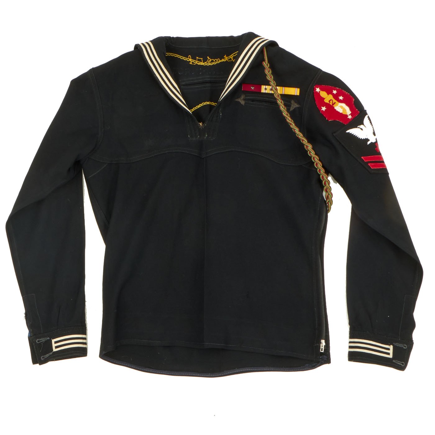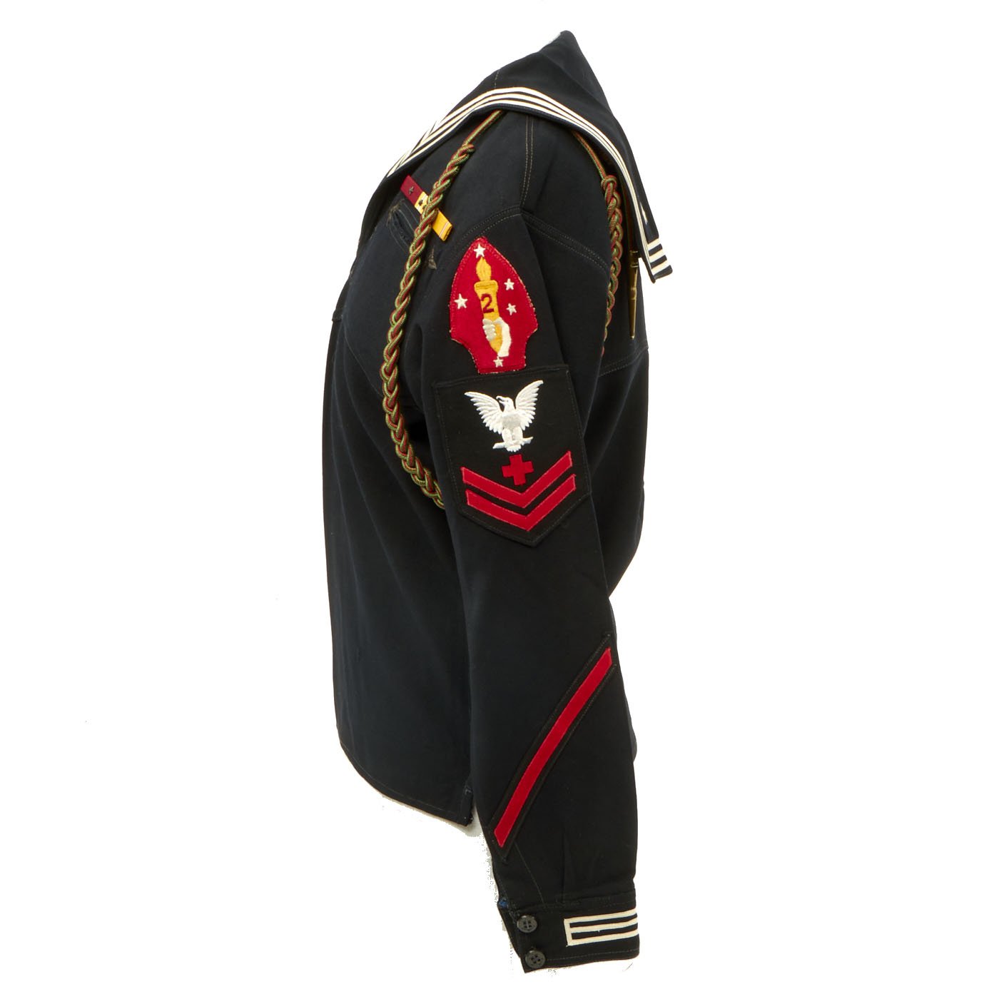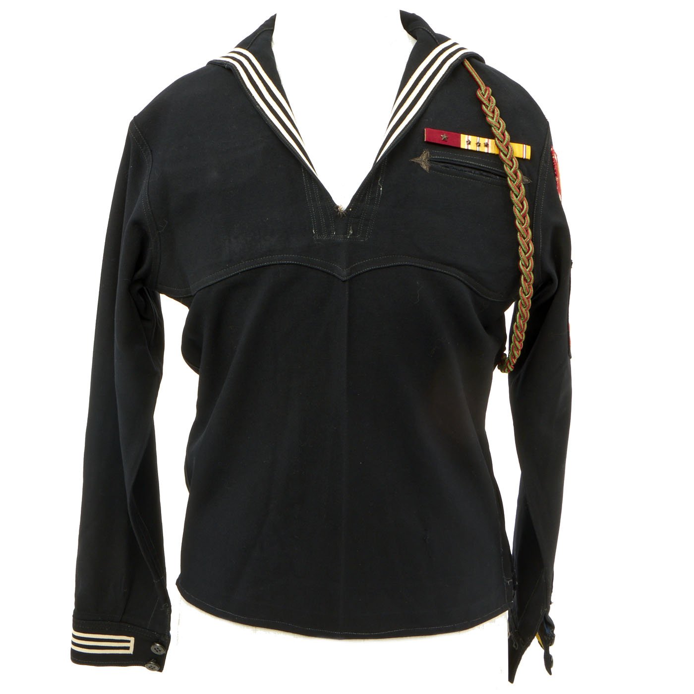 Original Item: Only One Available. This very USN WWII uniform jumper is featured on page 132-133 in the book Sailors in Forest Green; USN Personnel Attached to the USMC, Volume 1 by Jeff Warner.